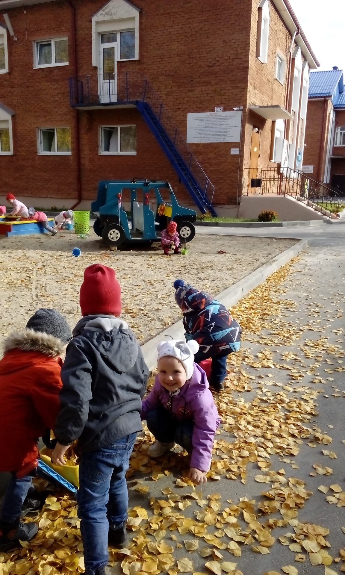 Вот и наступила золотая пора, когда шуршит под ногами осенний ковёр. Время осеннего листопада и дождей. Но нас с ребятами, осень не пугает, а только радует. Мы очень любим прогулки. Мы наблюдаем за сезонными изменениями в природе: листья желтеют, краснеют и падают на землю, серые тучки на небе, дождик чаще льётся, ветер дует холодный.
