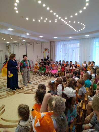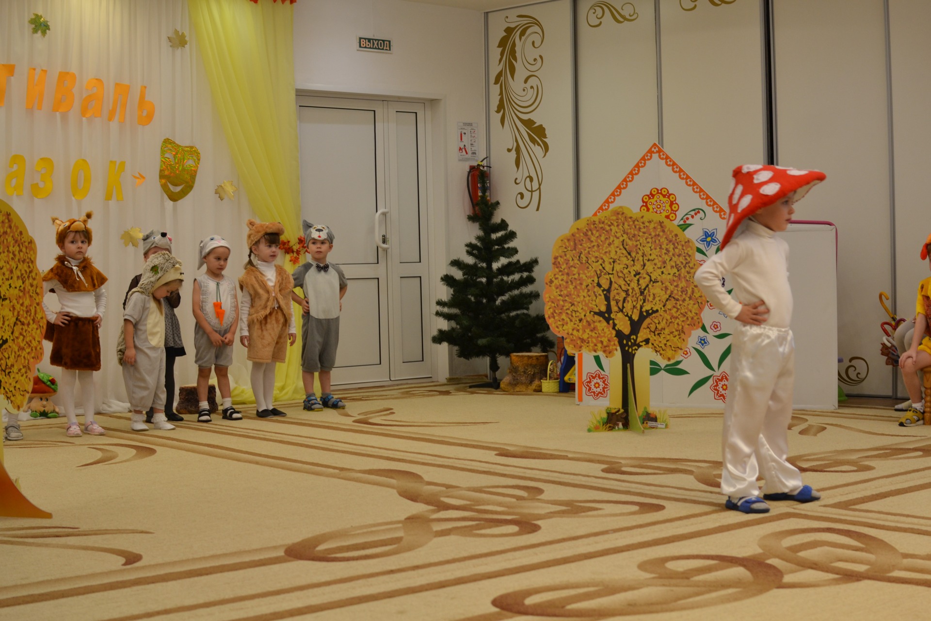 После английской сказки все зрители перенеслись в осенний лес, там они смогли найти ответ на вопросы: где зимует лето и кто в лесу самая красивая? В этом им помогли артисты из подготовительных групп «Крепыши» и «Теремок»