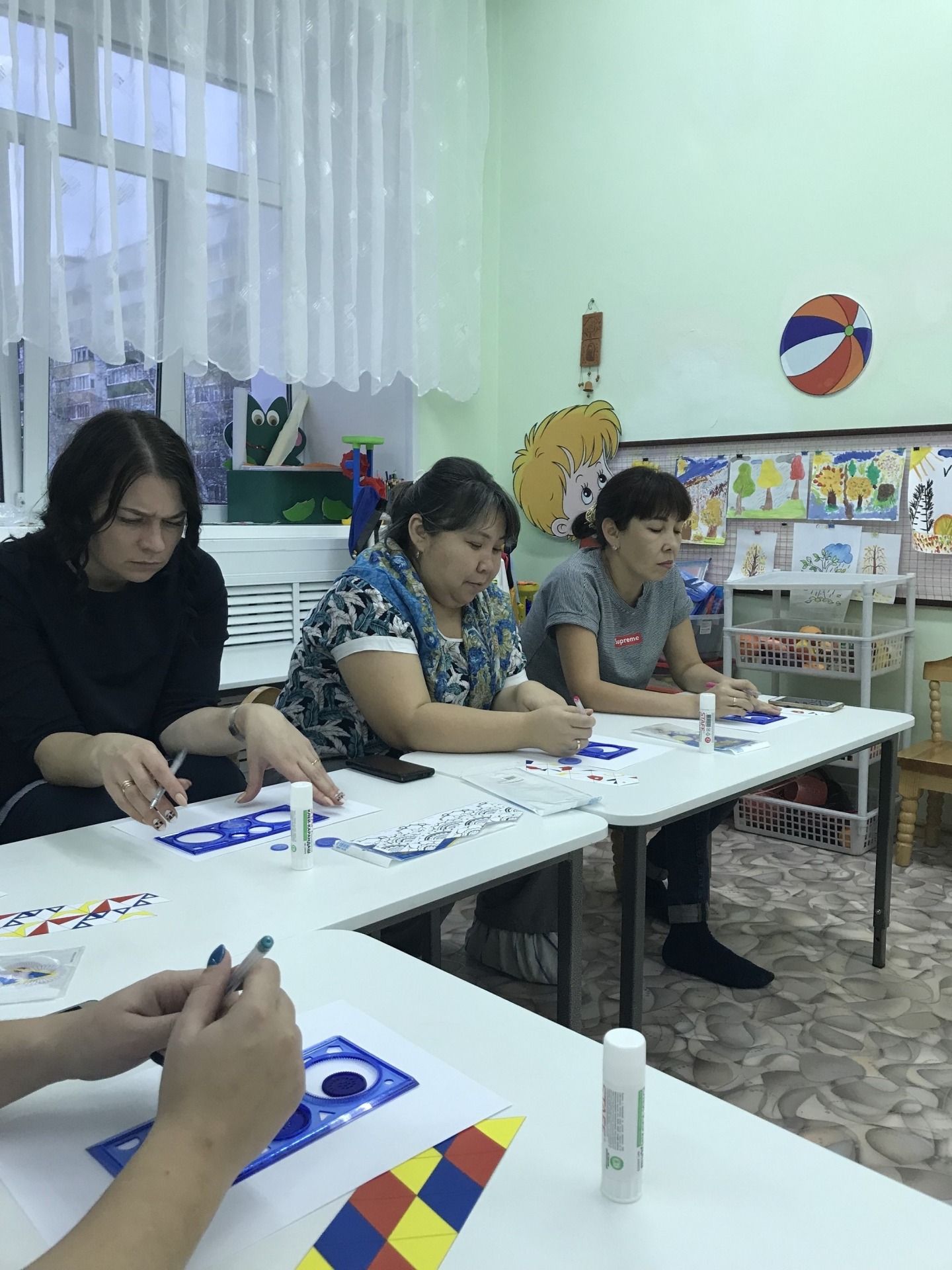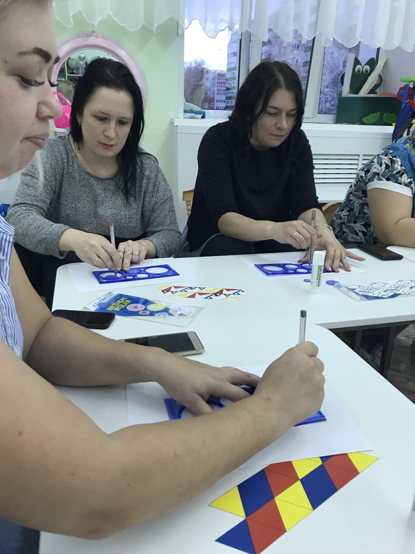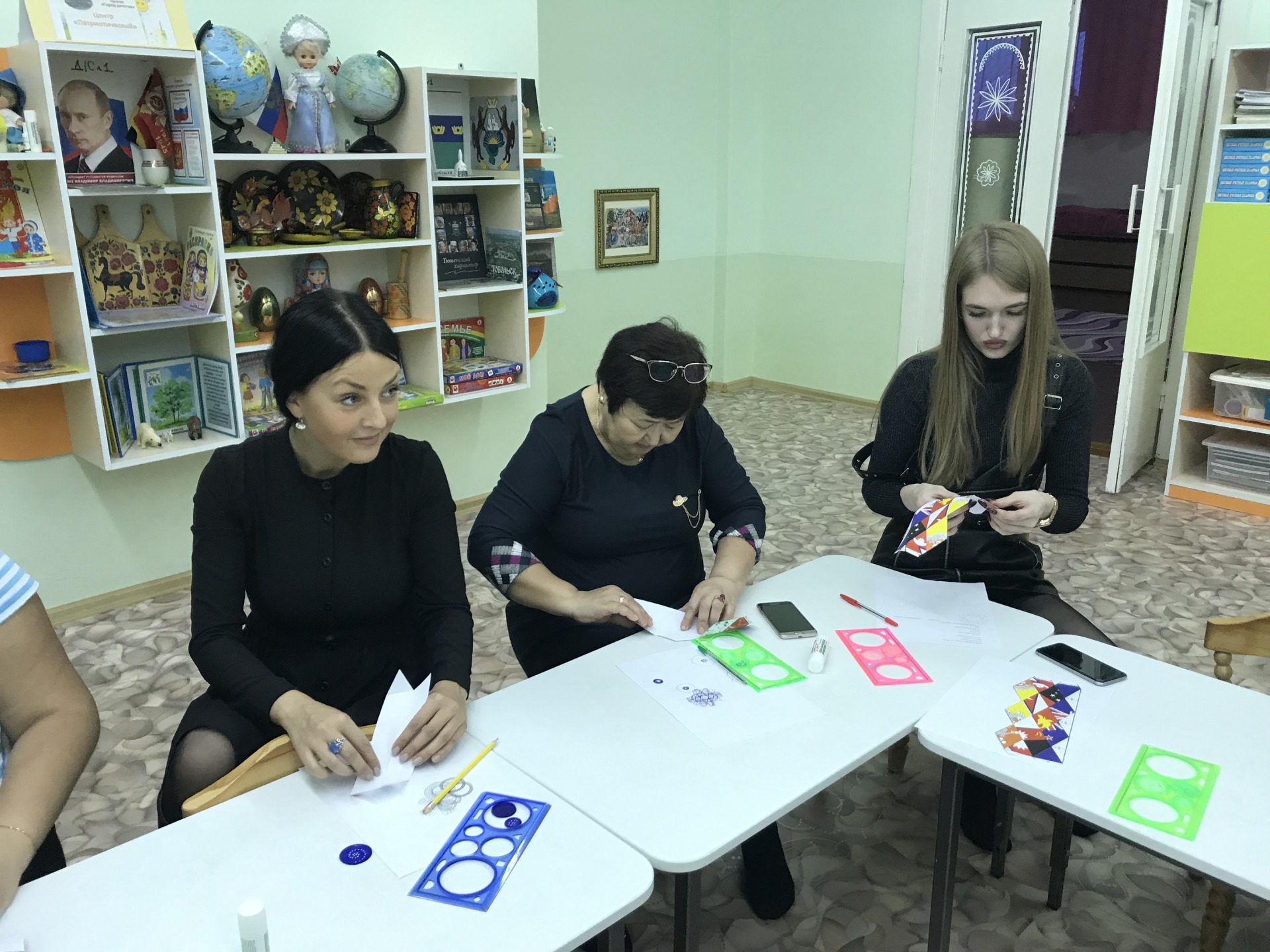Далее в тесном творческом кругу погрузились в STEAM – среду, организовав увлекательный мастер – класс по изготовлению необычных флексагонов из цветной бумаги и рисования красивых цветов с помощью спирографов.