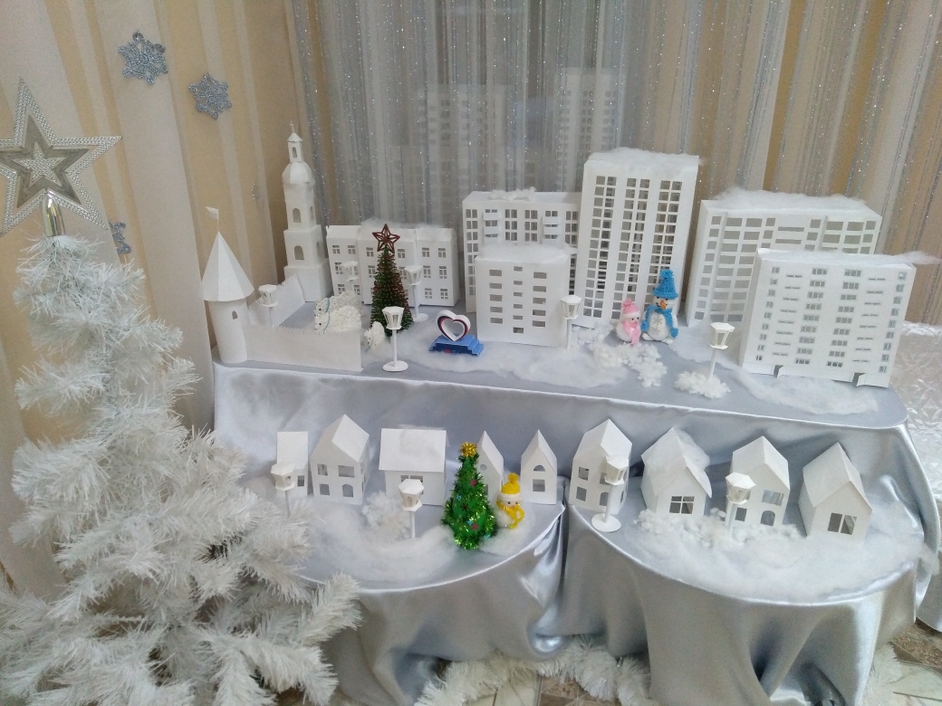 На этом наши творческие идеи не закончились, и вскоре в холле детского сада был построен зимний город, наш любимый город глазами юных архитекторов и строителей. На этой строительной площадке главными кураторами стали родители и педагоги. Город получился необыкновенным и по-настоящему зимним...