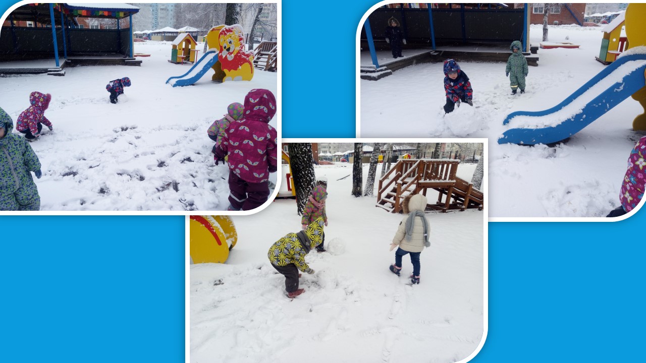 И вот они уже на прогулке! Радости не было предела, дети сразу бросились играть в снежки, ловили снежинки, катали маленькие комочки снега и пытались слепить снеговика.
