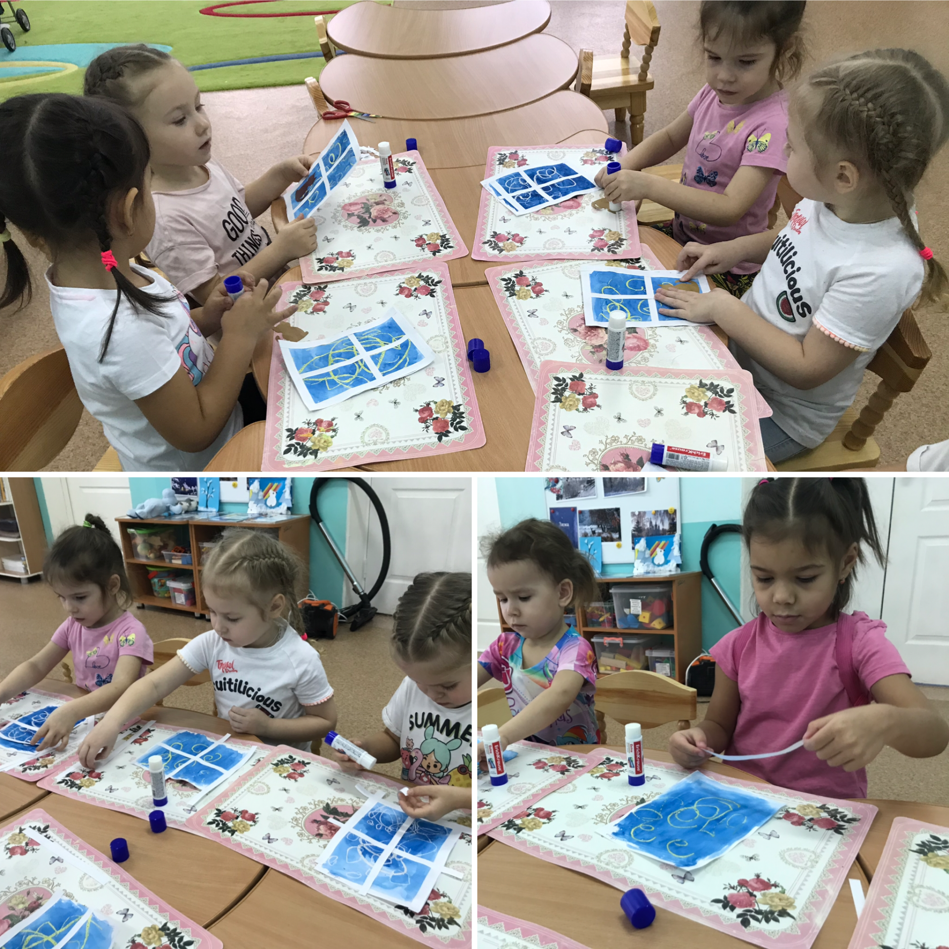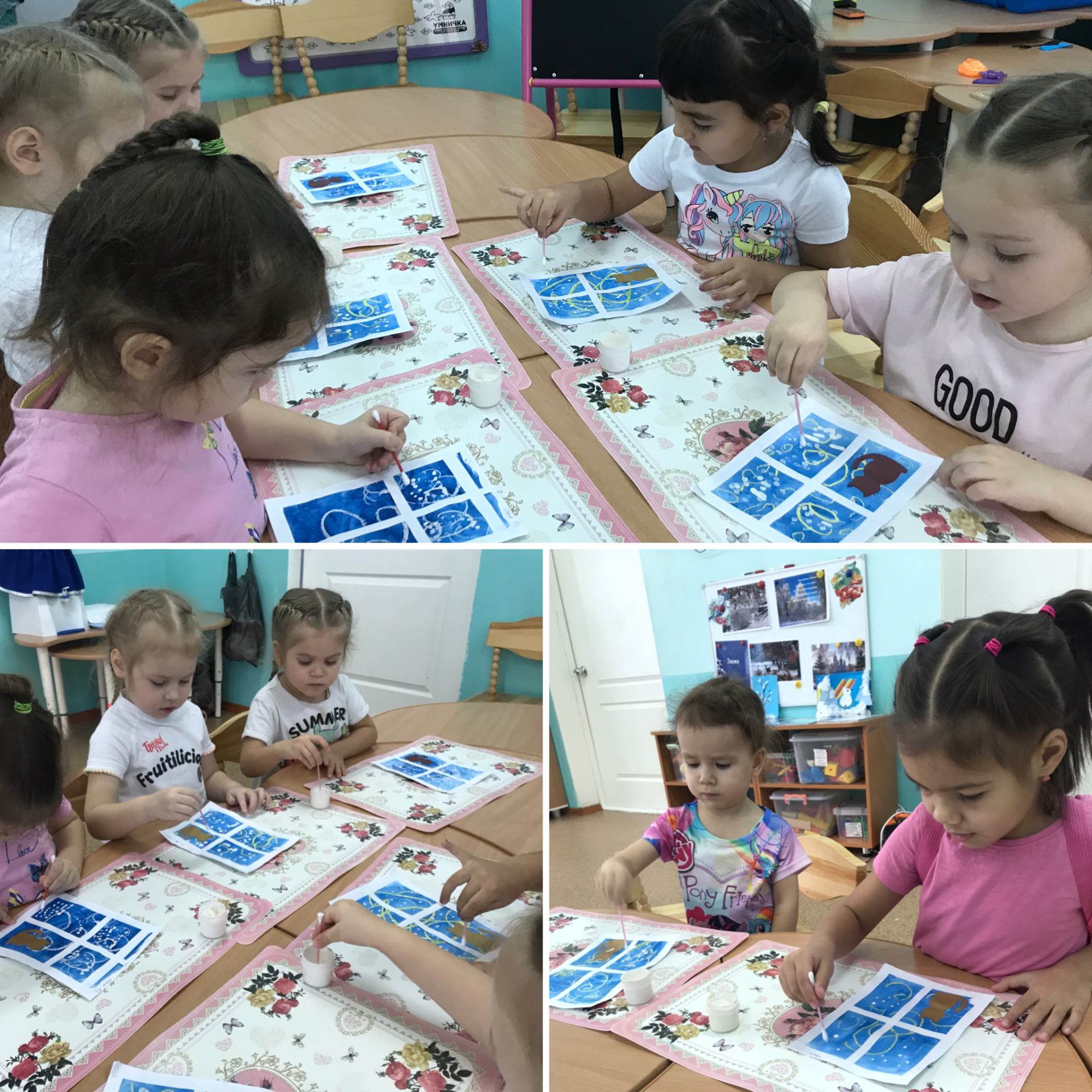 Зима – это всегда праздник для детей. Это катание на санках, и лепка снеговиков, игры в снежки и многое другое. А еще это время, когда можно вдоволь рисовать, раскрашивать картинки и клеить аппликации, ведь рисование и поделки своими руками – одно из любимых детских занятий. Тем более что зимняя тематика – поле для полета фантазии и художественного творчества, взрослых и детей. Передать красоту зимнего времени года в рисунках можно разными способами и материалами. Самое главное, чтобы было вдохновение и желание изобразить всю прелесть зимушки-зимы. Вот и наша группа «Кораблик » не остается в стороне. Каждый день мы занимаемся творчеством.