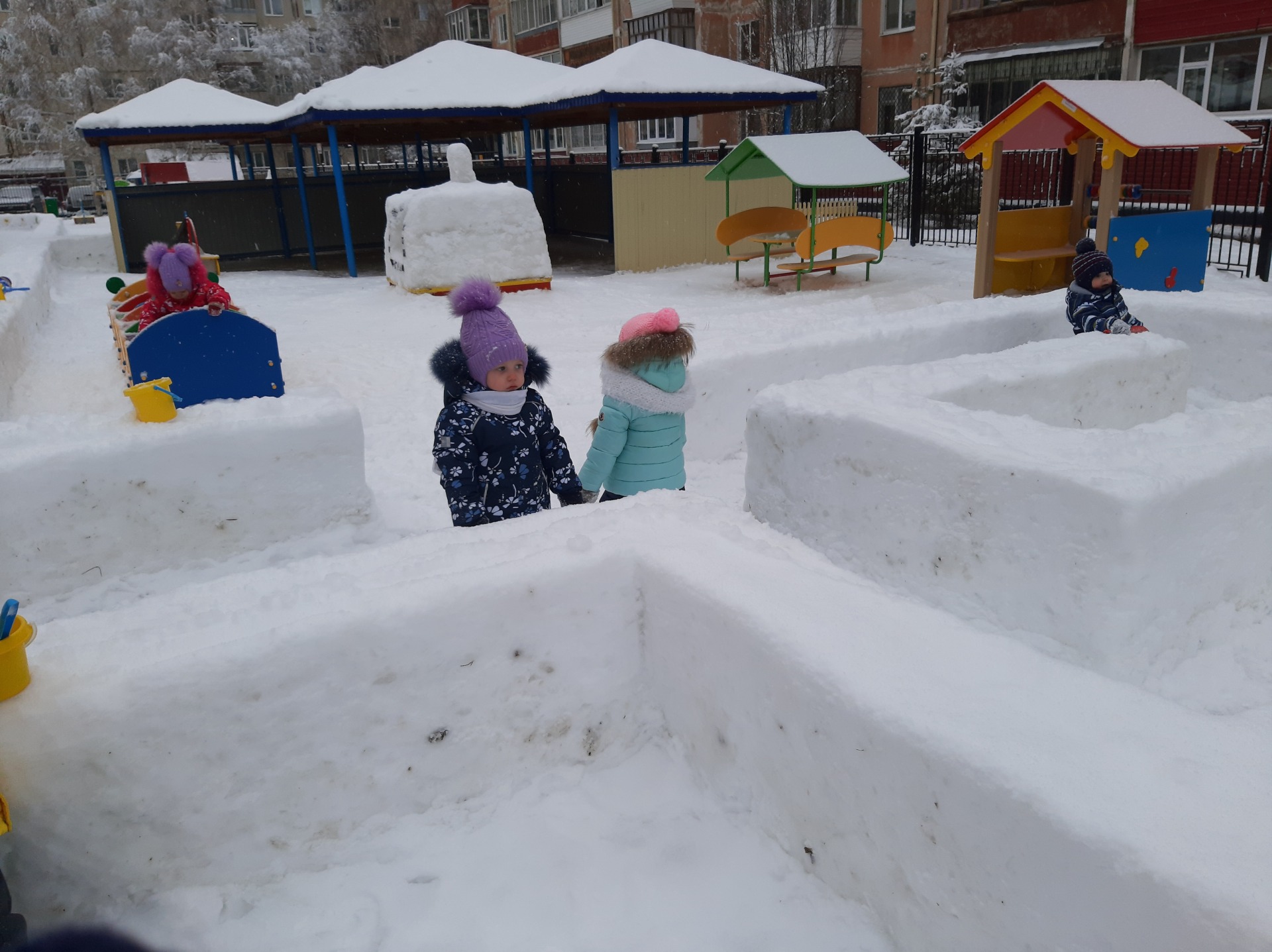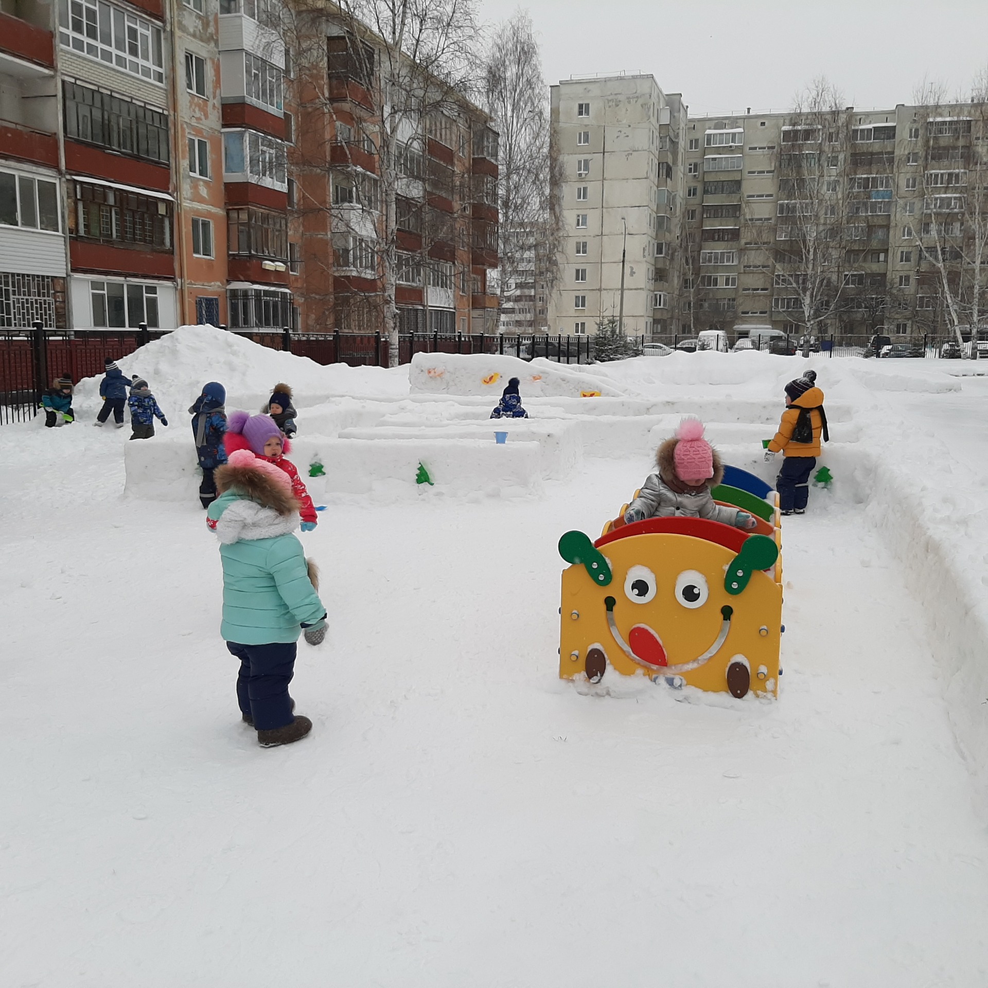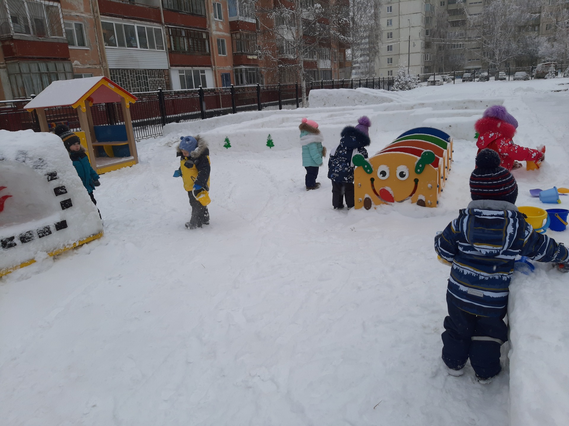 На прогулке мы наблюдаем за птицами, прохожими, катанием старших детей с горки, уборкой снега.