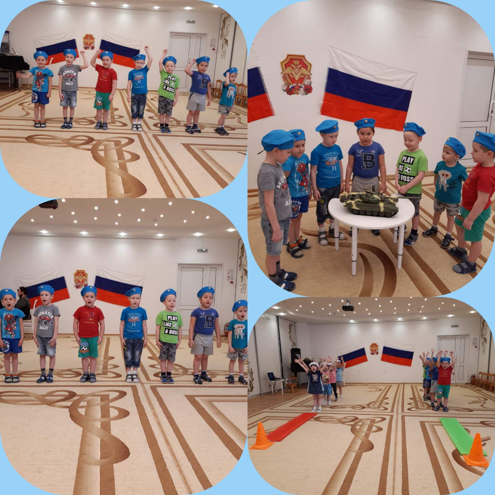 Мы организовали цикл мероприятий: провели с детьми беседы, тематические занятия, читали рассказы об армии, оформили выставки, играли в сюжетно - ролевые игры, дидактические игры и занимались творчеством!. Воспитанники подробно узнали о том, кто такие защитники Отечества, о разных родах войск, о военных профессиях и продемонстрировали практические навыки на музыкально — спортивном празднике, который прошел в детском саду.