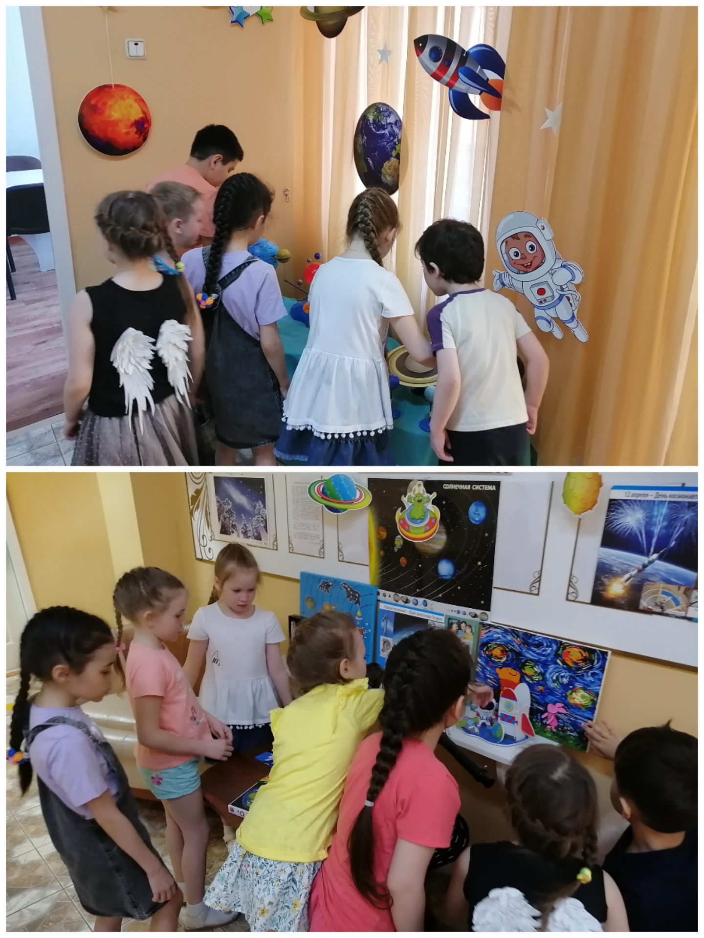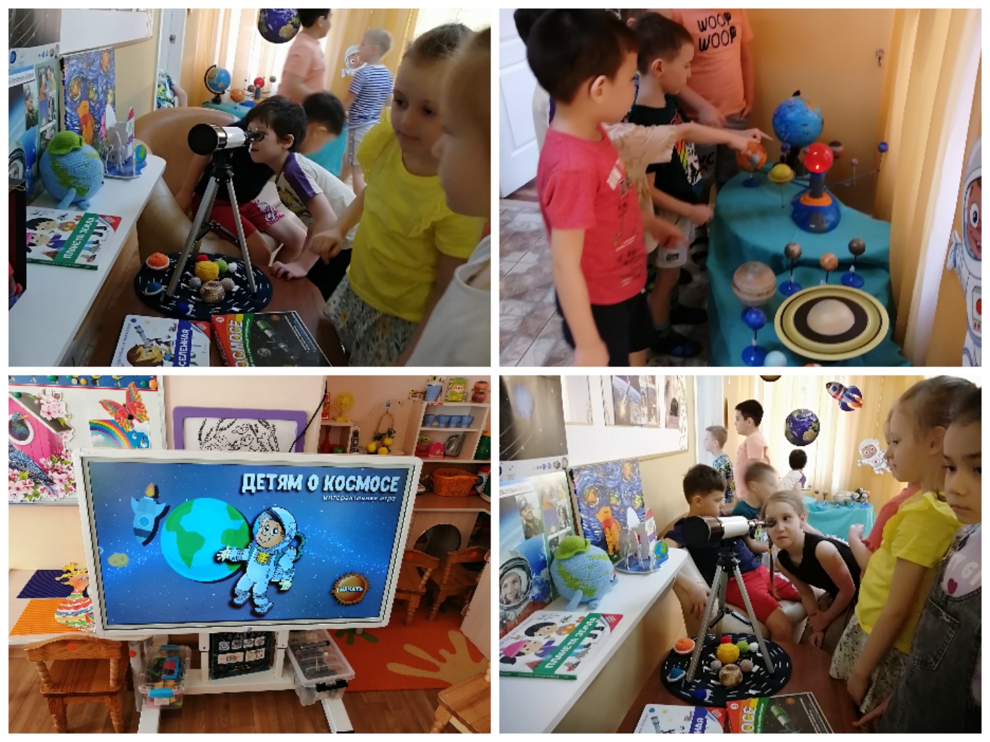 В нашем детском саду в группах «Гжель» и «Гномы» с 12 по 16 апреля прошла тематическая неделя, посвящённая Дню космонавтики. Воспитанники в течение недели знакомились с информацией о первом полёте человека в космос, о планетах Солнечной системы, о Вселенной. Придумывали и рисовали свои собственные планеты, называя их своими именами. В группах были оформлены выставки детских работ, посвящённые этому празднику. Тематическая неделя, посвященная Дню космонавтики, бесспорно, запомнилось ребятам и, не исключено, что кто-то из них сам захочет стать космонавтом.