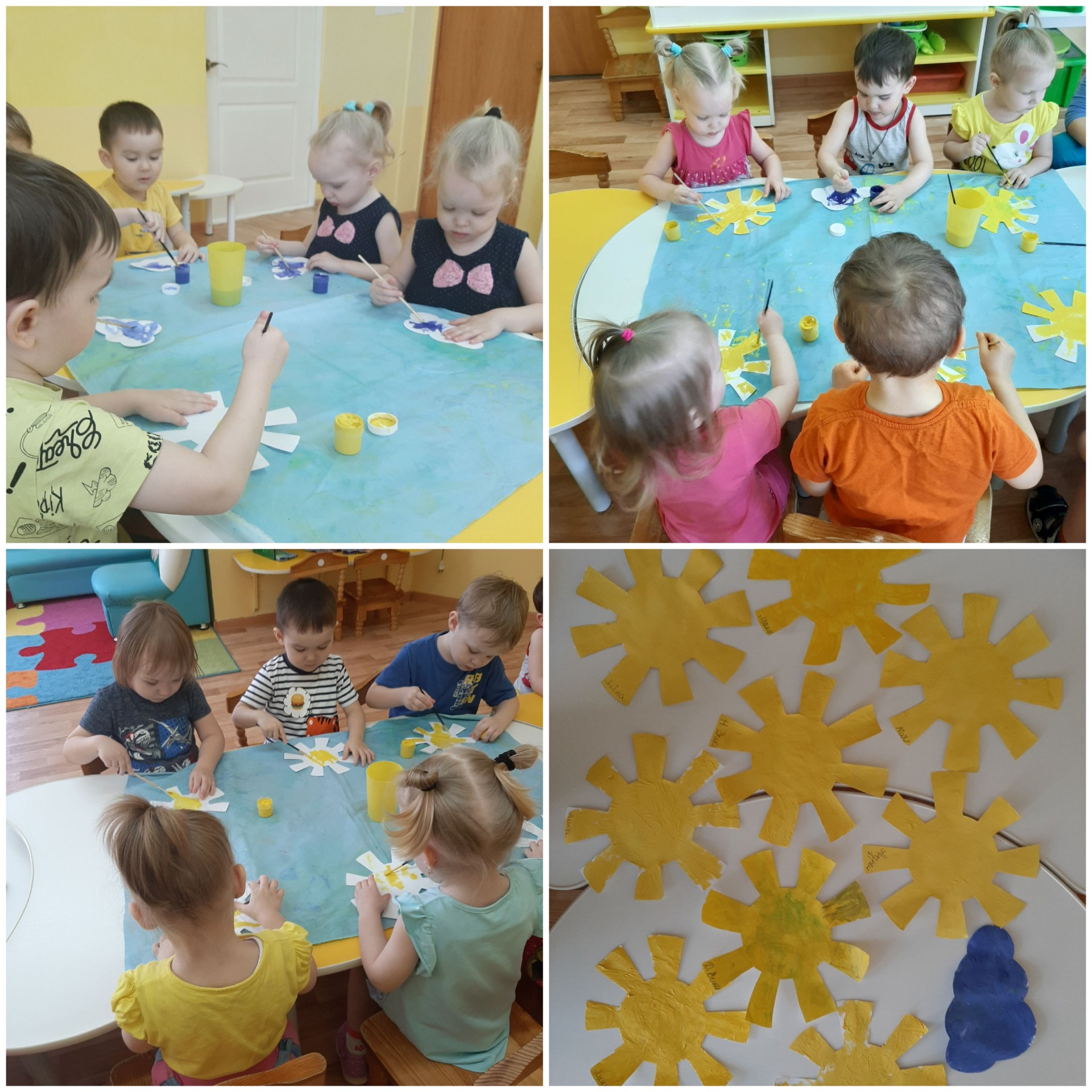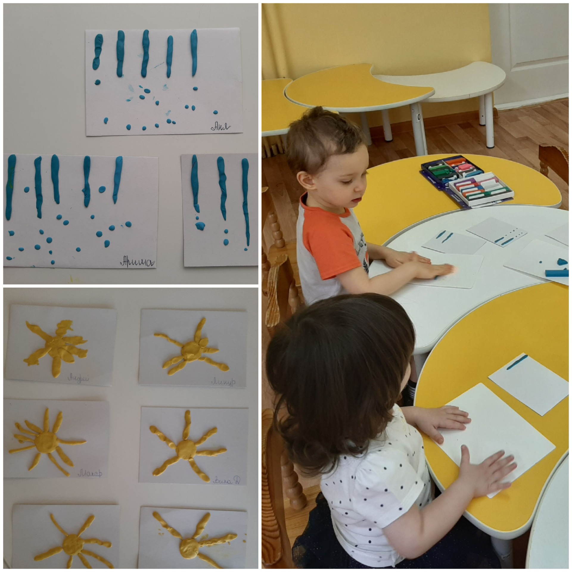 В ходе продуктивной деятельности ребятишки создавали солнышко, тучки, сосульки.