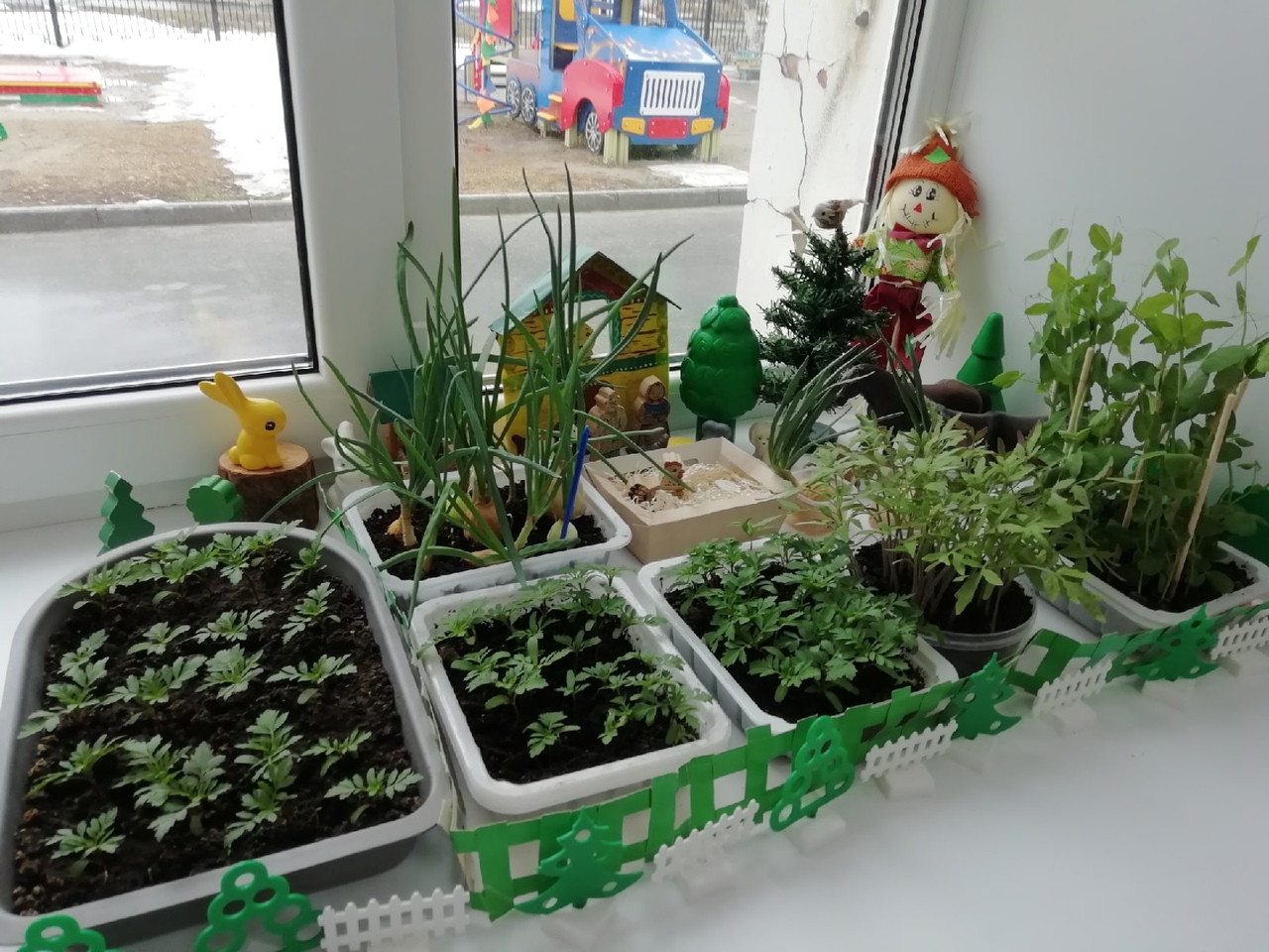И стало солнце яркими лучами сиять, землю мокрую ласкать, согревать, дала возможность ребятам "огород сажать". Лук, помидоры, горох, цветы стали быстро подрастать и расти. А какие перышки выросли у лука, вы друзья, посмотрите - ка!