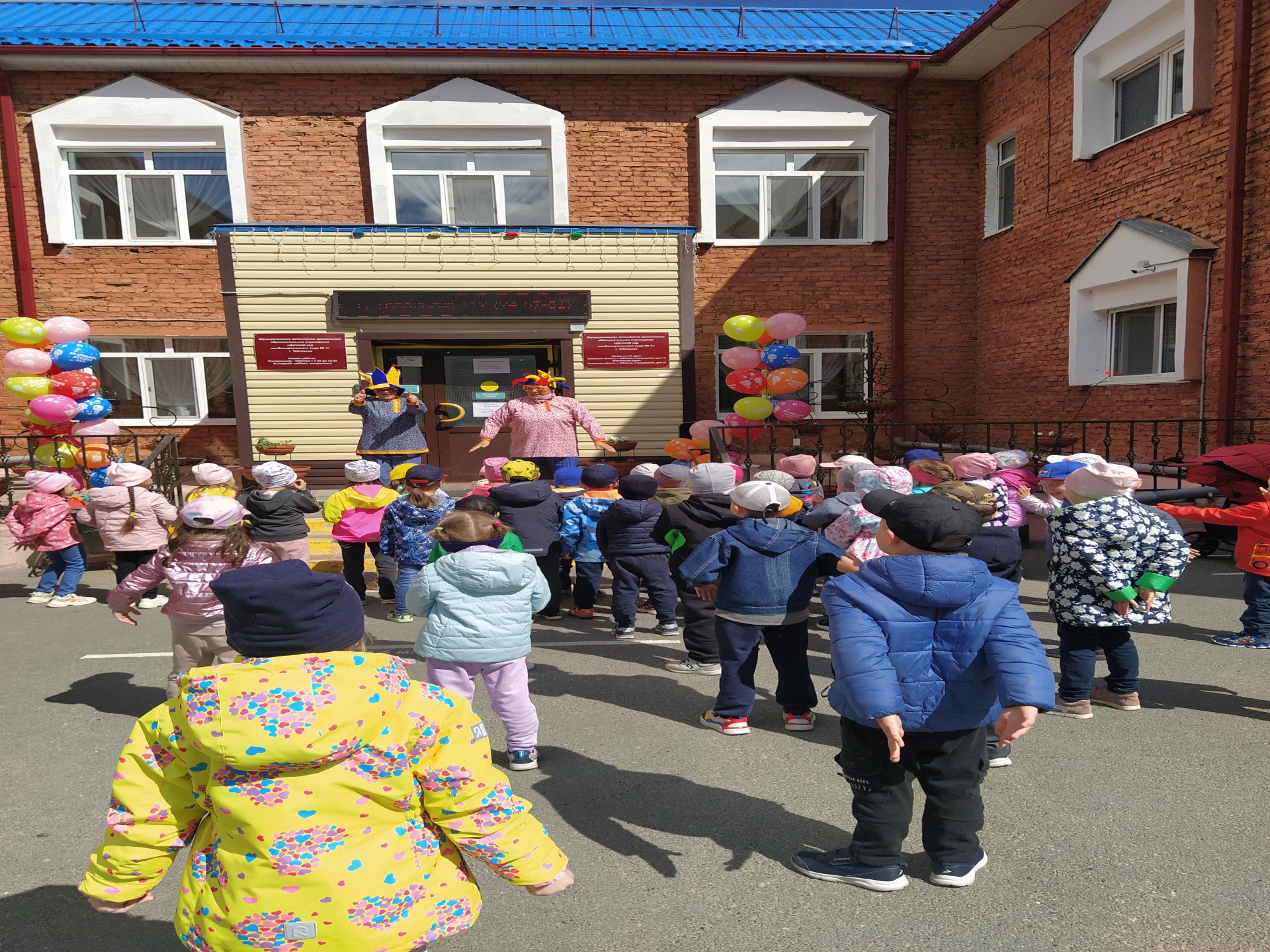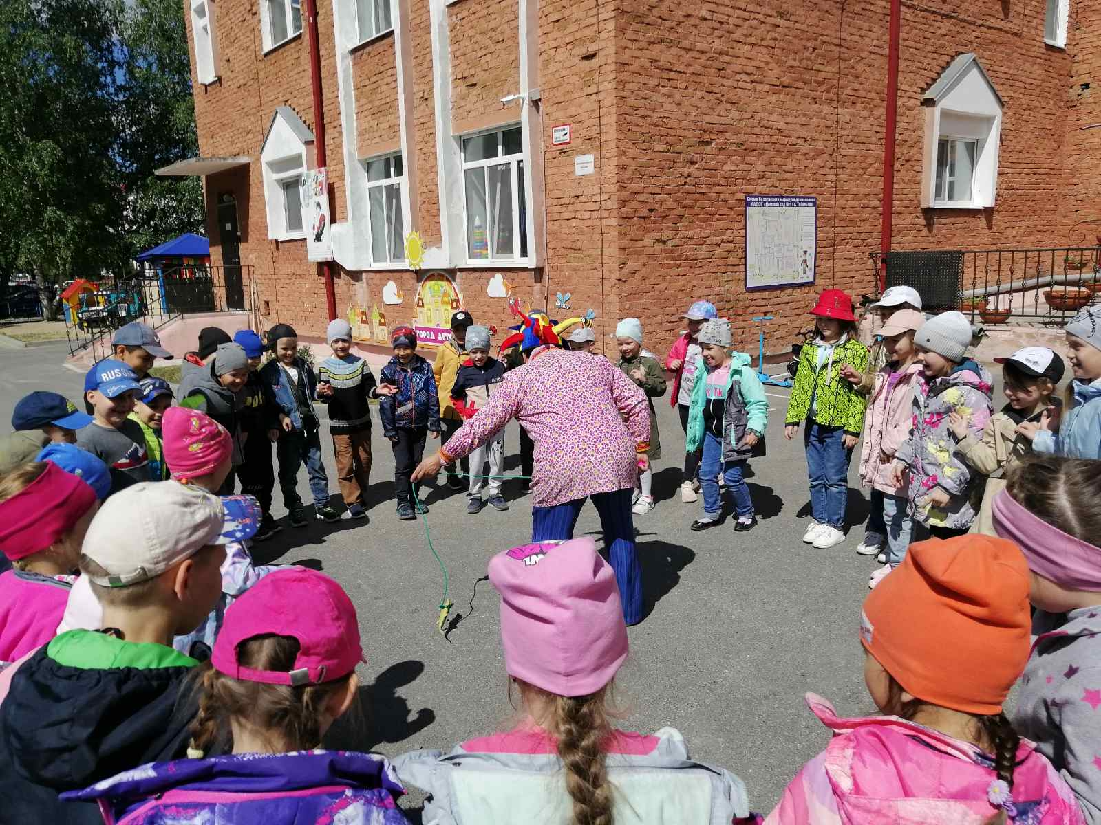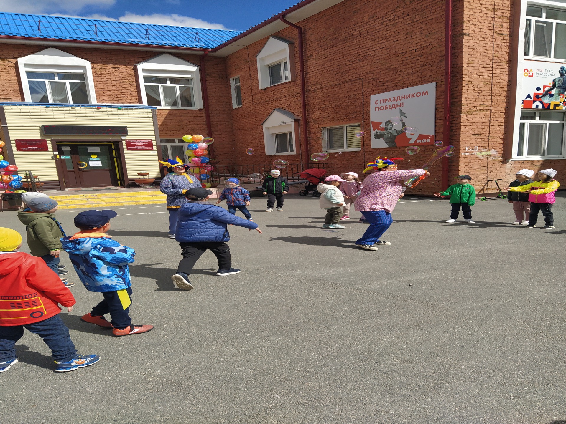 Дети пели, играли, танцевали вместе с гостями скоморохами. Водили хоровод «Солнышко и тучка», провели флешмоб, подвижные игры «Будь внимательным!», «Ракета». В конце мероприятия все наблюдали за фейерверком из мыльных пузырей. Атмосфера была праздничная. Дети получили эмоции и весёлое настроение.