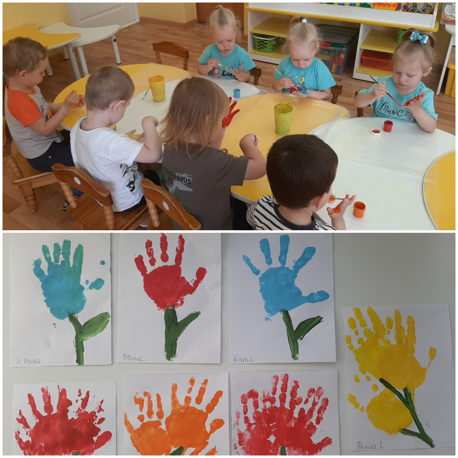 В ходе тематики недели дети рисовали не только кисточками, мелками, но и учились рисовать ватными палочками, ладошками, пальчиками.
