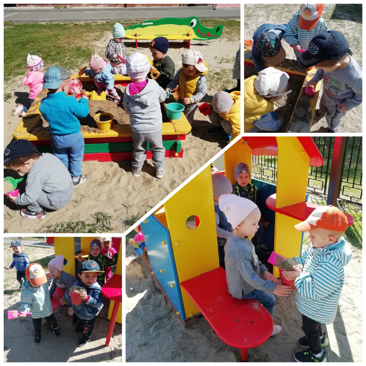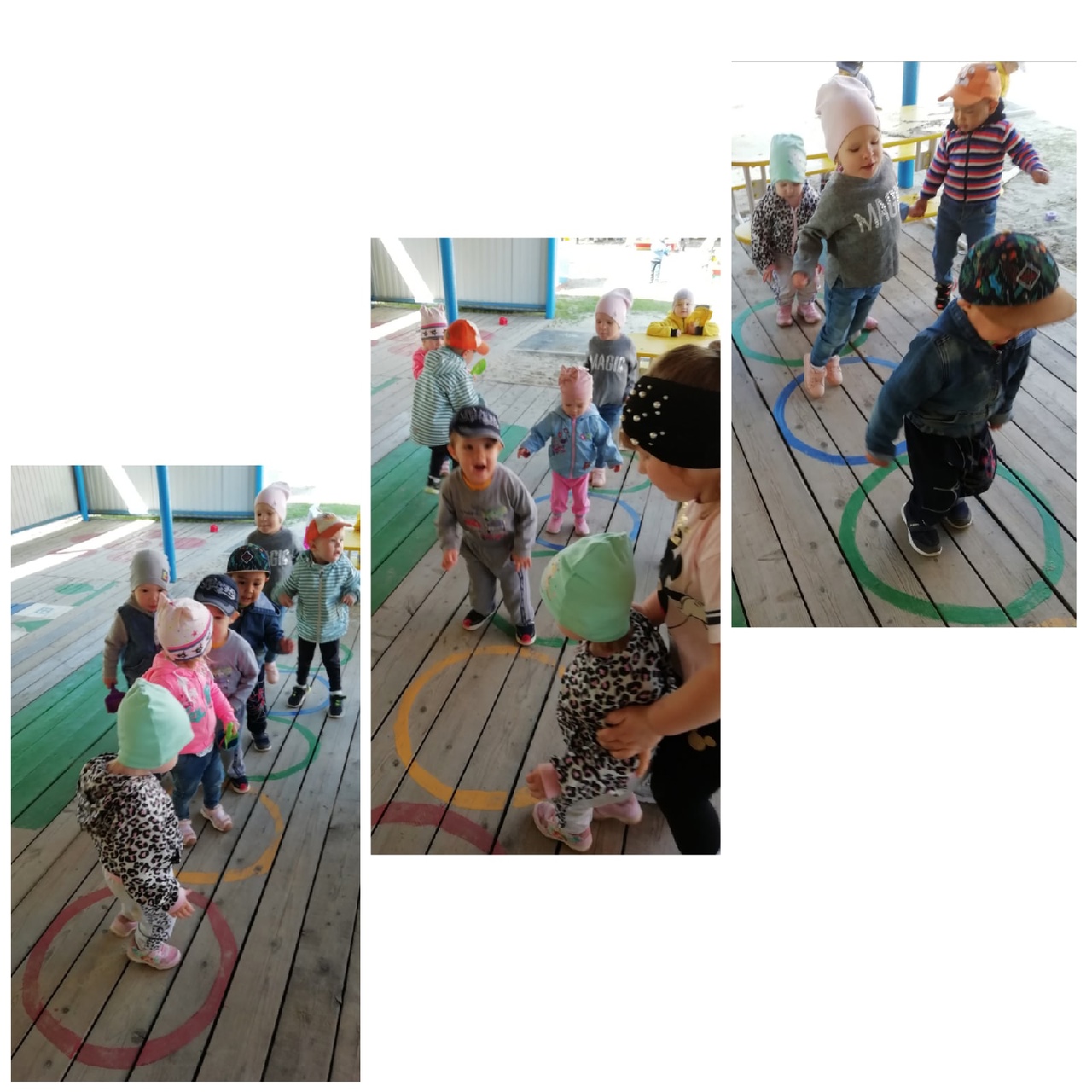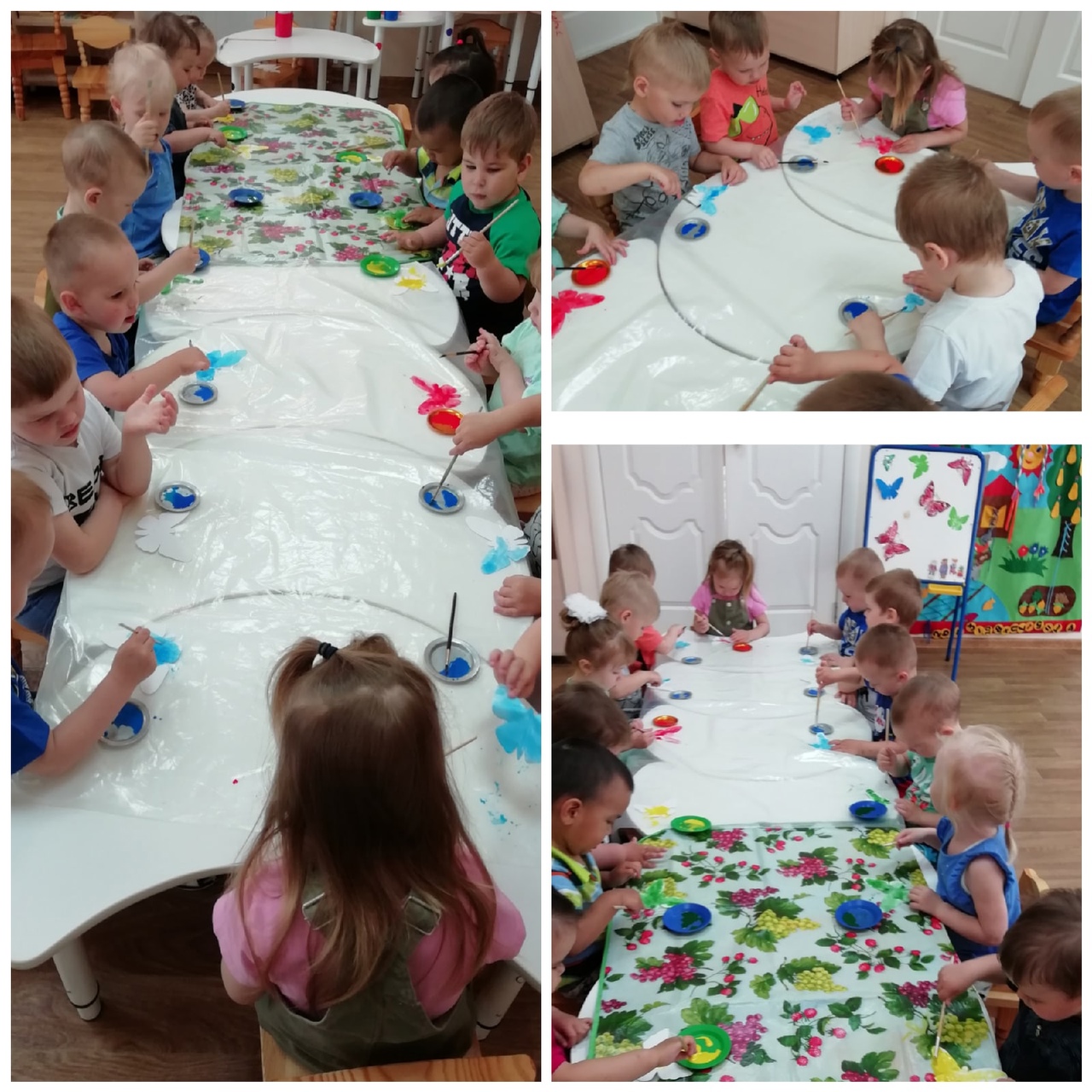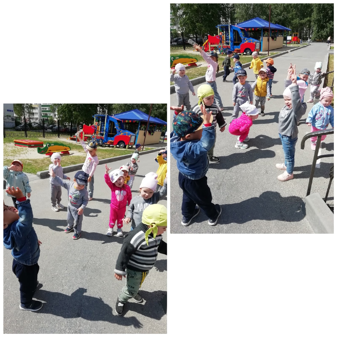 И вновь топотушки радуются тёплым, летним денькам, здороваются каждое утро с солнышком, играют с ним в прятки, ловят солнечных зайчиков, прыгают, бегают, играют в разные подвижные игры, рисуют мелом, создают фигурки из песка. Наблюдают за красиво плывущими белыми облаками на голубом небе, за тем, как тёплый ветер раскачивает уже новые листочки на деревьях, за чудесными бабочками, за цветочками…И конечно же, свои впечатления они отражают в своих рисунках, поделках…