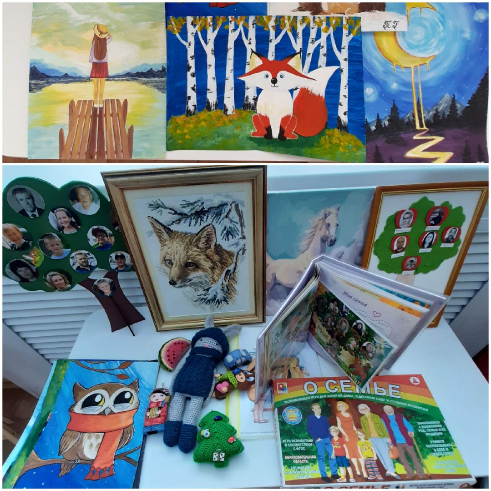 В рамках тематической недели дети старшей группы «Светлячок» совместно с воспитателями и родителями организовали в группе мини выставку: «Мир семейных увлечений». Много беседовали, рассказывали о своей семье, ее традициях и семейных ценностях, рассматривали рисунки, альбомы, творческие работы мам и пап.