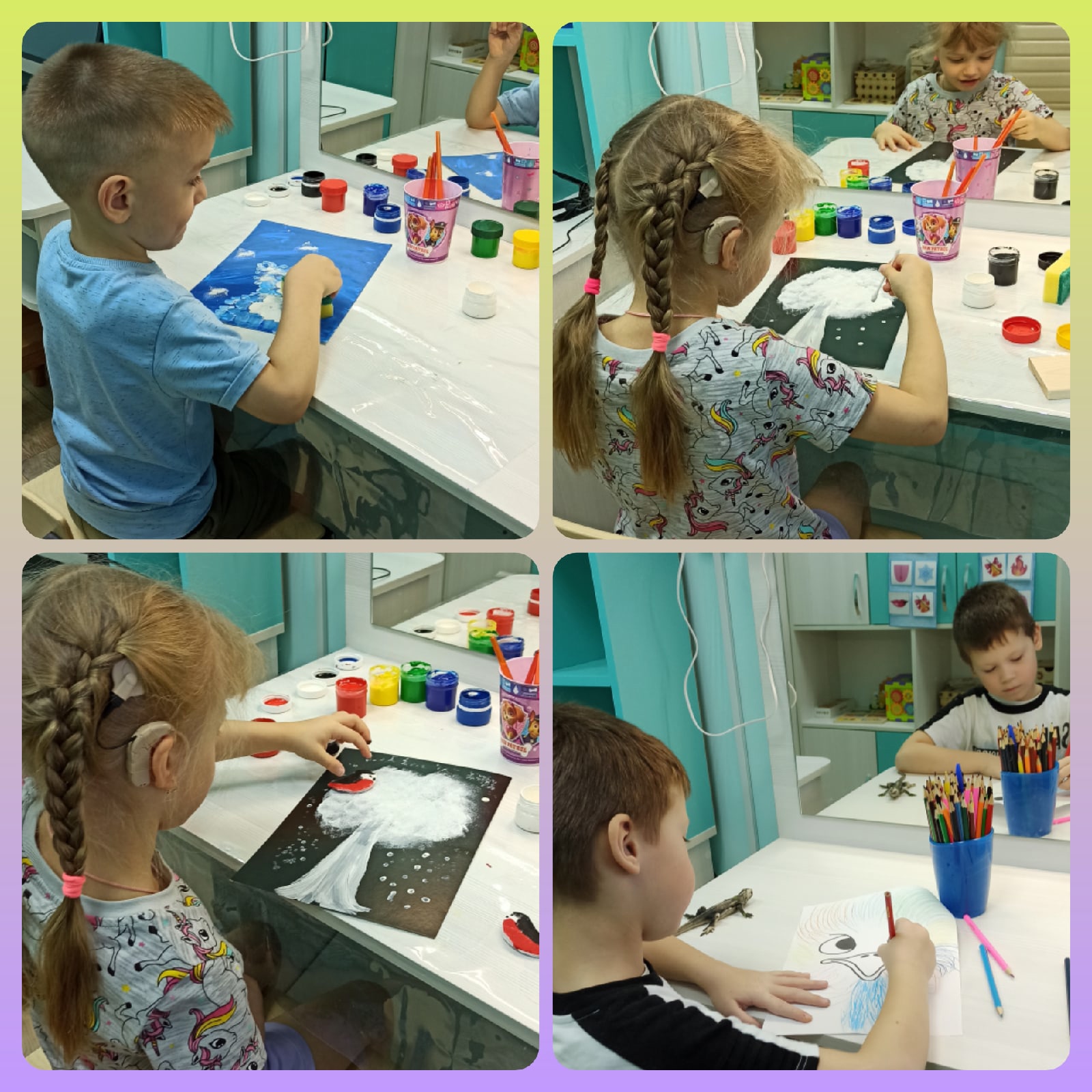 В рамках акции дети рисовали рисунки на тему: «Мир за твоим окном!». В работах были использованы разные техники рисования в соответствии с возрастом и возможностями детей.