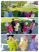 Во время нашей осенней прогулки, дети также решили создать маленькие букеты из собранных на дороге сухих цветов и ярких осенних листьев. Они учились выбирать цветы, оставляя растения неизменными, и заботливо упаковывали их в маленькие букетики. Это был замечательный способ познакомить детей с природой и уважением к окружающей среде.