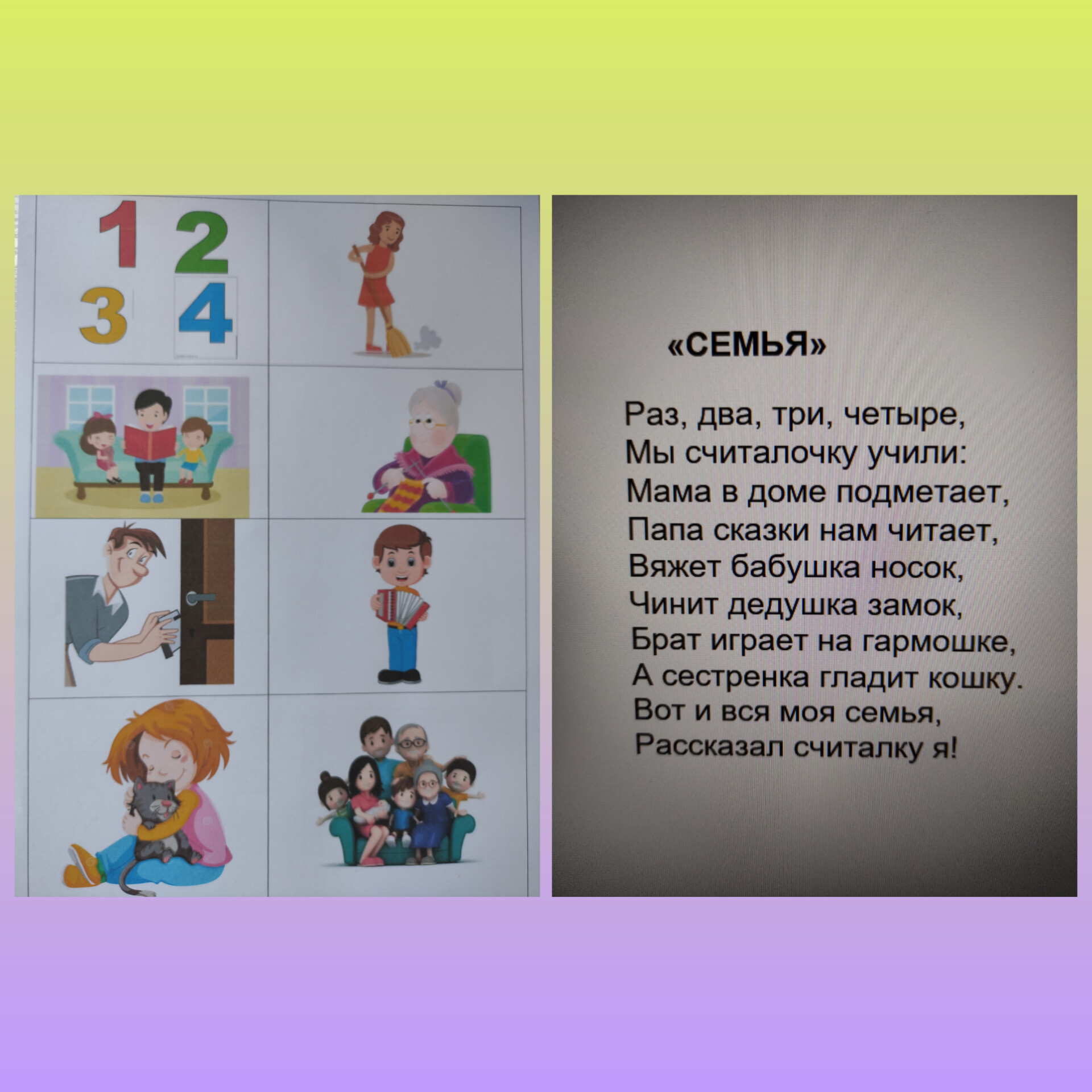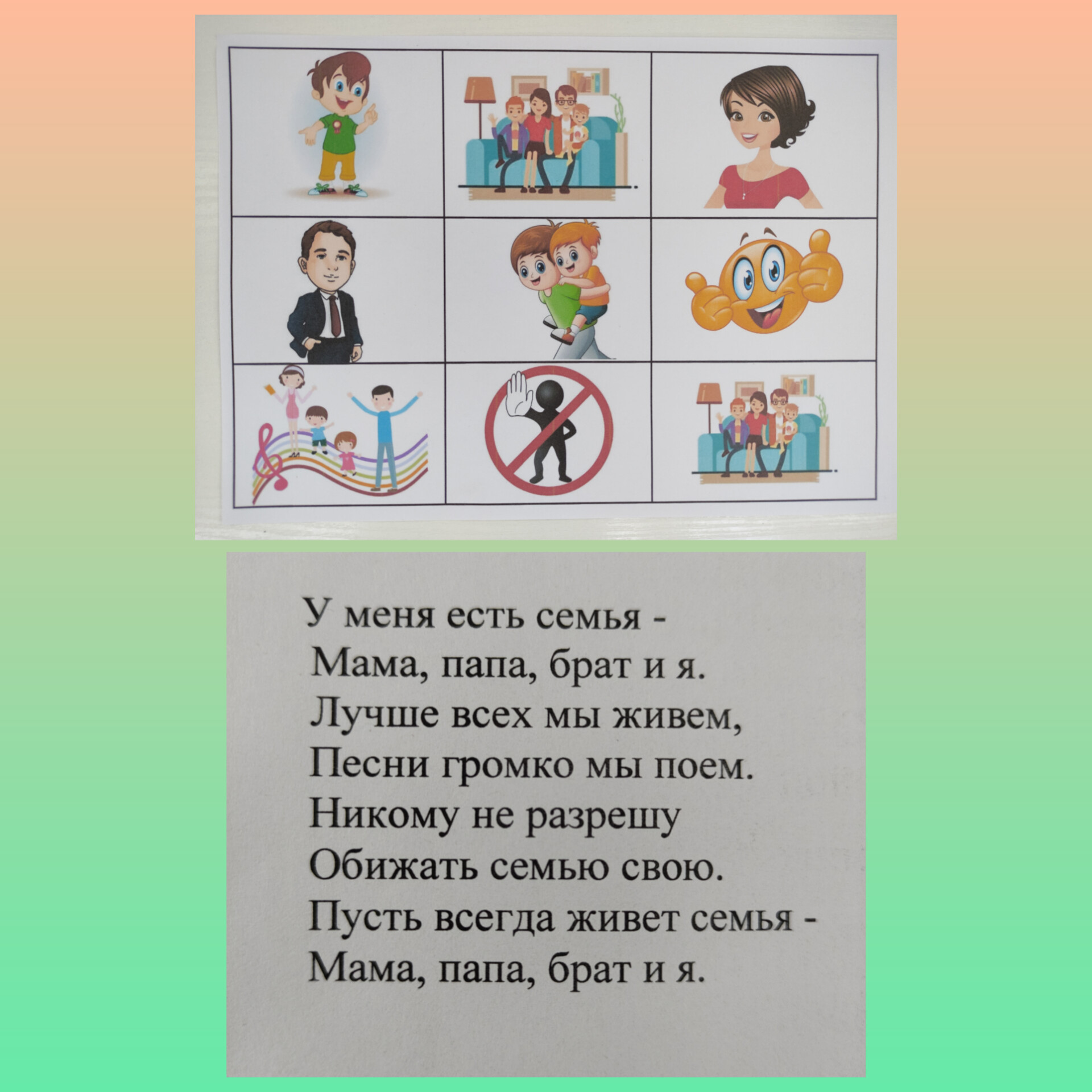 Вот и на тематической неделе «Моя семья», и мы с ребятами смогли быстро выучить несколько стихотворений, используя мнемотаблицы: «Семейная зарядка», «Семья», «У меня есть семья». Мнемотехника помогает ребятам улучшить память, развивает воображение и фантазию. Они становятся более внимательным. Такие таблицы можно сделать вместе с ребенком дома. В тем более, что современные дети очень увлечены гаджетами и можно их увлечение направить в правильное русло с небольшой вашей помощью.