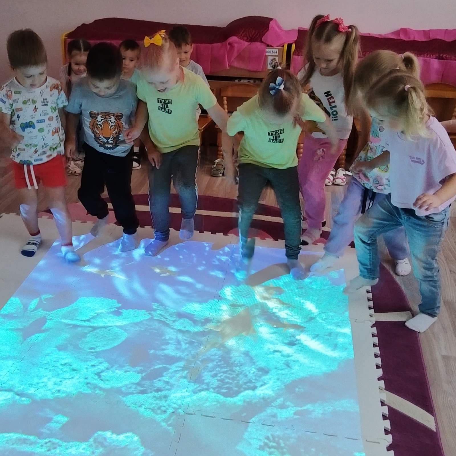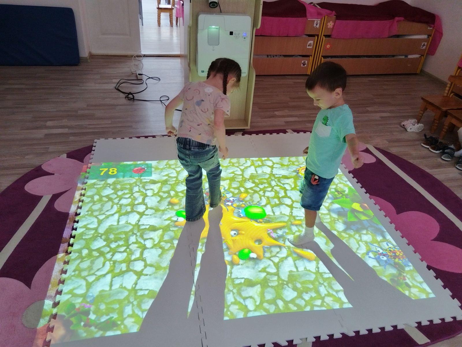Интерактивная поверхность легко может перенести в джунгли, пустыню, на самые высокие горы мира или берег моря. А подвижные детские интерактивные игры! Сколько восторга вызовет игра в классики, футбол или бадминтон. Возможность самостоятельно управлять изображением позволяет ребенку полностью погрузиться в процесс обучения (игры).