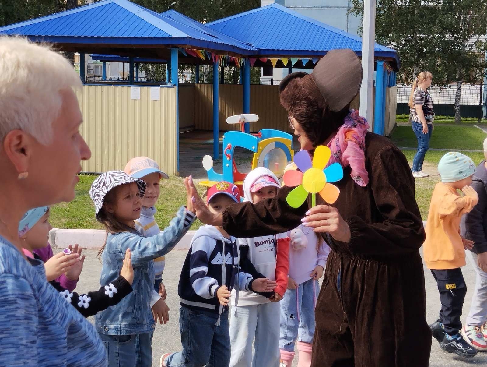 Самый любимый и малышами и взрослыми персонаж детских книг, мультфильмов и даже фильма - Чебурашка. Этот добрый, наивный и неизвестный науке пушистый зверёк - празднует 20 августа свой день рождения. Это человеческая фантазия и бесспорный талант писателя Эдуарда Успенского подарили нам - миллионам малышей бесподобного, немного несуразного и милого Чебурашку. Вот и сегодня к нам в детский сад заглянул наш любимый герой. Как и положено на настоящем дне рождения были звонкий смех, песни, загадки, весёлые игры, дружный хоровод, подарки и угощения. Ребята приготовили для Чебурашки волшебный цветик - семицветик, который исполнял любые желания не только именинника, но и всех ребят. Дети с удовольствием поиграли в игры: "Давайте познакомимся", "Донеси апельсин", "Ровным кругом", "Торт", пели весёлые песни в честь именинника и задорно танцевали. Ребята чудесно провели время на прогулке с очаровательным гостем.