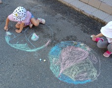 Рисуя на асфальте дети использовали разноцветные мелки создавая яркие картины и рисунки. Рисунки на асфальте дети использовали во время игр.