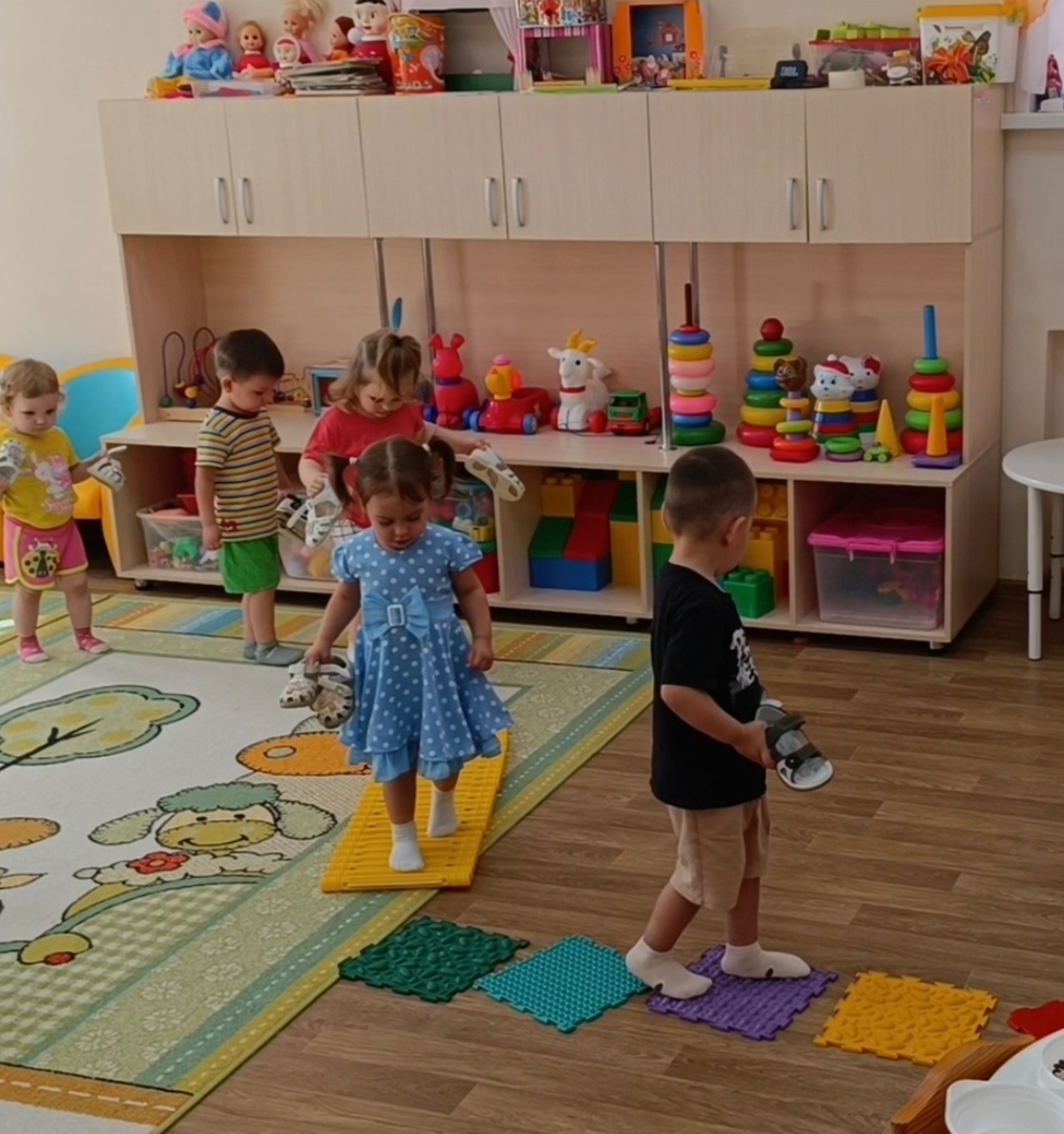 Как только дети собрали мусор, мы услышали какой-то шорох. Неподалёку, за пеньком, прятался мышонок. Он заблудился и попросил отвести его к маме, в этом нам помогла разноцветная дорожка (массажные коврики). Проводив мышонка до норки, он пообещал маме мышке, что больше не будет уходить далеко от дома и попросил прощение. А ребята помогли мышонку перебрать зёрнышки.