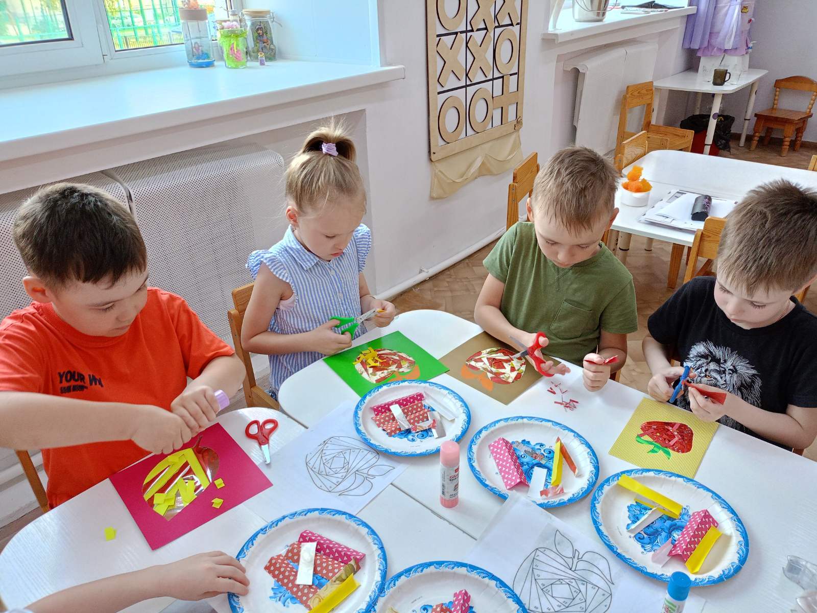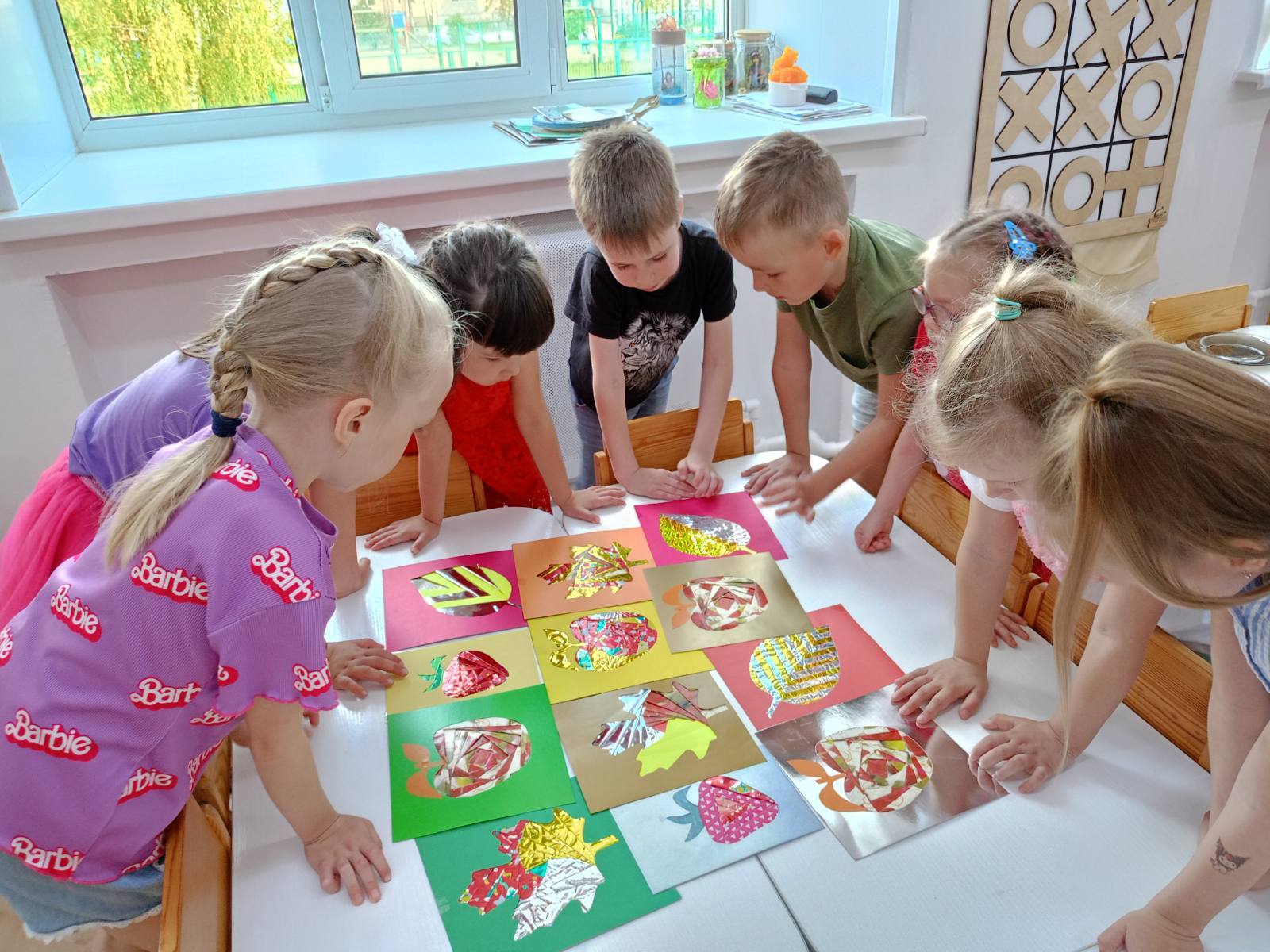 Осень! Замечательная пора времени года. Время разноцветных красок: деревья одевают новый наряд, когда листва становится оранжево – желтой, а мир принимает новые краски. Это время для творчества и фантазии. Природа сама предлагает нам красочный и интересный материал для вдохновения. Осень можно изобразить в самых различных техниках. Вот и дети подготовительной группы «Сказка» постарались изобразить элементы осени, проявили свою фантазию, воображение, умения и навыки и изготовили осенние листья, ягоды, яблоки, в нетрадиционной технике аппликации Айрис - Фолдинг (радужное складывание) Эта техника появилась на территории Голландии. Первоначально, по этой технологии, дети готовят полоски цветной бумаги нужного размера (бархатная, подарочная, упаковочная). По контуру шаблона на листе основы вырезается фигурное окно, в котором и появляется создаваемое изображение. С лицевой стороны после удаления зафиксированного ранее шаблона можно любоваться готовым изображением. Окунувшись в атмосферу осеннего творчества и используя технику Айрис – Фолдинг детям удалось изготовить яркие оригинальные изображения, радующие глаз объёмом и ярким пространственным решением.