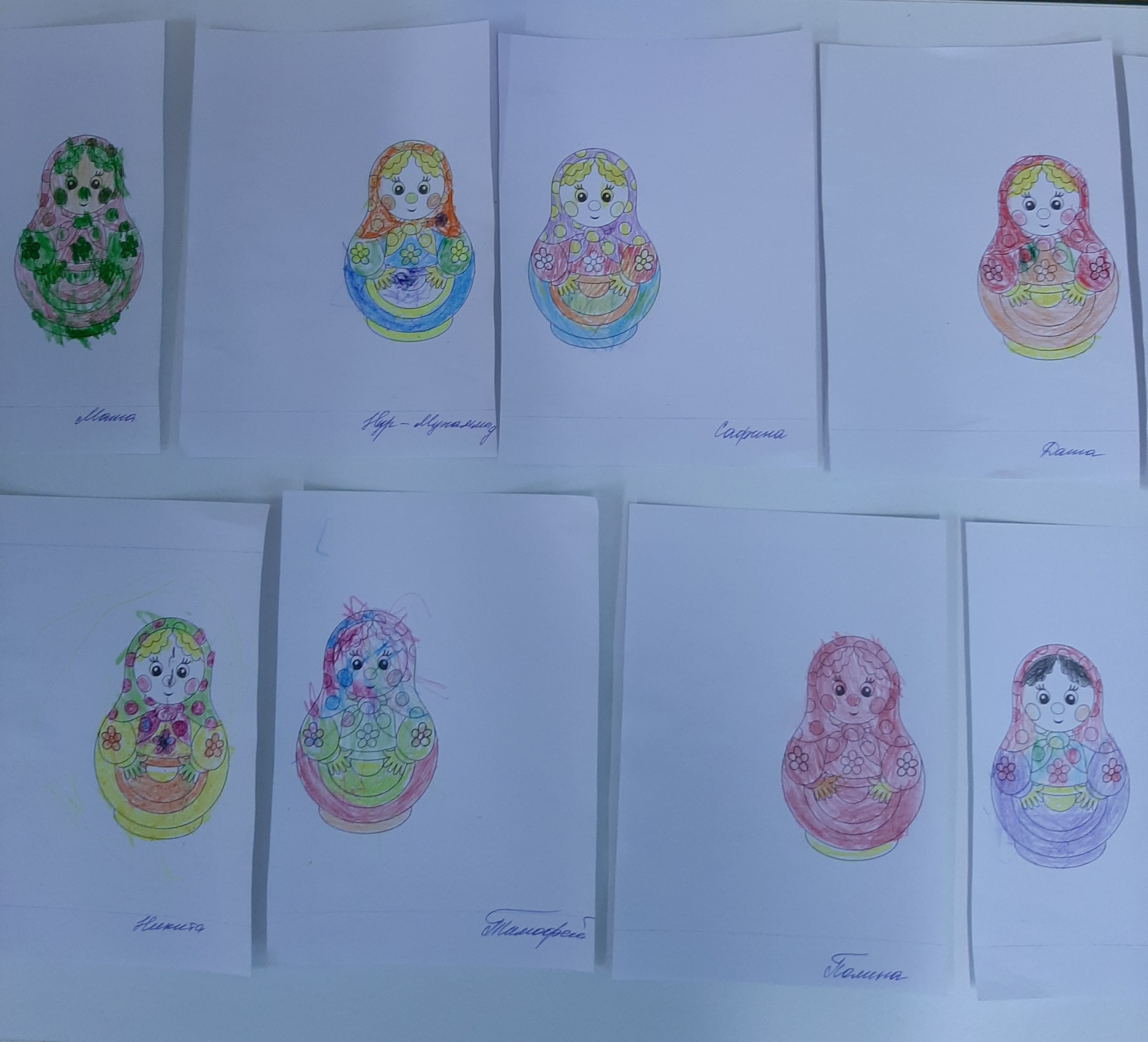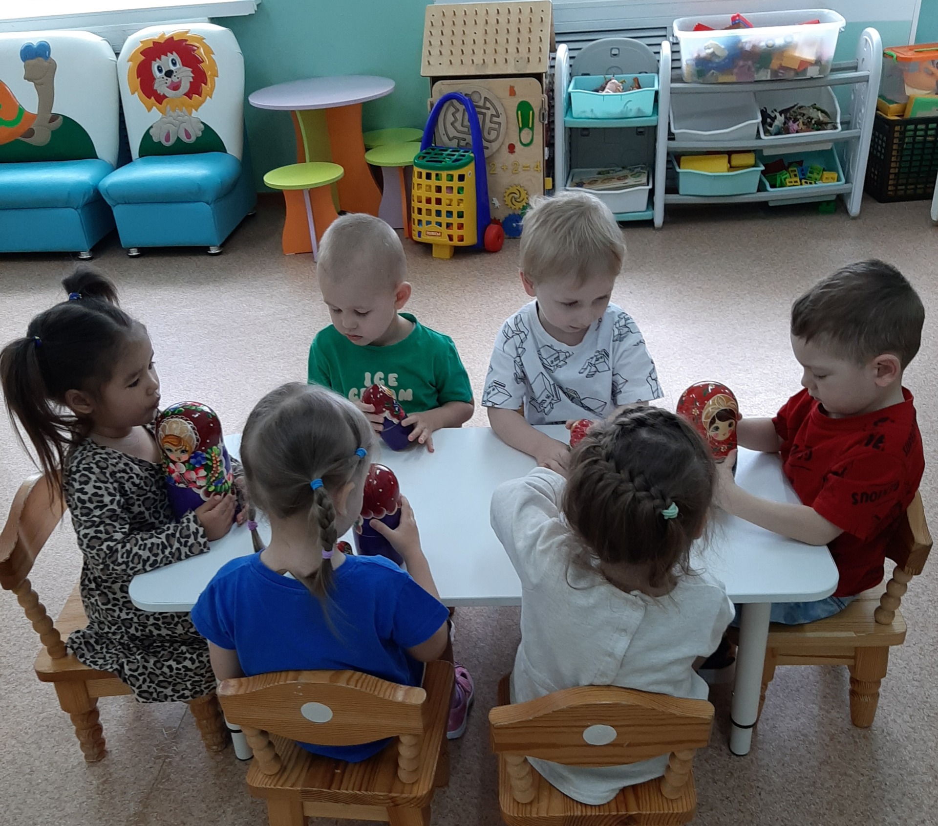 К детям 2 младшей группы «Кораблик» в гости пожаловала круглолицая, румяная Матрешка. Она пришла не одна, а с подружками. Дети обрадовались ее приходу! Дети познакомились с историей рождения Матрешки и со значением нового для детей слова «сарафан», с интересом рассматривали ее русский народный костюм: сарафан и платок. Ребята разгадывали загадки, рассказывали стихи, пели песенки. А дальше ребята отправились в мастерскую украшать матрешек в яркие сарафаны. Дети были настоящими мастерами умельцами. В ходе образовательной деятельности дети лепили матрешек из пластилина, были закреплены знания цветов, понятия «один», «много», определены размеры матрешек.