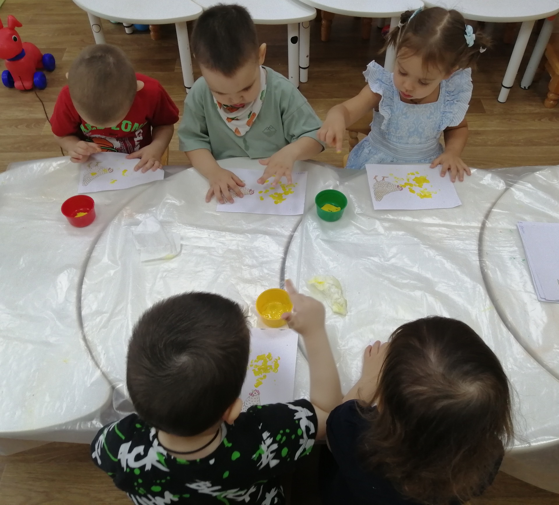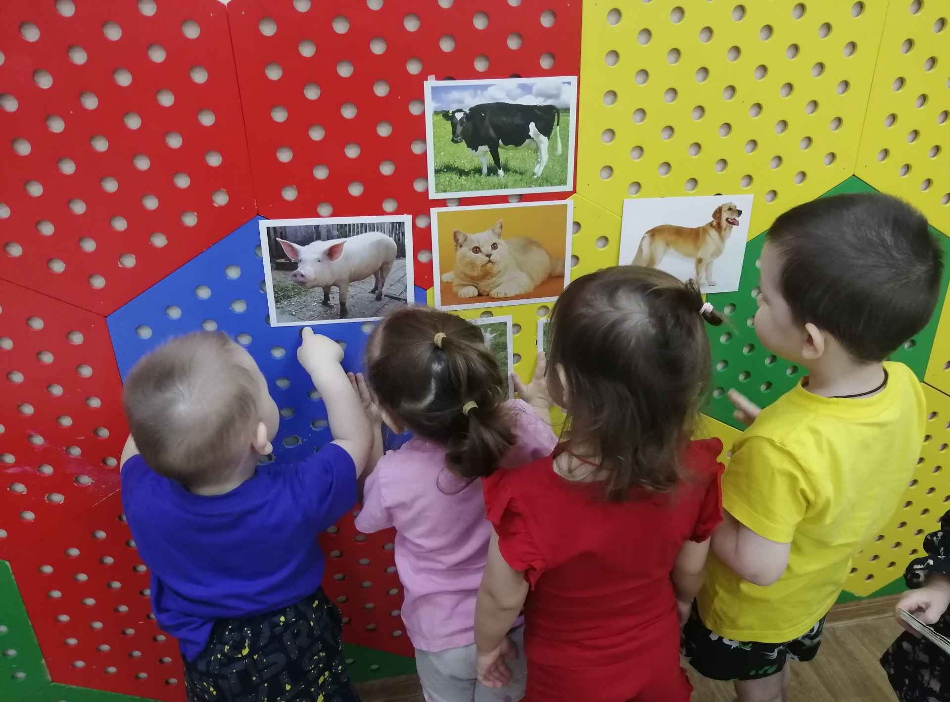 Развитие малыша подразумевает его знакомство с окружающим миром. Начать познание можно с самого простого – мира домашних животных. В первой младшей группе «Топотушки» познакомились с домашними животными. Дети с огромным удовольствием узнали, какие животные живут рядом с человеком, как выглядят, кто их детёныши, чем питаются, для чего нужны и как о них заботиться. Малыши пытались звукоподражать таким животным, как кошка, собака, корова, овца и т.д. через дидактическую игру «Кто как кричит?». Им были предложены картинки и фигурки домашних животных, которые они рассмотрели. Строили домики и заборчики для них. Рисовали зёрнышки для курочки. Малыши с интересом слушали песенки, потешки, прибаутки, сказки о домашних животных, рассматривали иллюстрации к ним. Играли в подвижные игры «Лошадки», «Лохматый пёс», «Кот и мыши».