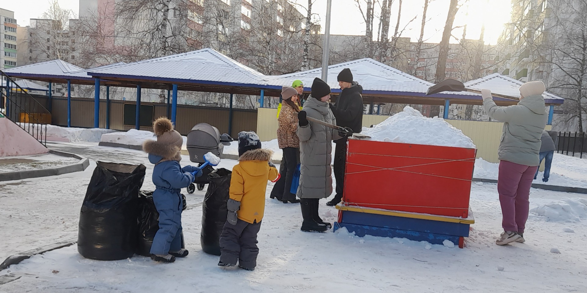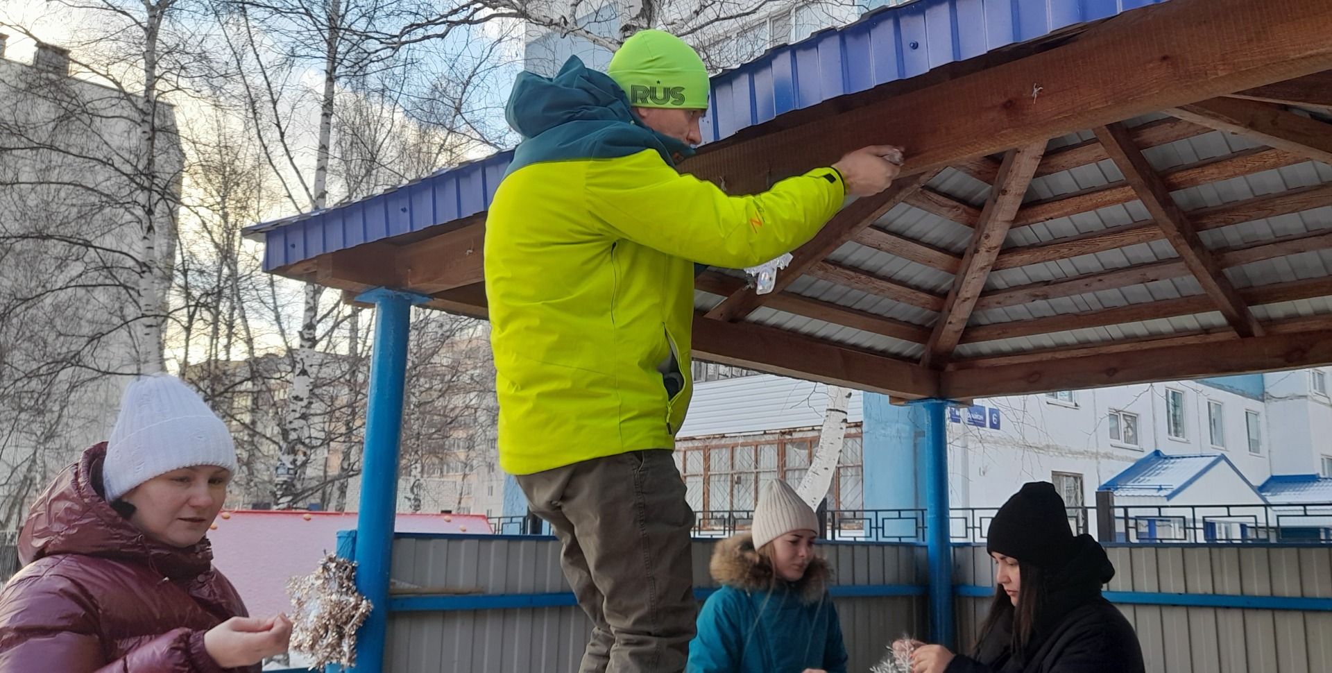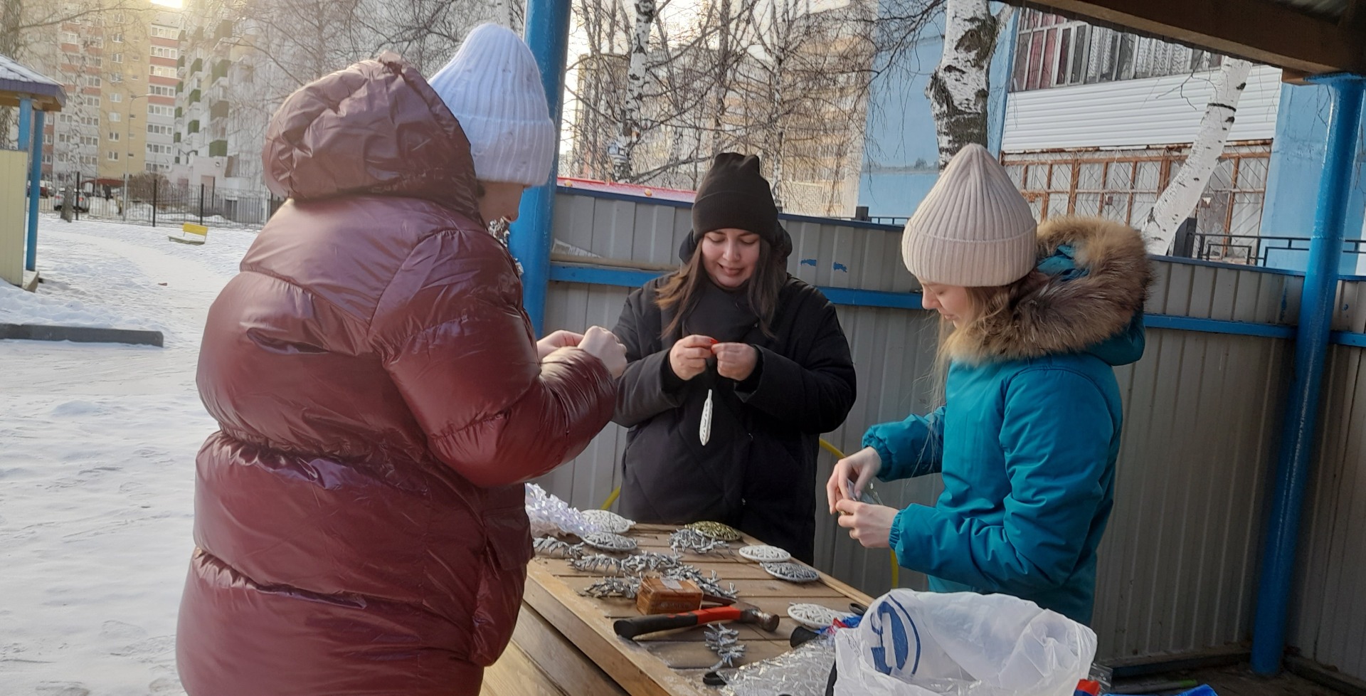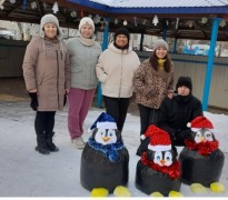 В воскресенье мы с родителями договорились украсить участок. Настроение было у всех хорошее и мы с интузиазмом приступили к работе. В результате на площадке появилась семья пингвинов, веранда преобразилась, её украсила новогодняя гирлянда. Так же сделали из снега кучи для снеговика и змейки. В следующие выходные планируем дружно выйти и оформить окончательно нашу площадку.