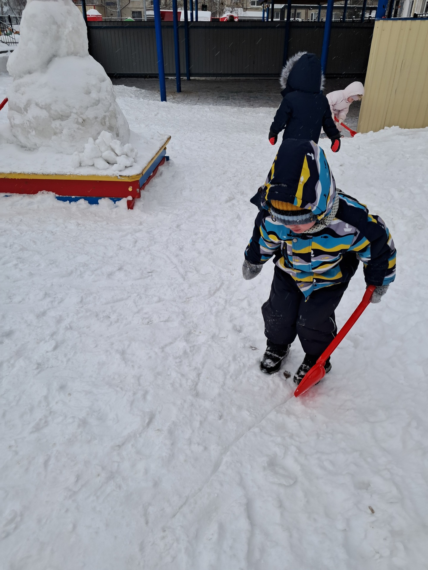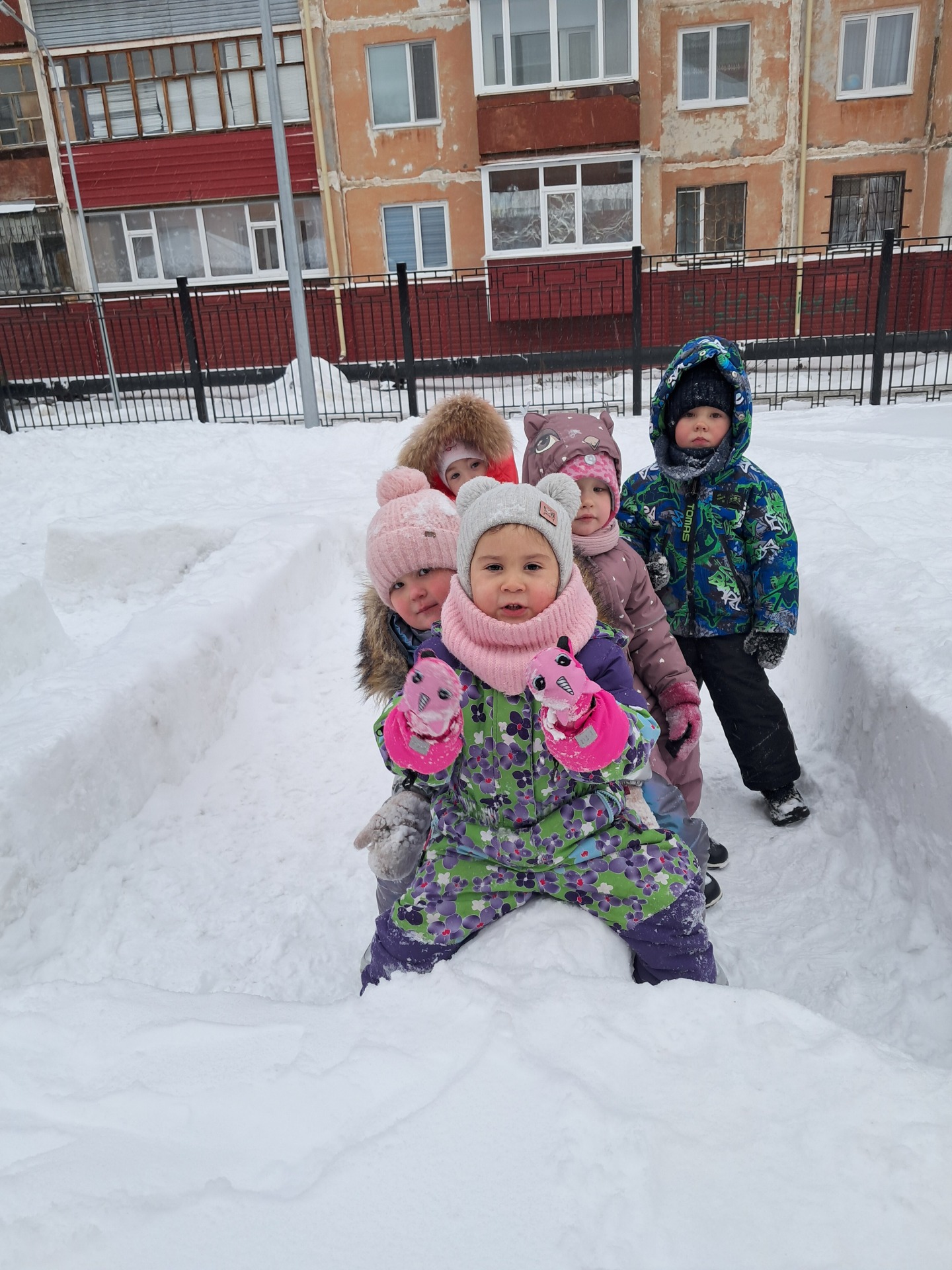Сколько радости и интересных зимних забав принесла зима детям! Мы выходим на прогулку, потому что очень важна двигательная активность на воздухе. Дети не только дышат свежим воздухом. Но и закаляются, получают заряд бодрости на весь день. Прогуливаясь по территории детского сада, мы с ребятами наблюдаем за снежной погодой, отмечаем все красоты зимней природы- свежий морозный воздух, снежные кружева на деревьях. А на участке у детей много дел: чистим снег, мастерим из снега постройки, играем в лабиринте – никогда не стоим на месте. С румяными щечками, в снегу, счастливые дети возвращаются с прогулки!