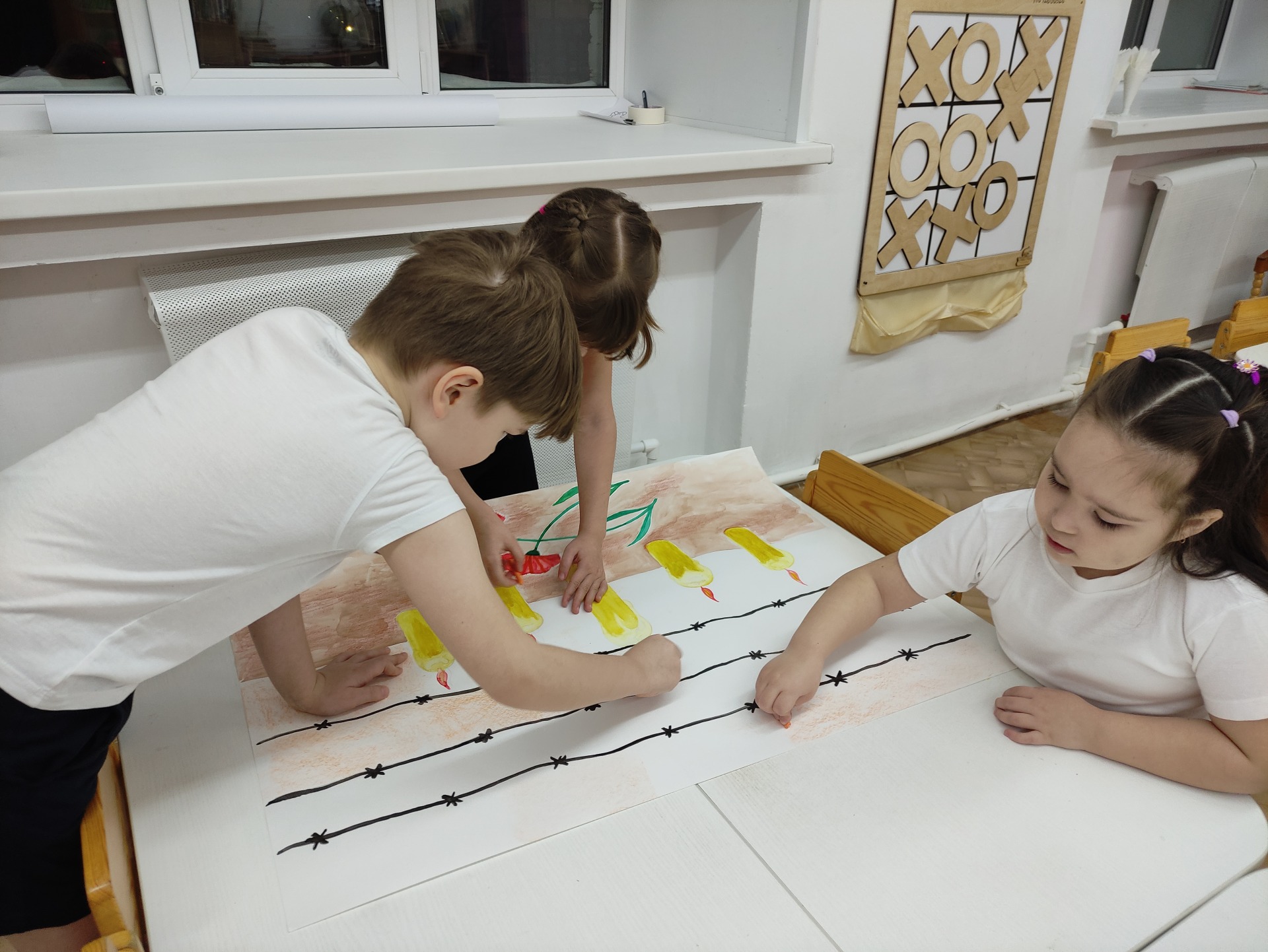 В рамках Года Героев и 80-летия Победы в Великой Отечественной войне 1941-1945 гг. в подготовительной группе «Сказка» прошёл час памяти «Холокост: трагедия, память, судьбы». В доступной форме мы рассказали детям о бедах, тяжестях и невзгодах, которые пережил советский народ в те времена. Дети узнали об ужасах, которые творили фашисты в лагере смерти: как морили голодом, заставляли до изнеможения работать, пытали, проводили преступные медицинские опыты, заживо сжигали в крематориях. Самое страшное, что среди заключённых в лагерях были и дети.