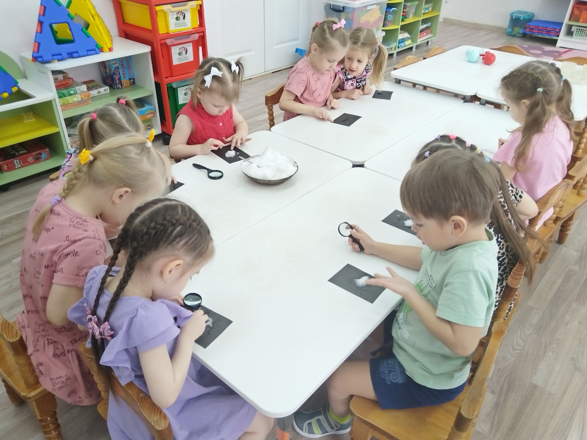 В рамках тематической недели "Мы-юные исследователи", в средней группе "Аленький цветочек" прошло образовательное событие под названием "Снежок". С раннего утра ребята откликнулись на письмо от Снеговика, в котором получили задание познакомиться со свойствами снега. Дети рассматривали хлопья снега через лупу, находили в саду весёлые снежные игры, экспериментировали и создали "вкусное" мороженное для снеговика!
