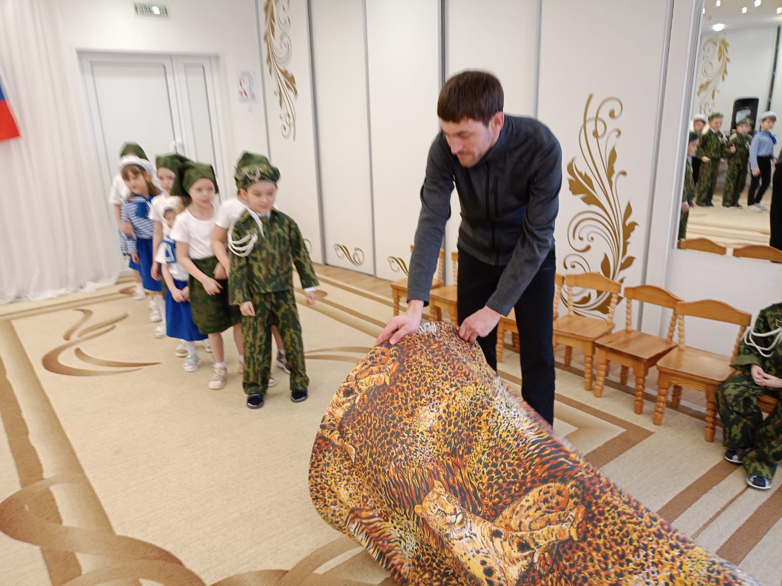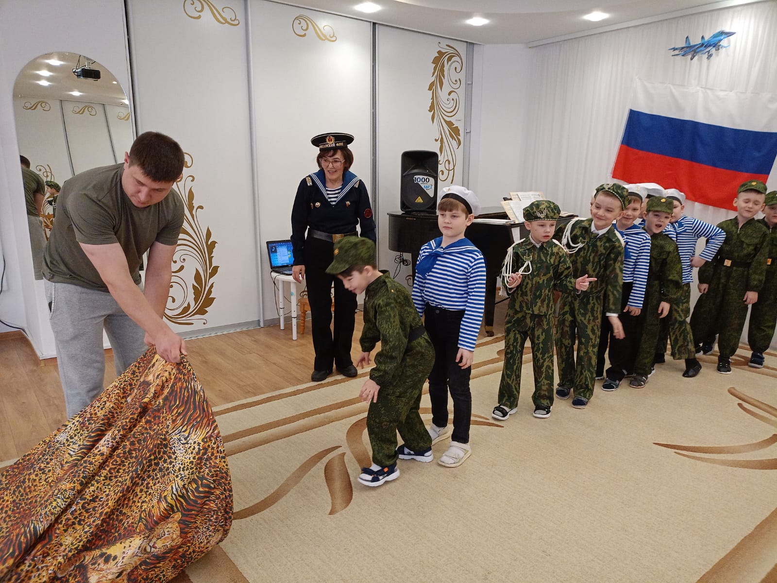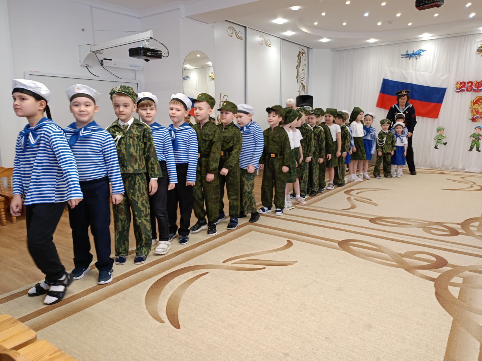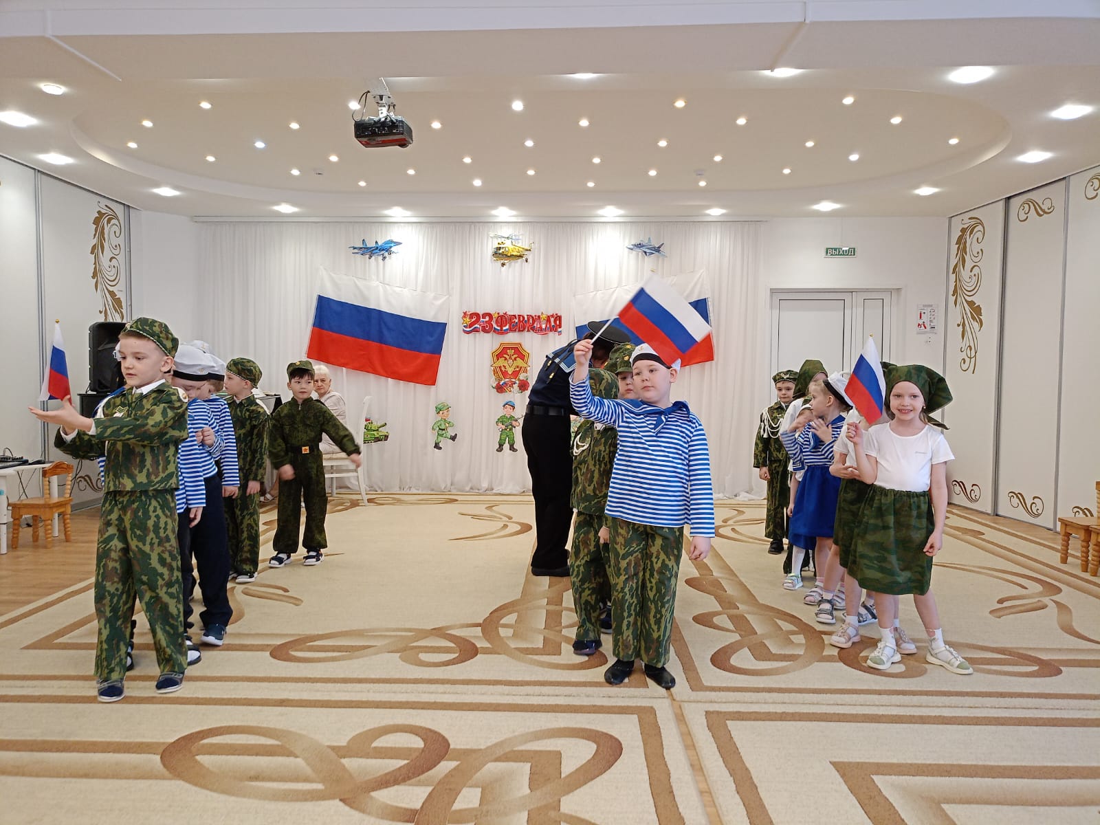 Сегодня в нашем детском саду в подготовительной группе «Сказка» прошёл праздничный утренник, посвященный Дню защитника Отечества. Дети с чувством гордости исполняли песни об армии, читали стихи. Бодро и энергично прошла армейская зарядка. В играх соревновательного характера ребята ловко справлялись с заданиями: старались метко попасть «снарядами» в цель, пробирались в «траншеях», отрядами следовали за своими командирами в «Военной игре». Присоединились к играм и папы с дедушками, проявив свою энергию и быстроту, а дети дружно за них «болели», а затем спели для них песню «Поздравляем пап!» Мальчики тоже не остались без поздравлений. Девочки приготовили для них стихи и пригласили на игру. Множество положительных эмоций, заряд бодрости и энергии получили дети в ходе праздника. А самое важное, что благодаря патриотическим праздникам, ребята учатся ценить и любить свою Родину.