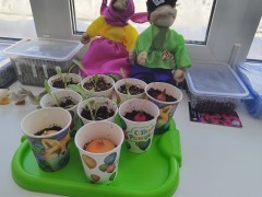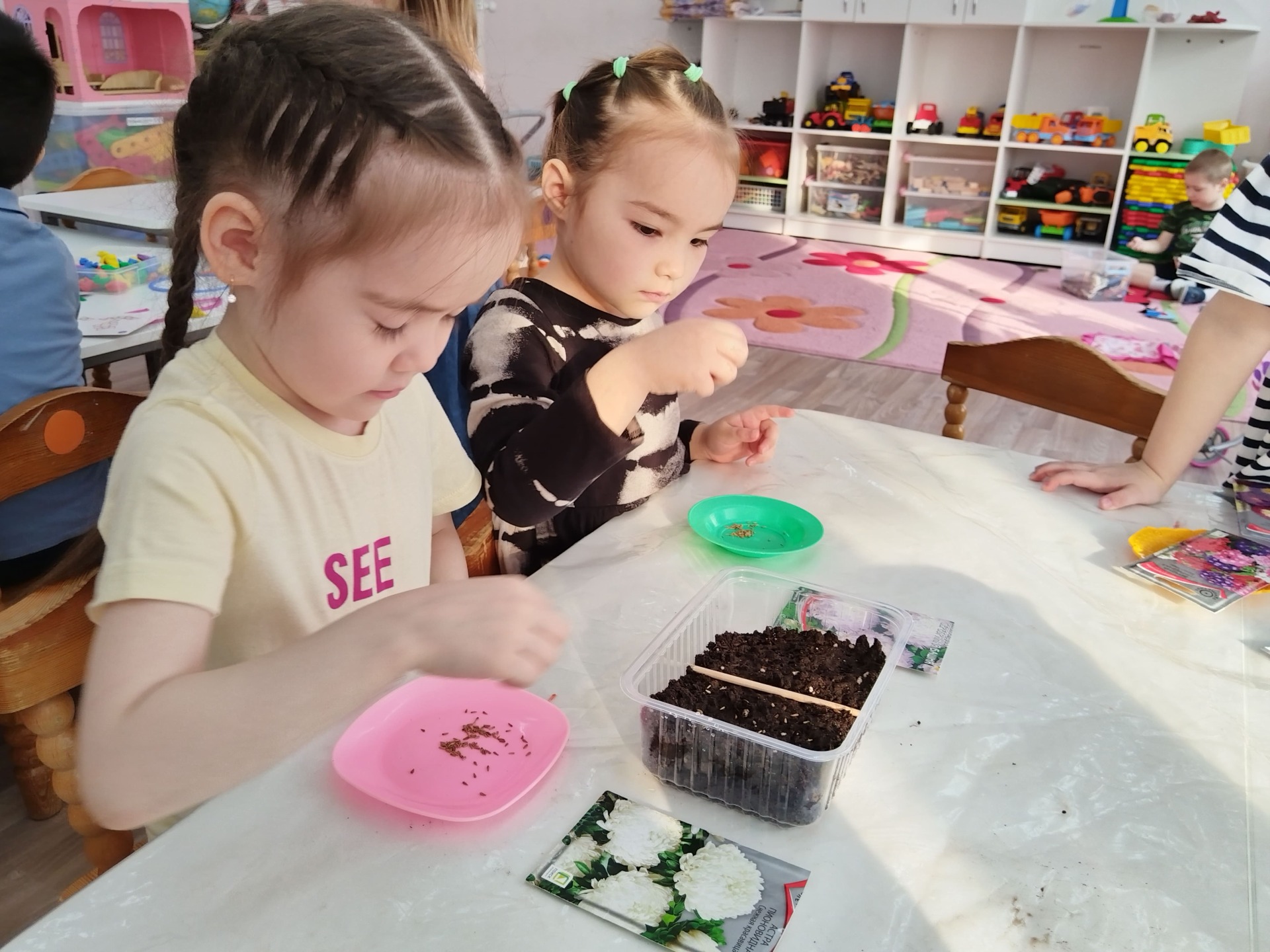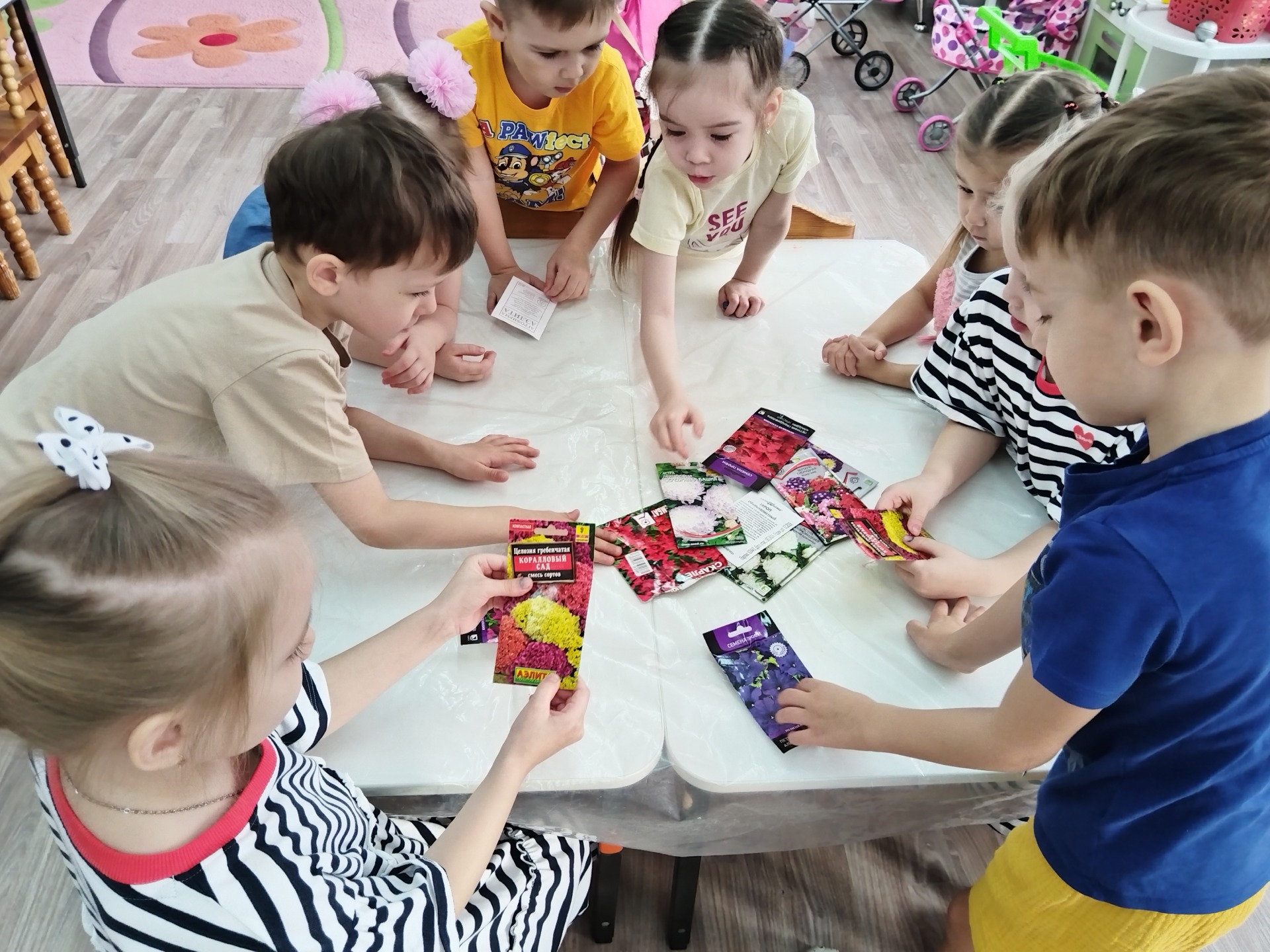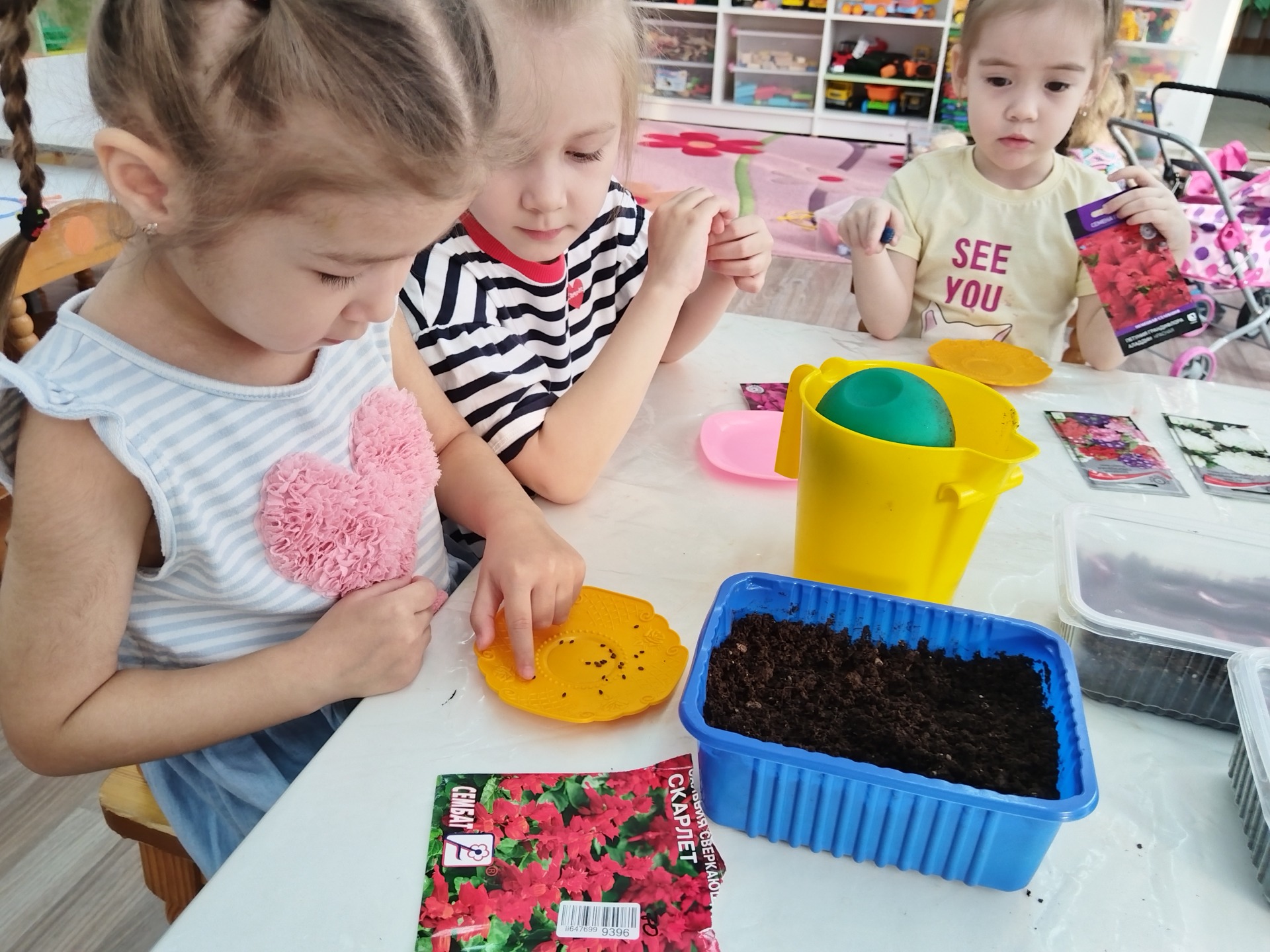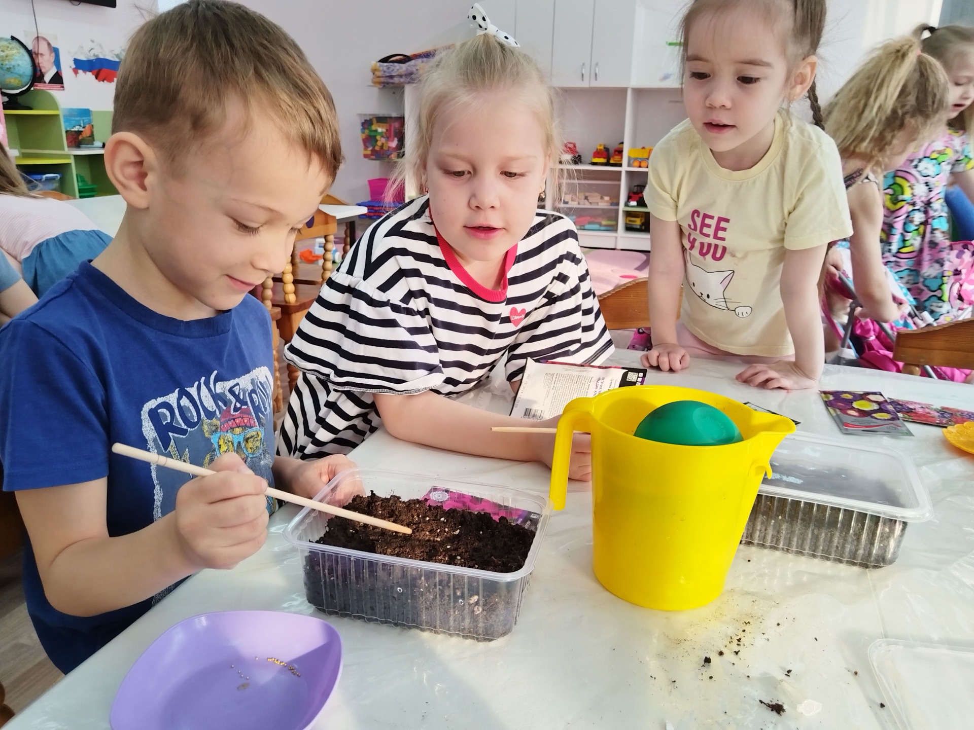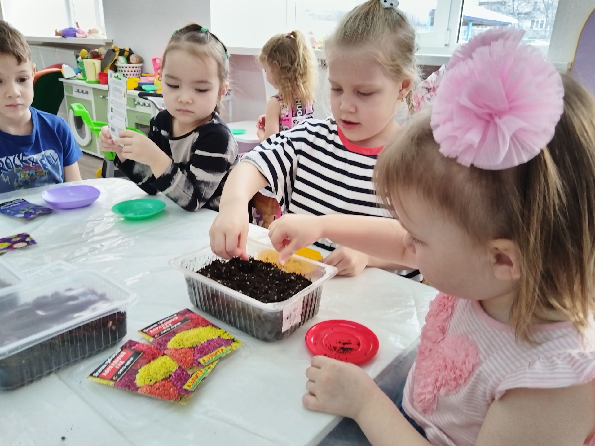 «Цветущий сад» - это кратковременный, но ежегодный, яркий проект, в котором мы принимаем большое участие. Дети самостоятельно выбирают из изобилия семян цветов те, что захотели посеять. Астры, петунии, сальвия, целлозия – это те растения, которые сейчас благоприятно начнут расти, и дети будут ухаживать и наблюдать за их ростом. У нас есть первые всходы и рассада многолетнего цветка – Гайлардия. Посадили лук, зелень и каждый день, с большим интересом, дети ждут результатов.