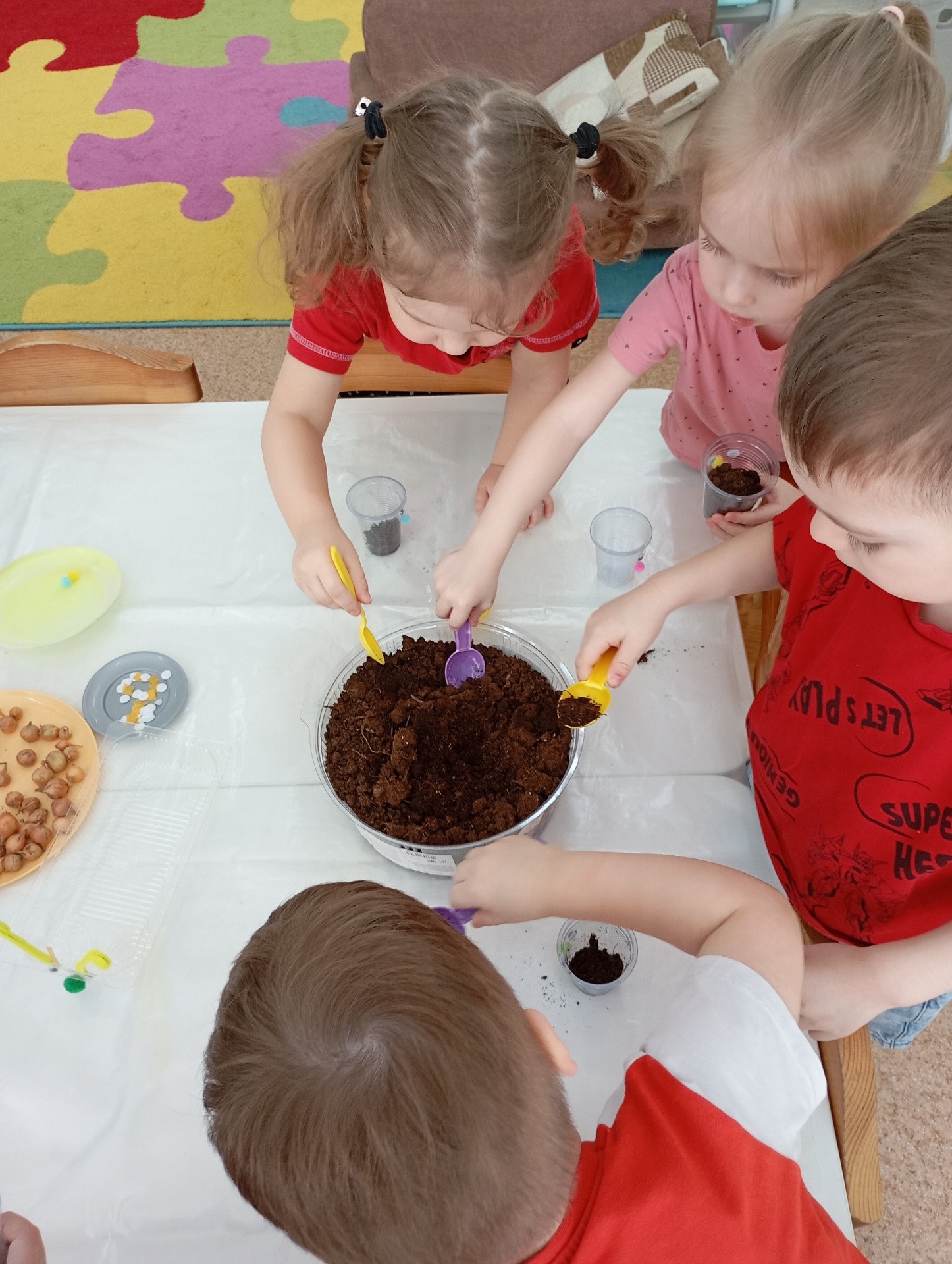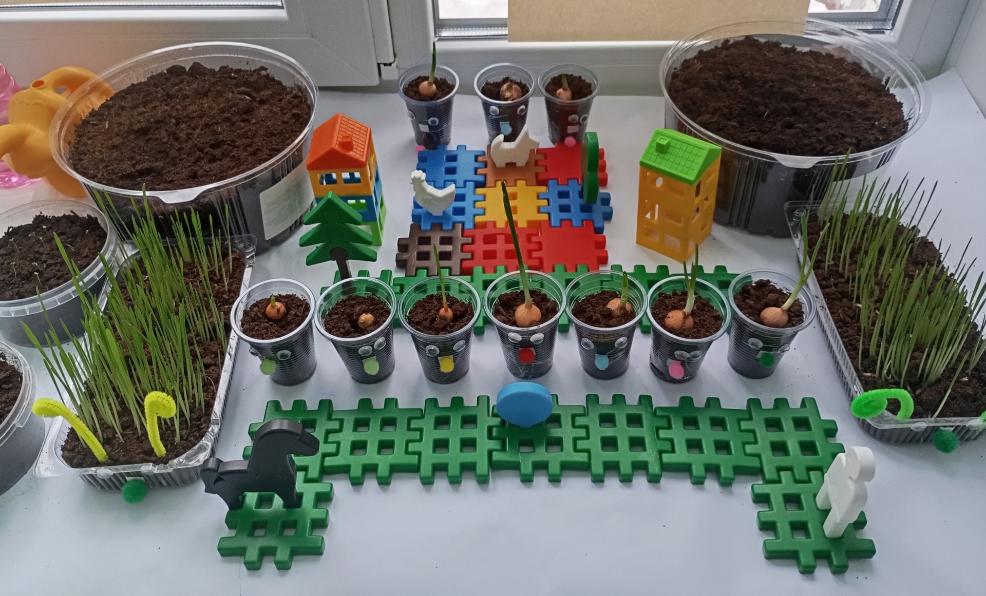 Для нашего огорода на окне мы выбрали несколько видов растений: лук, зелень и цветы – петунии. На занятии мы вместе с детками посадили семена в специальные контейнеры с грунтом. Дети узнали, как правильно ухаживать за семенами: поливать, ставить на свет и следить за температурой. Мы ежедневно проверяли наши посевы, учились определять, когда нужно поливать растения, а когда – оставить их в покое.