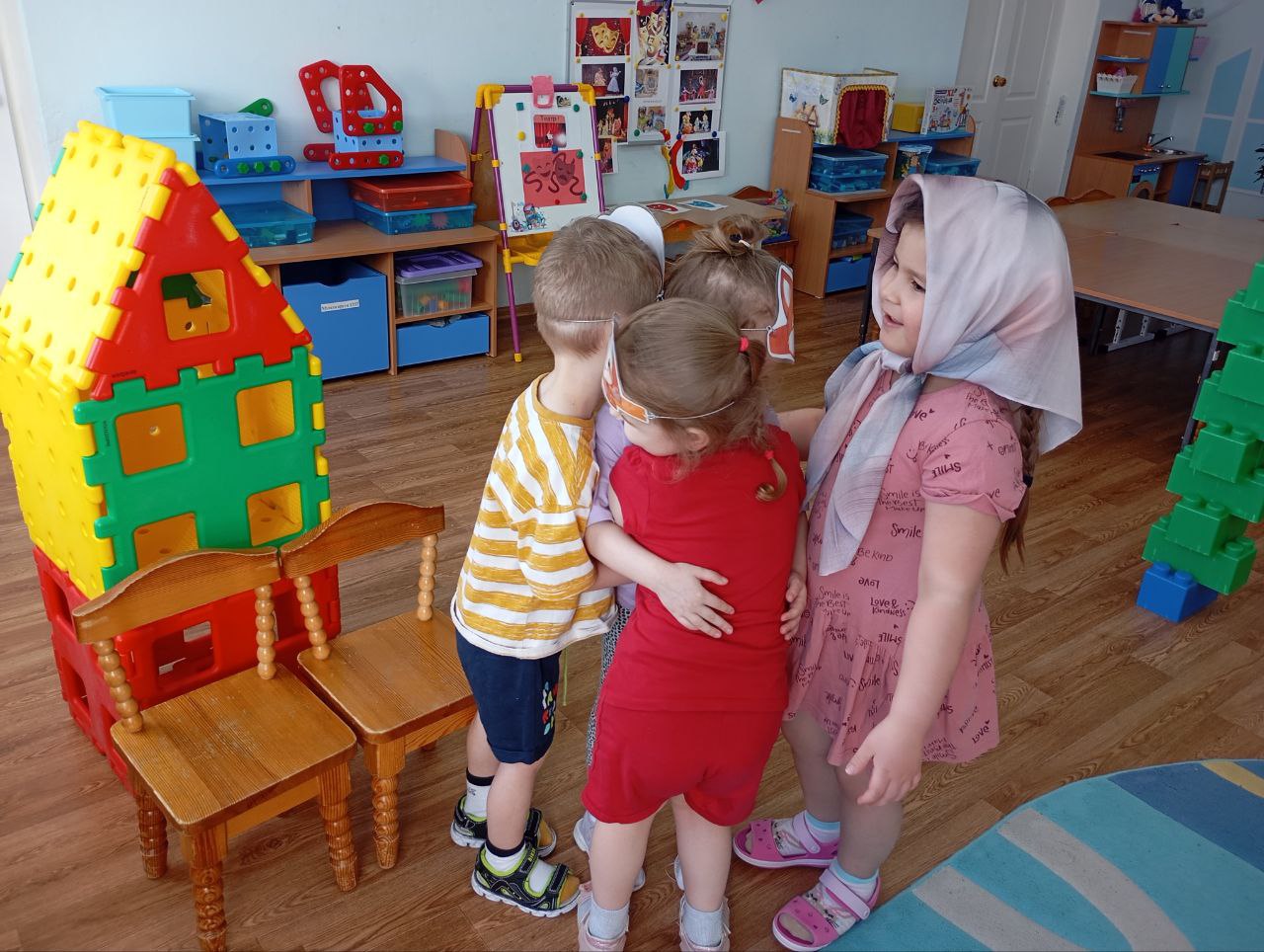 У нас прошла театральная неделя. Дети познакомились с разными видами театров: пальчиковый, кукольный, настольный. Занимались изобразительным искусством, рисовали театральные маски, сцену. Подготовили и показали для малышей сказку,, Снегурушка и лиса ".