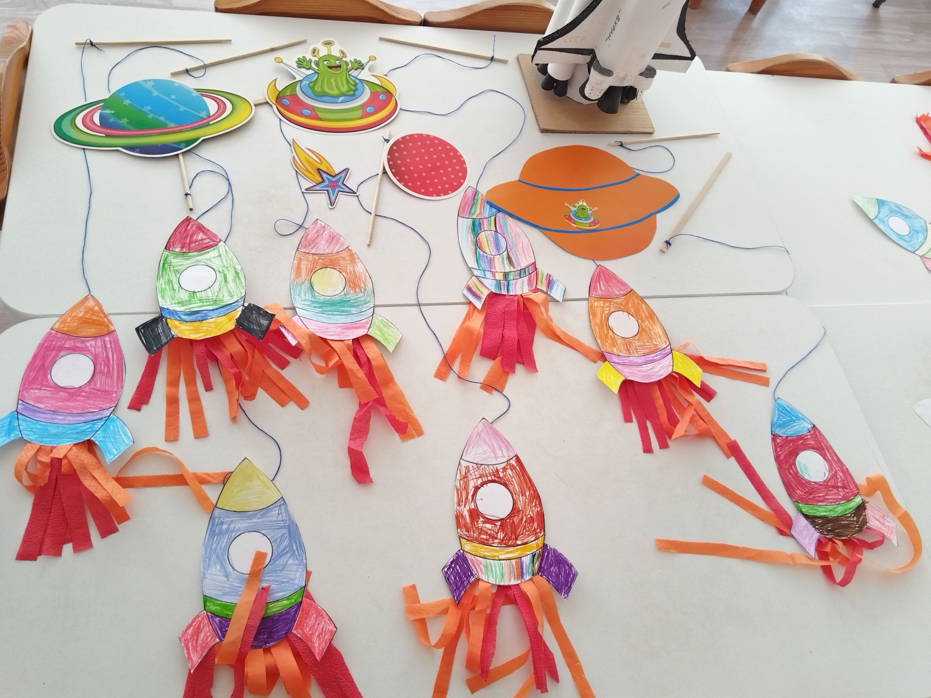 Сегодня мы с ребятами совершили полет на планету Марс, главной задачей сегодняшнего события стало создание ракеты, ребята не только активно предлагали свои варианты решения этой проблемы, но и своими руками создавали ракету и пробовали запускать ее. Много нового сегодня удалось узнать, а впереди еще так много интересного.