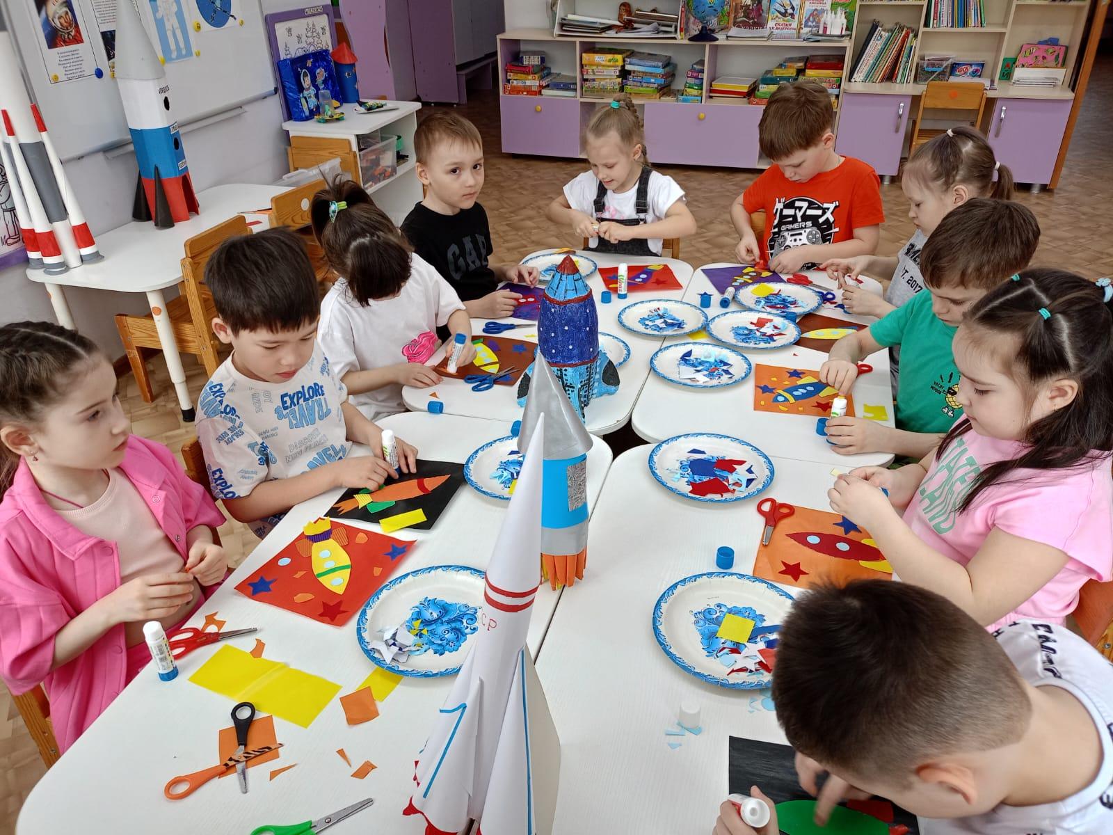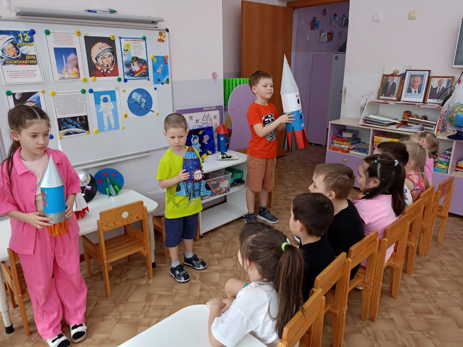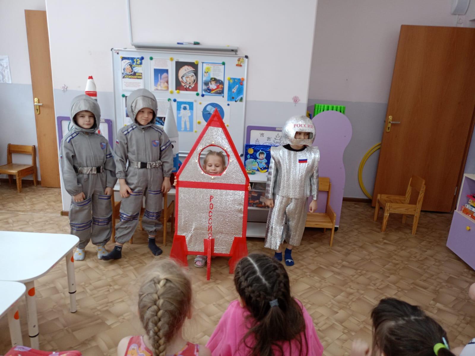 Космос невероятный мир, который манит своими тайнами и загадками. 12 апреля наша страна отмечает День Космонавтики. Это особенный и триумфальный праздник! Поэтому всю тематическую неделю «Звезды и ракеты» мы отмечали такое замечательное событие. С понедельника отправились в космическое путешествие! Каждое утро недели начиналось с космической гимнастики - тренировки, которая необходима для будущих космонавтов. Каждый день дети узнавали что – то новое о космосе. На тематических занятиях «Что такое космос», «Первый человек в космосе», «Планеты солнечной системы», «Земля наш дом» дети знакомились с историей возникновения праздника, слушали рассказы о Юрии Гагарине и других героях, которые покорили космос. В ходе путешествия дети встречались с космонавтами, примеряли на себя форму космонавтов, уточняли значение разных космических слов «скафандр», «спутник», «созвездие», «метеорит», «орбита», «телескоп». Игры – забавы с пальчиками «По порядку все планеты» и стихотворения «Планеты» помогли детям запомнить расположение планет по порядку в солнечной системе и их названия. Дети с большим интересом слушали рассказы В. Бороздина «Первый в космосе», Ю. Нагибина «Рассказы о Юрии Гагарине» о первых людях, отправившихся покорять космическое пространство Во время занятия ребята не только получали новую информацию, но и с большим удовольствием собирали ракету из геометрических фигур и разных конструкторов, организовали строительную игру «Космодром». В творческой деятельности дети проявили свою фантазию, рисовали планеты, отравляли в космос свои ракеты.