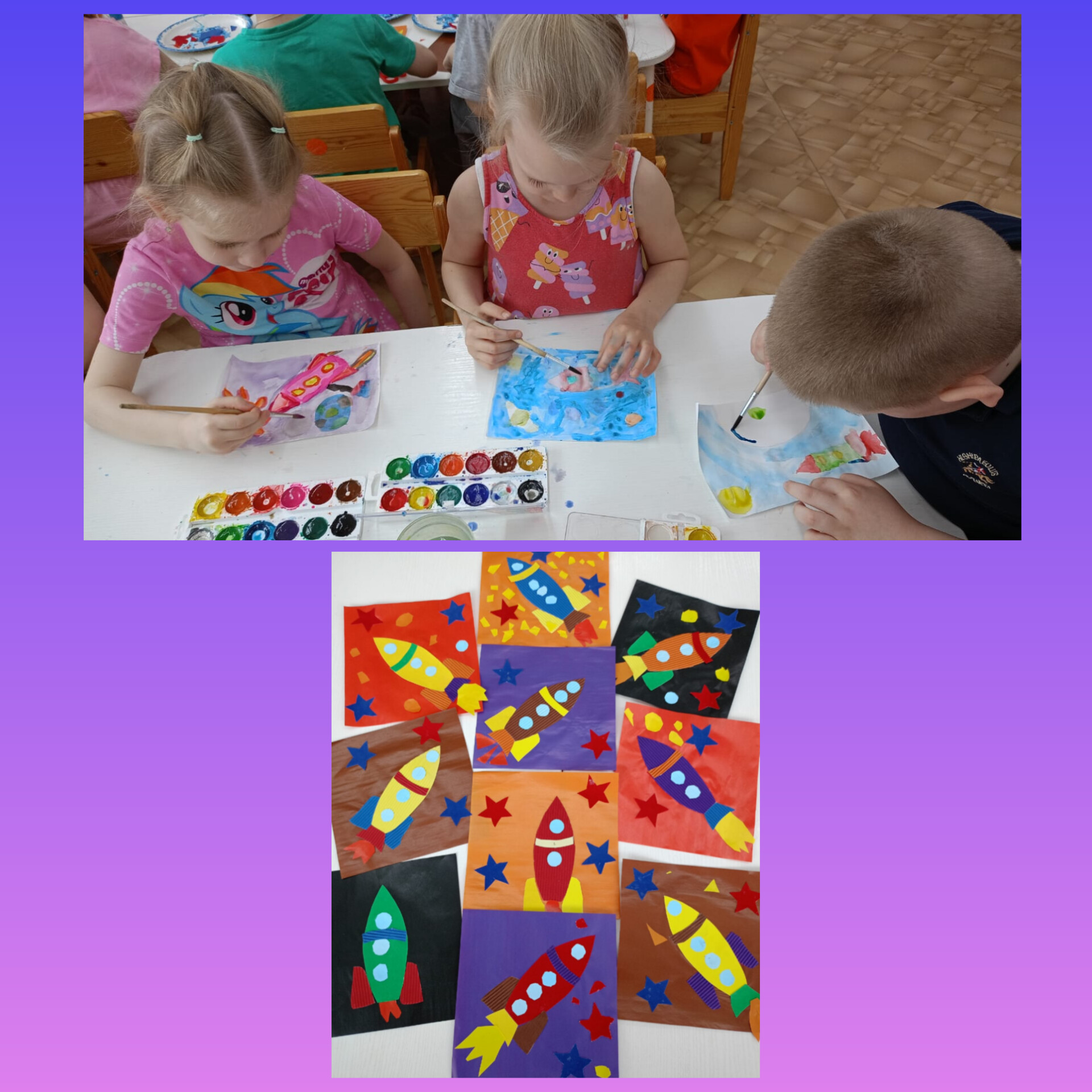 Итоговым мероприятием нашей группы «Сказка» стала выставка поделок сделанных детьми совместно с родителями под названием «Удивительный космос». Чего среди них только нет: и ракеты, и планеты Солнечной системы. Работы получились яркие, оригинальные и красочные и дети с удовольствием презентовали свои работы. Дети получили много знаний и положительных эмоций. Космическая неделя удалась на славу!