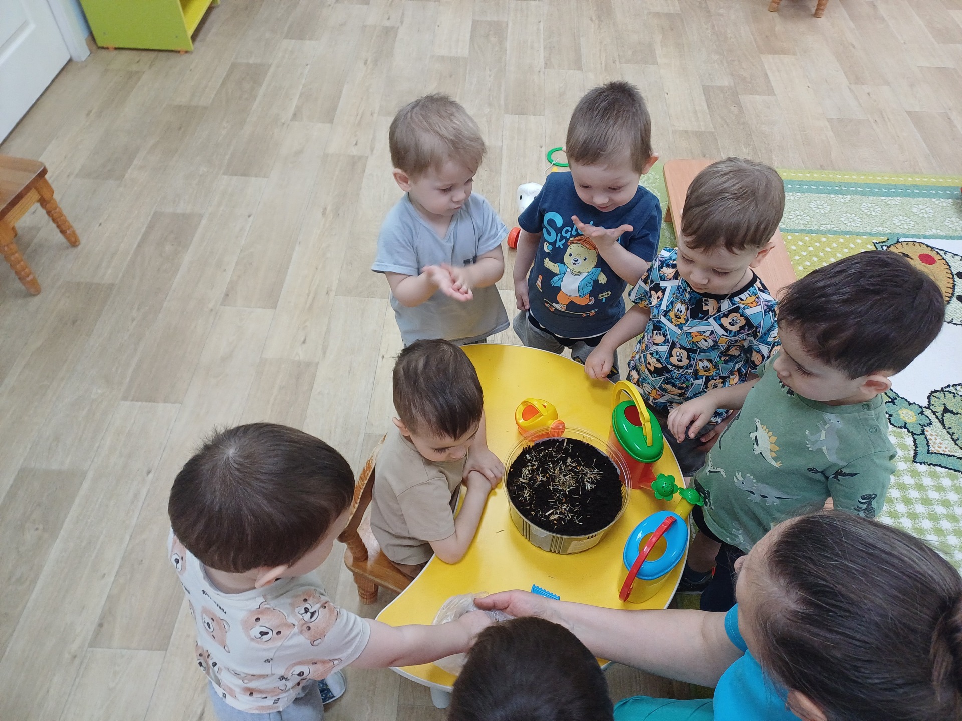 Дети с большим удовольствием сажают семена цветов в землю, и аккуратно поливают её. Совсем скоро наша цветочная рассада перекочует на клумбы нашего участка, и разноцветные шапки цветов все лето будут радовать нас и всех окружающих своей красотой и благоуханием.