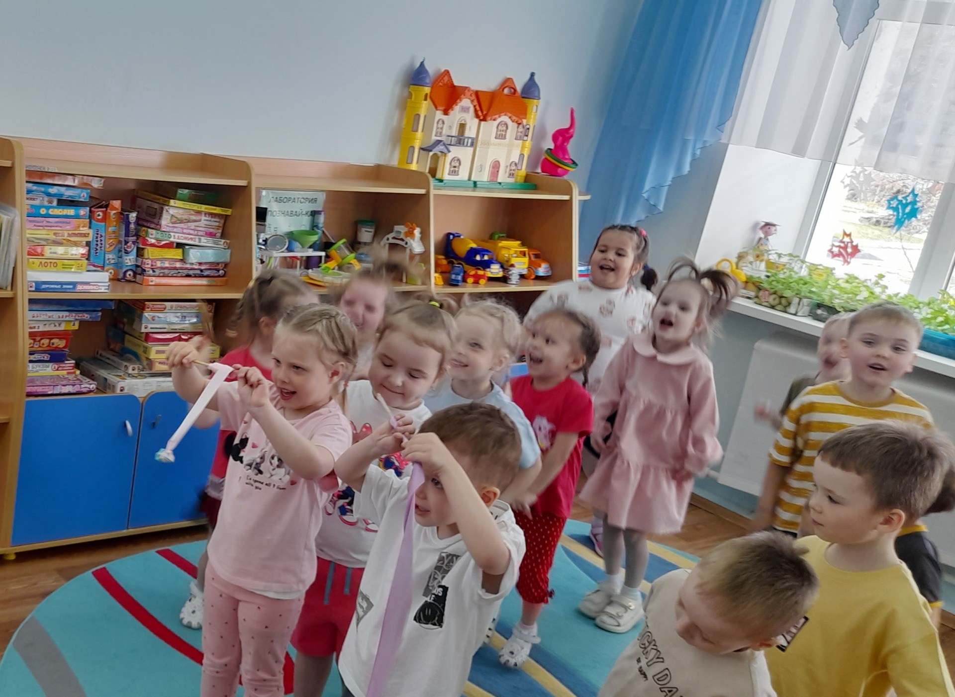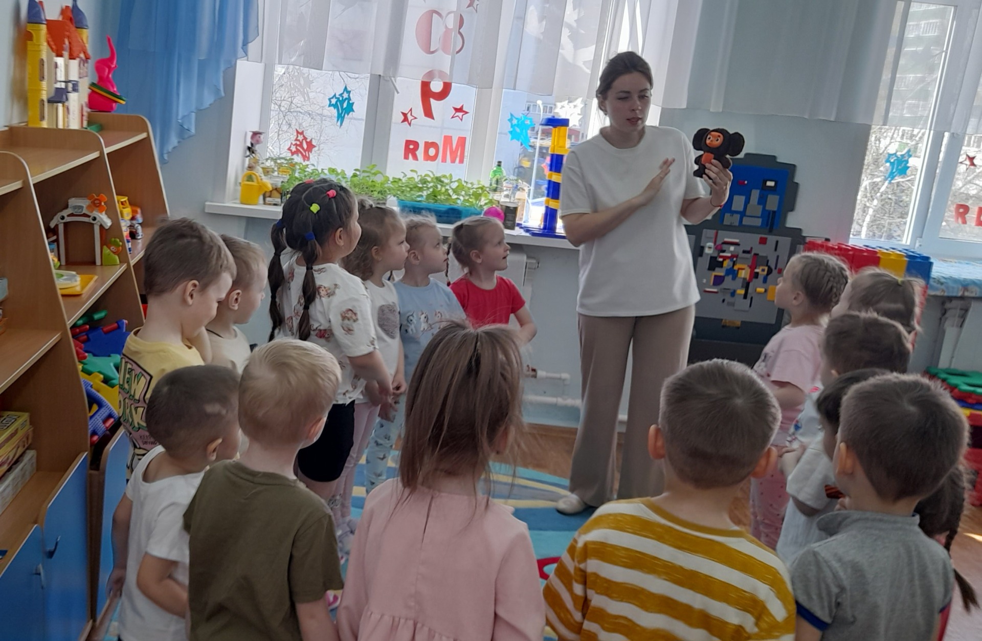 Затем с Чебурашкой играли в игру ,, Палочка - моталочка с игрушкой ". Было весело!