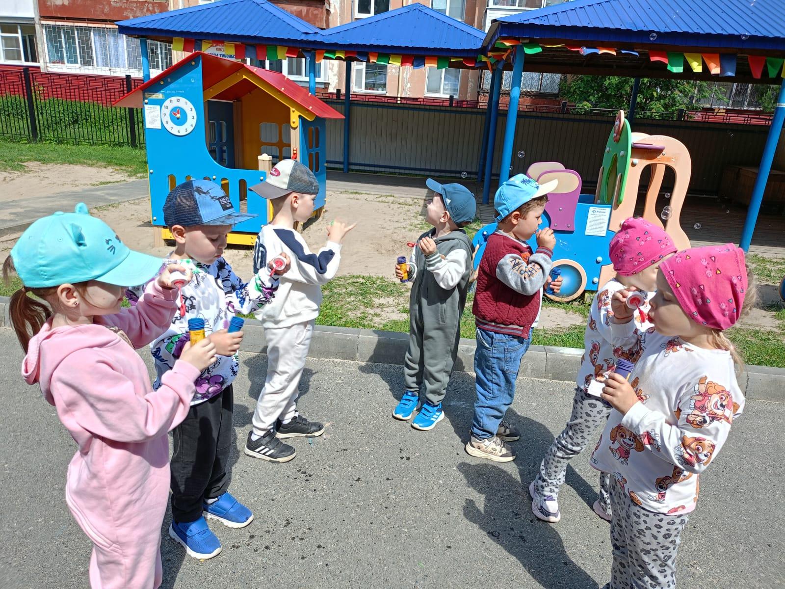 Наступило самое прекрасное, солнечное, замечательное время года — лето. Лето — удивительная и благодатная пора, когда детям можно вдоволь гулять, бегать, прыгать. А значит наступила пора игр, смеха и радости. Интересно и насыщенно прошла первая неделя лета в группе «Василёк». Именно летом дети много времени проводят на свежем воздухе. Природа предоставляет детям большие возможности в ознакомлении с окружающей их природой, в развитии познавательных способностей. Дети на участке находили насекомых, рассматривали их и узнали интересные факты о насекомых. С удовольствием наслаждались солнечными лучами, играли в любимые игры с водой: ловили рыбок, пускали бумажные кораблики, проводили эксперименты с предметами, играли в подвижные игры «Раз, два, три к дереву беги», «Найди дерево». А ещё к нам приходила Принцесса пузырей! Он позабавила детей мыльными пузырями. Дети были в восторге! Каждый из них имел возможность надуть свой пузырь и посоревноваться в игре «Чей пузырь больше». И, конечно, как же без музыки!? Дети с восторгом «собрали» оркестр, веселились в музыкальном уголке, наполняя атмосферу смехом и радостью. Всю палитру ярких, летних красок, дети выражали в своих творческих работах: с помощью рисования «Я рисую лето», в лепке из пластилина в роще, в рисовании мелками на асфальте. Яркие рисунки украсили группу засверкали на летней аллее, добавив всем солнечного настроения! Ну и, конечно, не забыли о правилах безопасности в летнее время года, поучаствовав в онлайн – олимпиаде «Летняя безопасность: знания и навыки» и получив за участие Сертификаты. Так незаметно и быстро пролетела первая неделя долгожданного лета —яркая, весёлая, познавательная и творческая!