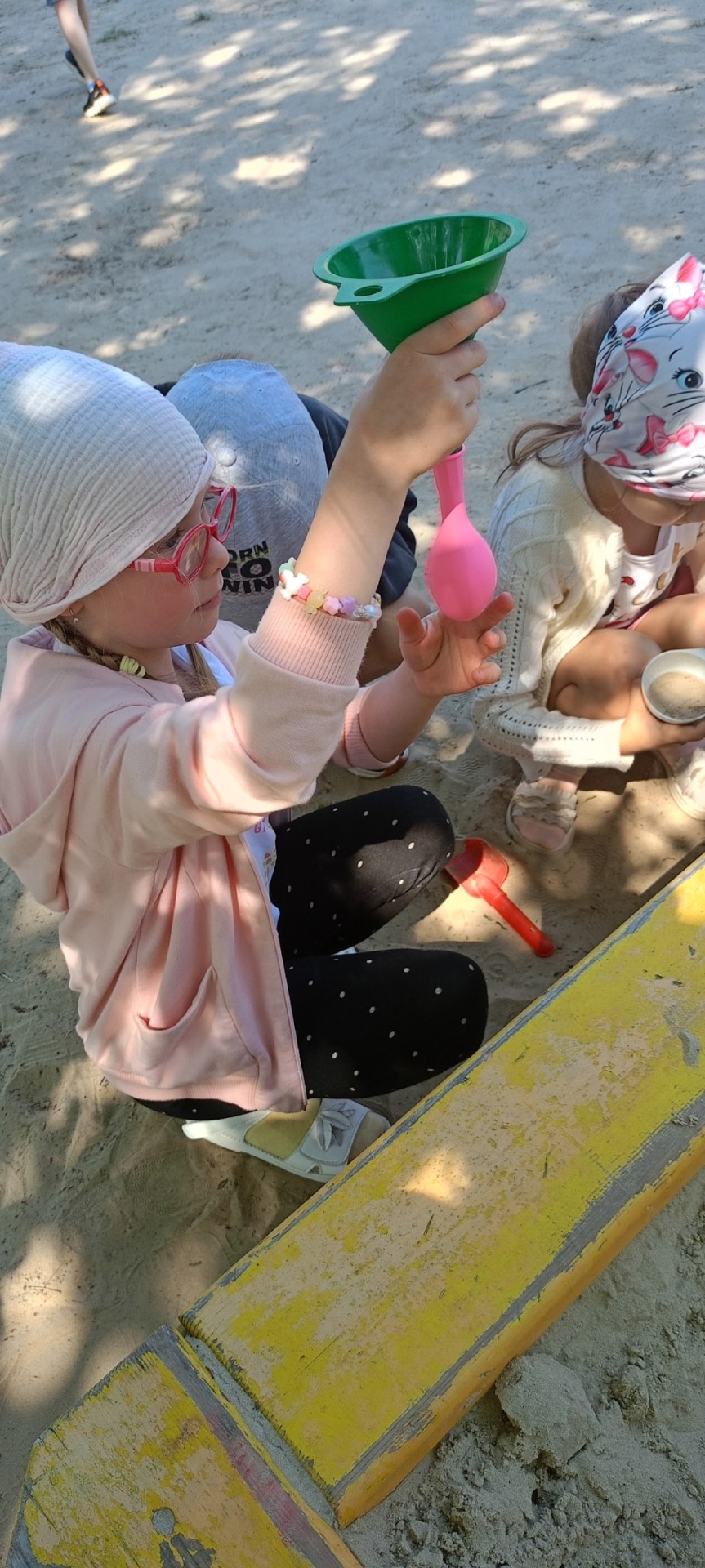 Четвёртая команда проявила фантазию, создавая игрушку-антистресс из песка и воздушного шарика. Этот вид деятельности способствовал развитию мелкой моторики и воображения. Мягкие и приятные на ощупь шарики теперь будут напоминать о сегодняшнем дне.Дополнительно была организована арт-сессия с использованием воды и пульверизаторов, что позволило детям проявить себя в области изобразительного искусства. Данный метод рисования, известный как аквапринт, позволяет создавать уникальные и эфемерные изображения, которые под воздействием солнечных лучей трансформируются, открывая новые визуальные возможности.
