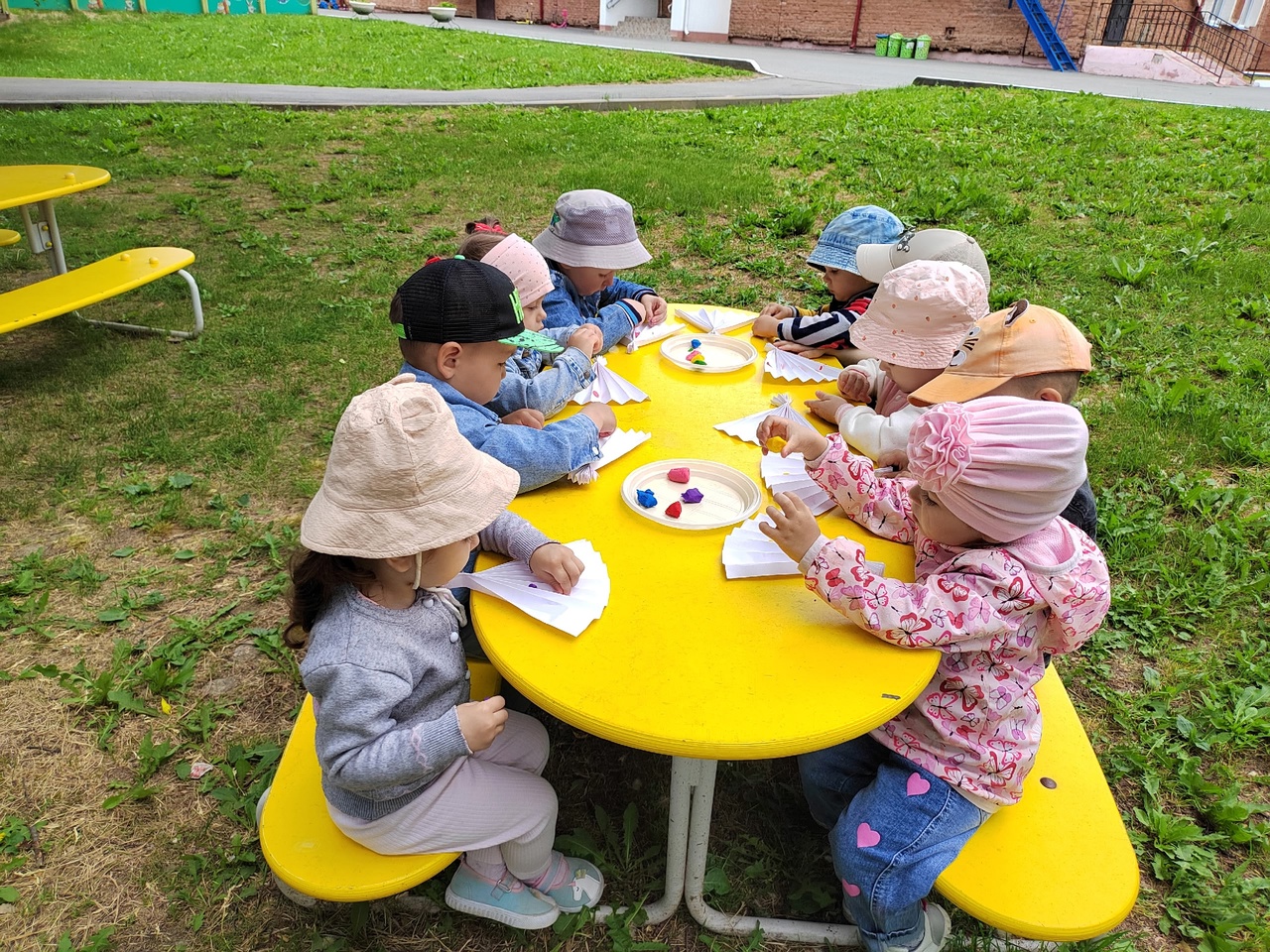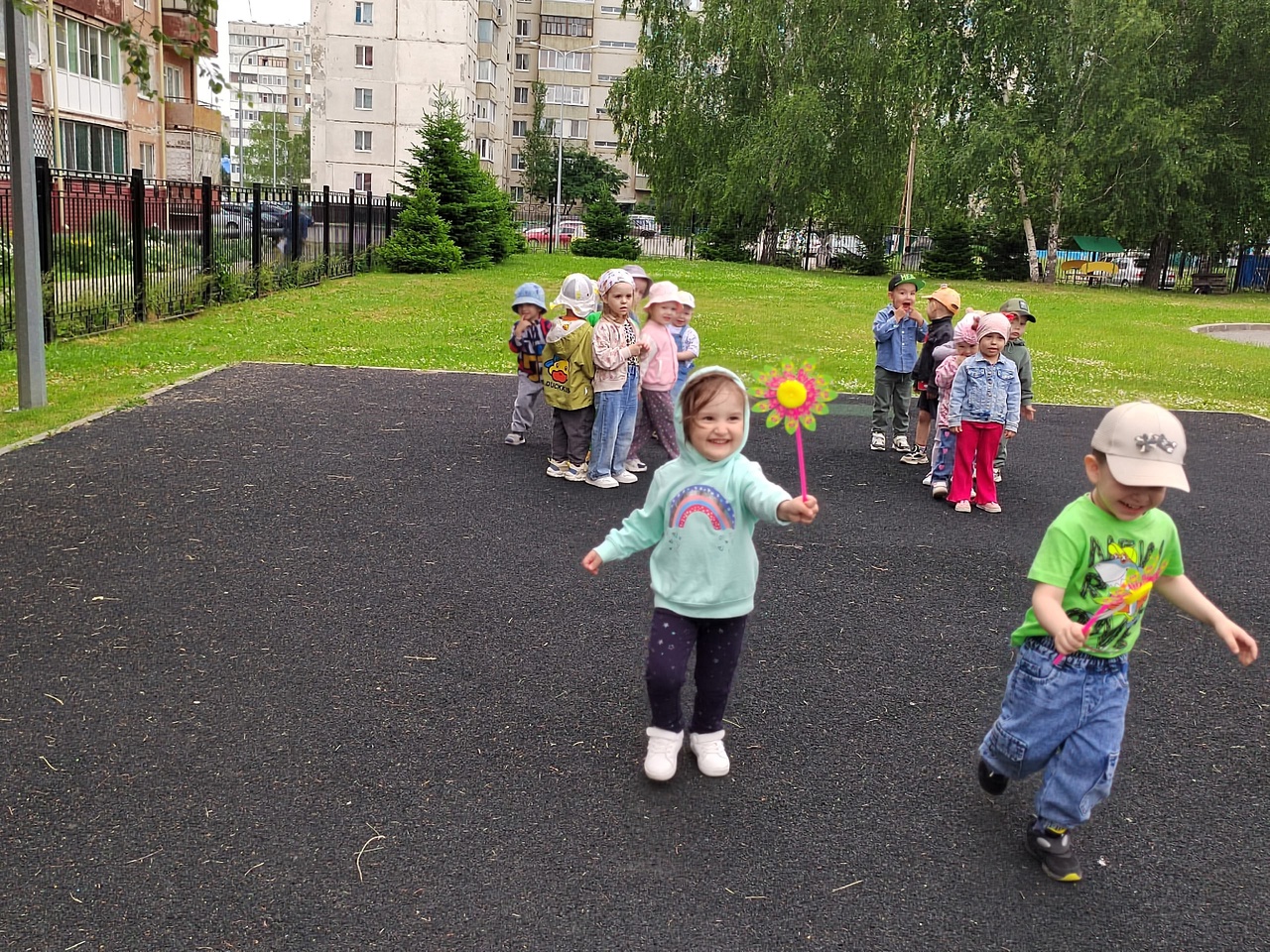 В младшей группе "Кораблик" прошёл тематический день - День ветра. Дети познакомились с природным явлением через игры, упражнения и творчество. Ребята узнали, что такое ветер, как он ощущается, каким бывает. На прогулке наблюдали за тем, как ветер качает ветви, листья у деревьев. Выполняли физминутку: "Дует ветер". Играли в подвижные игры: "Пробеги и передай ветряную вертушку", "Попади в кольцеброс", "Птички в гнёздышках". Познакомились с веером, узнали, что с помощью веера можно создать ветерок и даже удалось украсить веер с помощью пластилина.