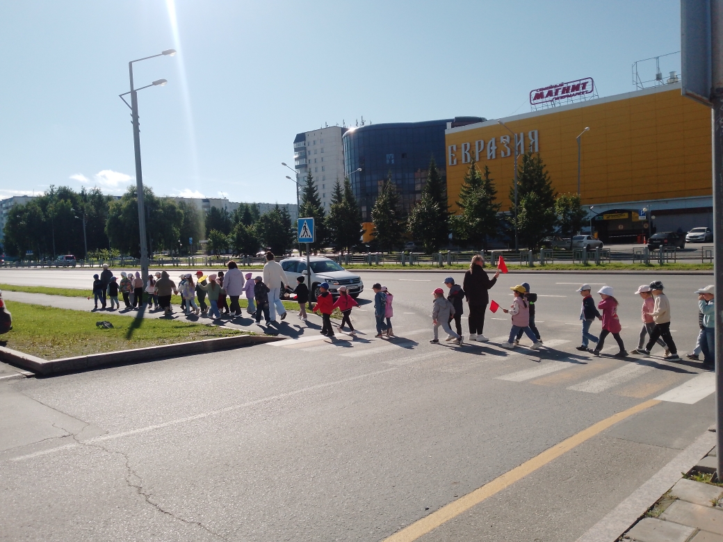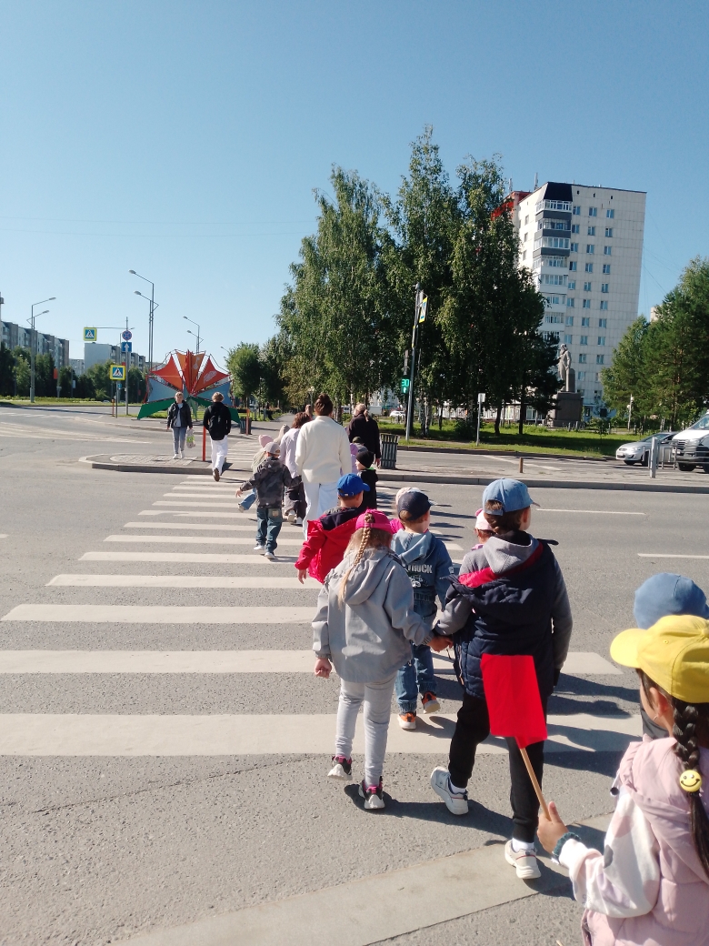 Кроме того, организованные прогулки по нашему городу способствуют формированию навыков безопасного поведения на улице, в том числе, умения правильно переходить проезжую часть. Вот и сегодня, педагоги с детьми в процессе пешей прогулки напоминали детям о важности и необходимости соблюдения правил дорожного движения. Ребята чётко знают о том, что человек, оказавшись на улице, становится равноправным участником дорожного движения и соблюдение установленных правил становится для него неотъемлемой частью передвижения.