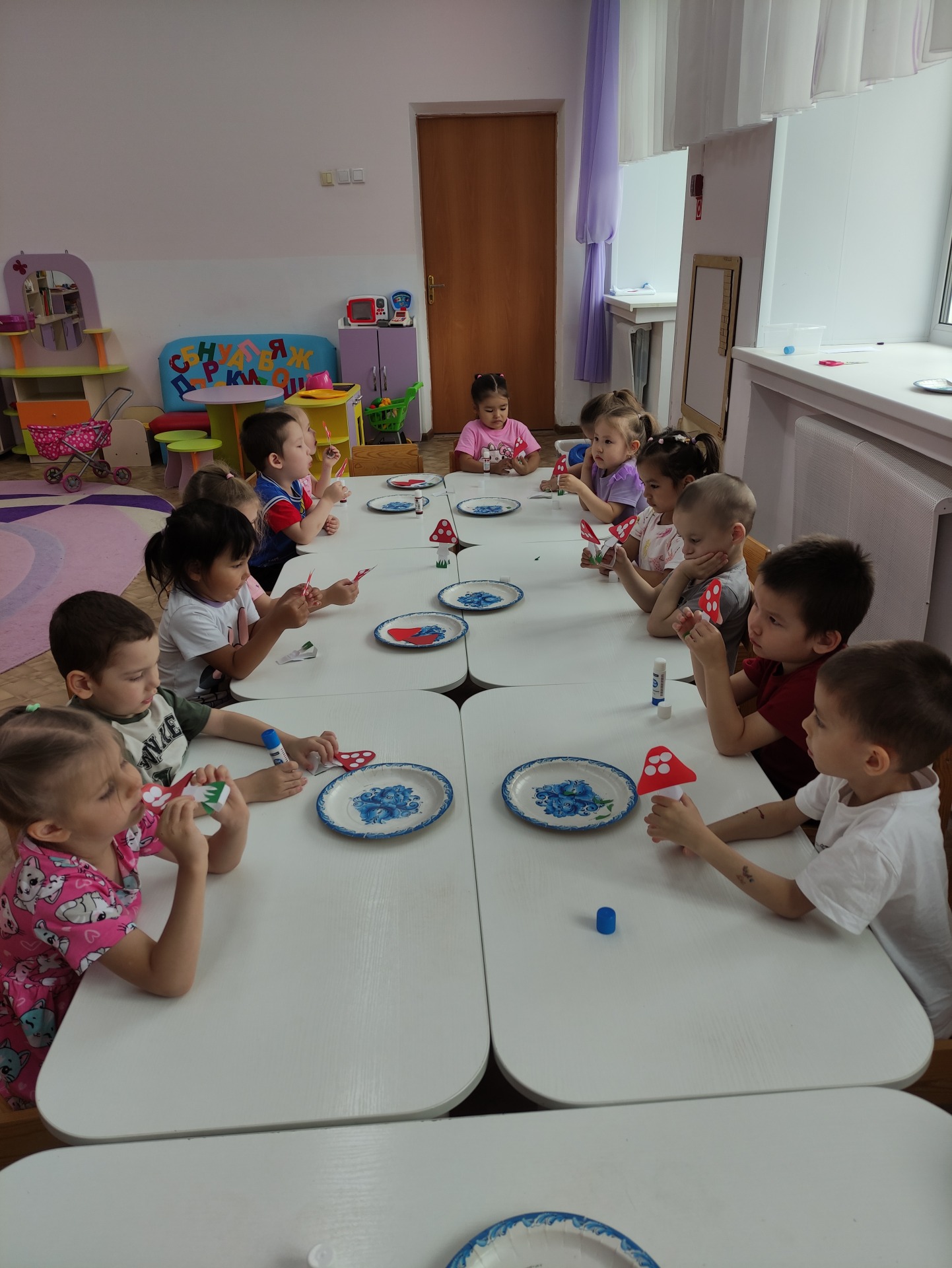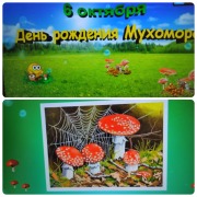 Ребята средней группы «Сказка» весело отметили День рождения мухомора, который отмечается 6 октября. Да, да. Оказывается, и у этого опасного гриба, есть День рождения. Но кто же захочет дружить с мухомором, да ещё придёт к нему на День рождения? Дети легко решили эту проблему и изготовили для именинника аппликативным способом - друзей, маленьких, забавных мухоморчиков. Ребята с интересом участвовали в беседе о мухоморе: «Осторожно, мухомор», узнали много интересных фактов и, конечно же, о безопасном отношении к грибам! Сначала мы выяснили, что название этот гриб получил из-за того, что его яд смертелен даже для мух, обсудили, какие грибы можно собирать, а какие — нет, чтобы всегда оставаться в безопасности. Далее дети познакомились с видеороликом «День рождения мухомора – 6 октября», созданном на основе веселой детской песенки «Мухоморы». Для того чтобы сделать праздник ещё более увлекательным, мы провели веселые игры! " Ребята с интересом играли с виновником торжества в игры: «Большой-маленький», «Один-много», «Найди мухомор», «Раз, два, три – гриб возьми!» Дети соревновались в ловкости, проявляли творчество и получили множество положительных эмоций! Попытались даже составить общими усилиями небольшой описательный рассказ о мухоморе. Ну и как же в день рождения без Каравая?! Особый восторг у ребят вызвала подвижная игра "Дождик и озорные мухоморчики". Прекрасное настроение, яркие атрибуты и хороший повод сделали осенний день тёплым, красочным и очень познавательным.