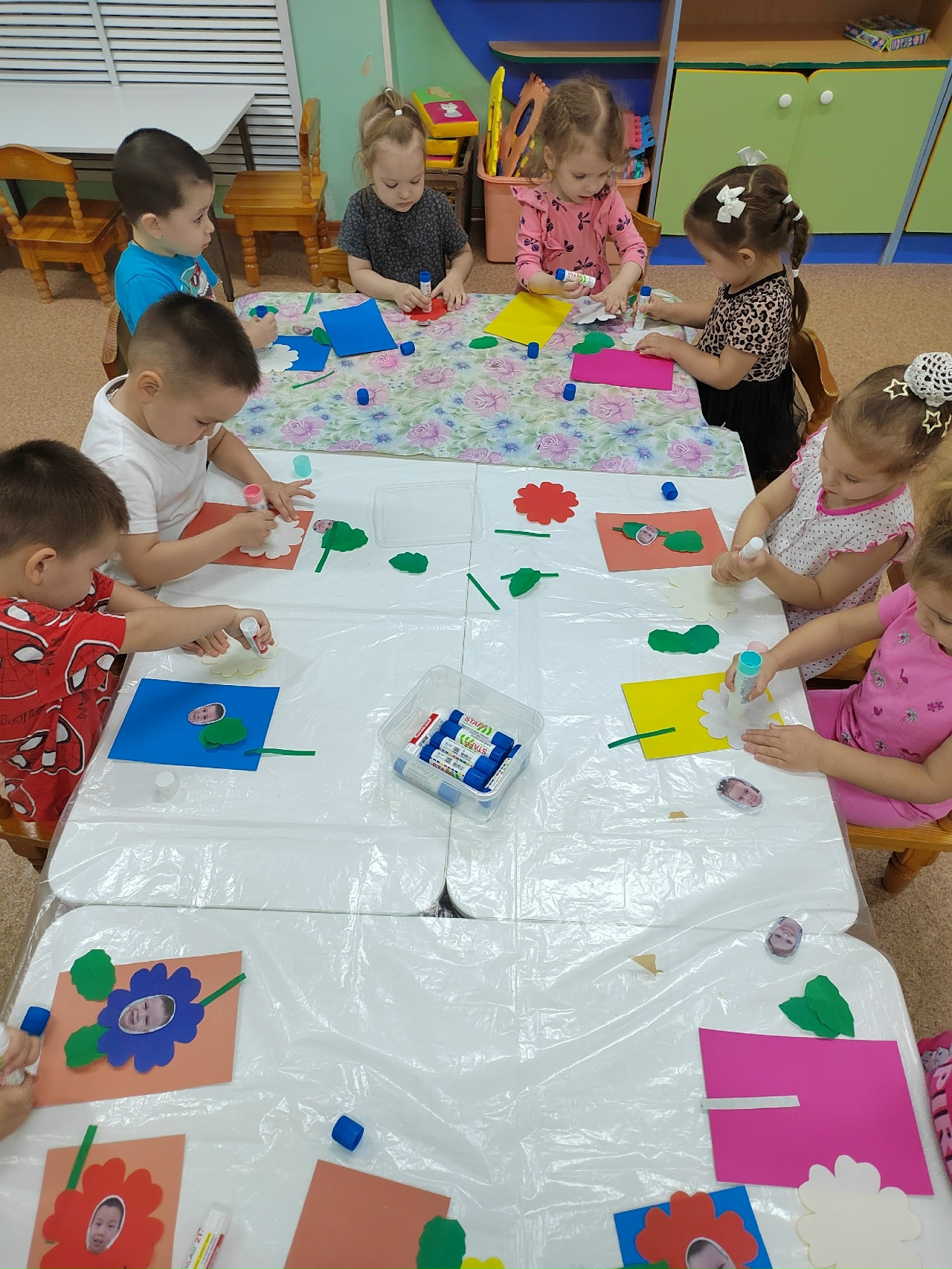 Ребята совместно сделали поздравительный плакат с фотографиями мамы. Изготовили открытку для мам. Играли в игры: "Собери цветок для мамы", "Скажи комплимент".