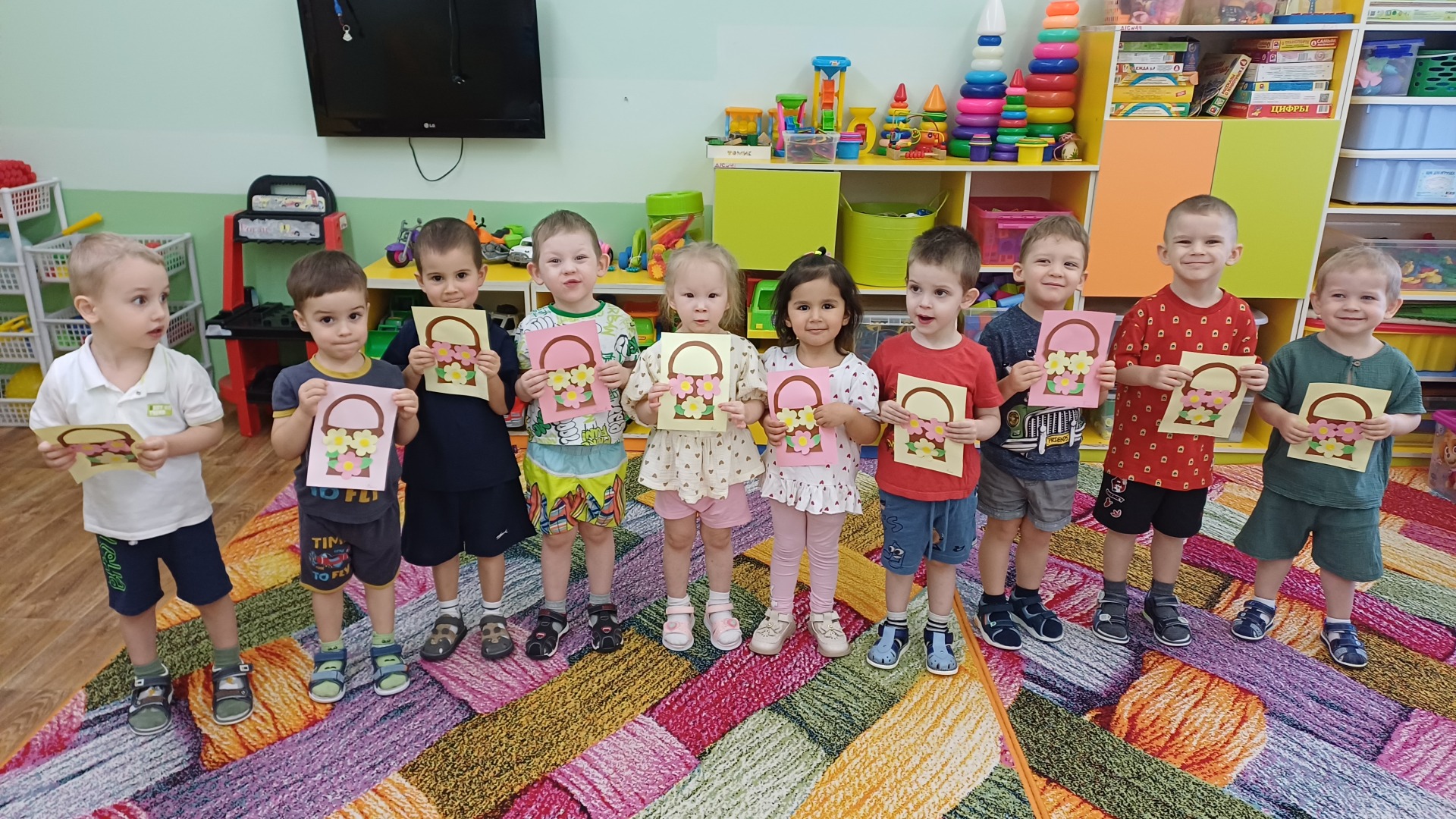 Дети изготовили открытки в виде аппликации «Букет для мамы».
