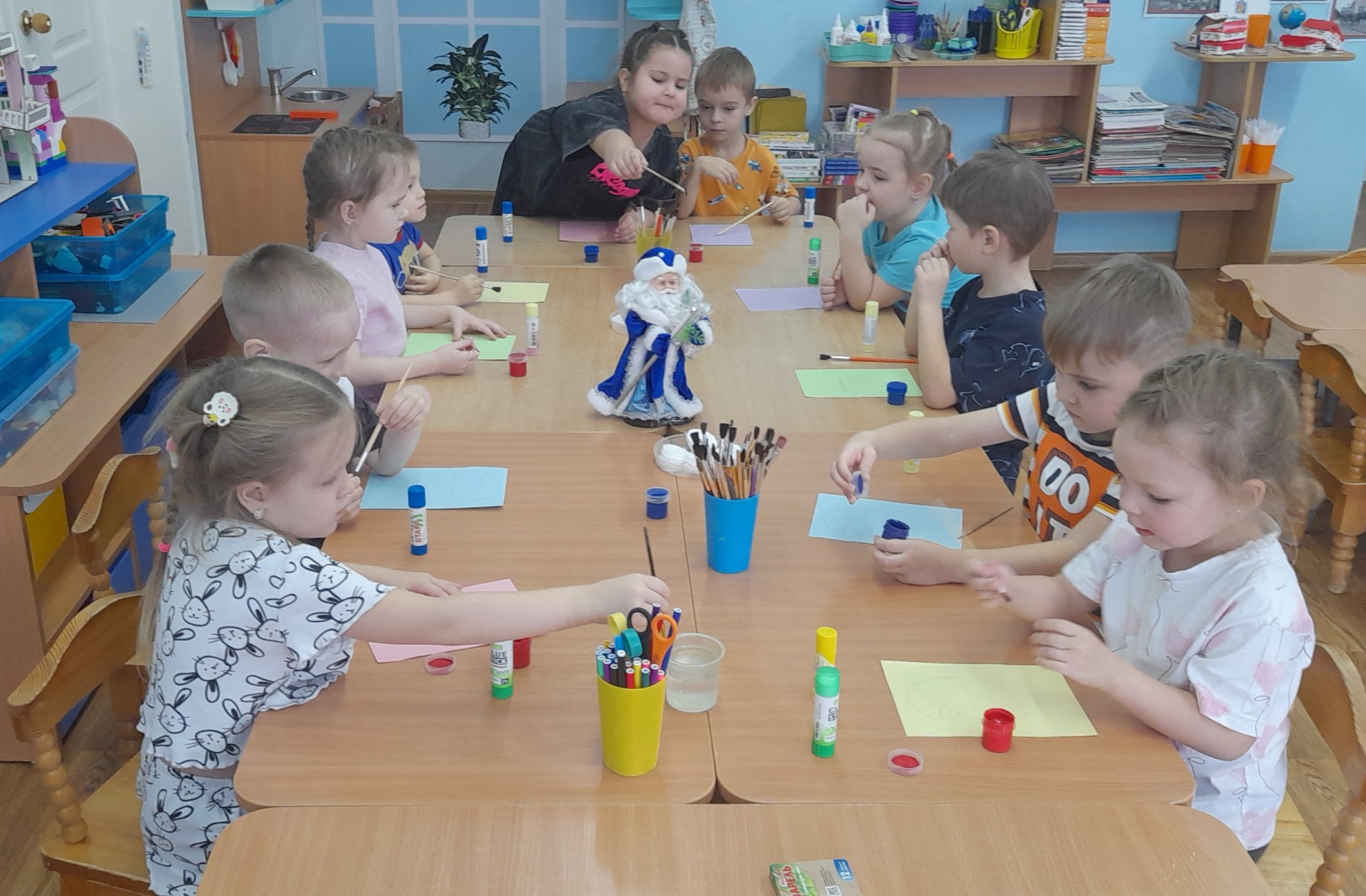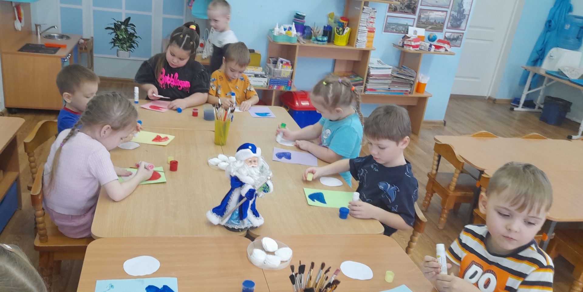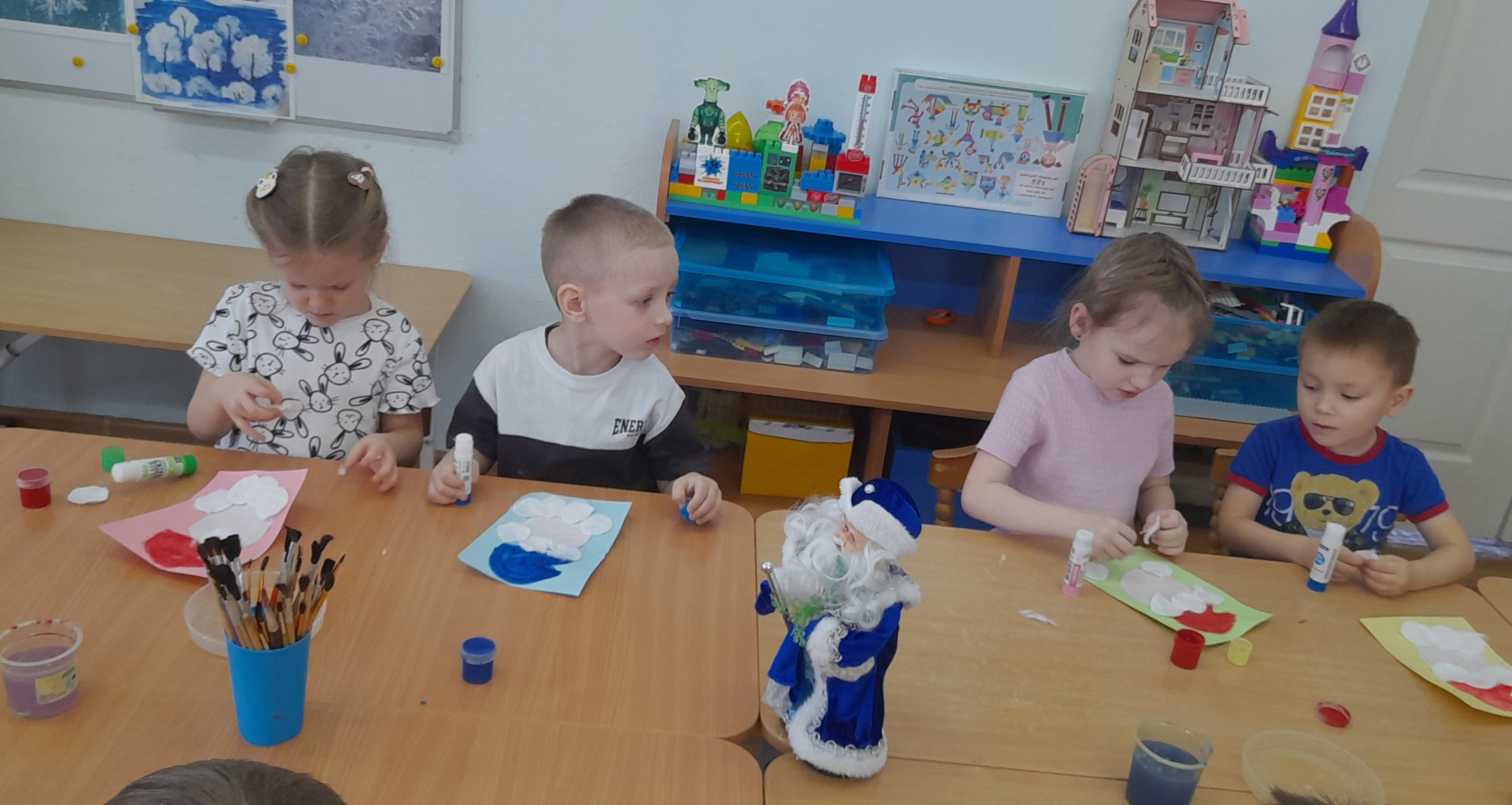 В преддверии самого волшебного праздника в творческой мастерской старшей группы ,,Василёк" царила атмосфера предвкушения чуда. Сегодня ребята взялись за создание портрета главного волшебника Нового года Деда Мороза, в смешной технике аппликации и рисования. Вооружились гуашью, кисточками, ватными дисками и клеем, юные художники принялись за работу. Каждый старался передать свой собственный образ доброго волшебника с белоснежной бородой. Созданные портреты показали ,, Деду Морозу", они станут прекрасным украшением нашей группы и будут напоминать о приближающемся празднике.