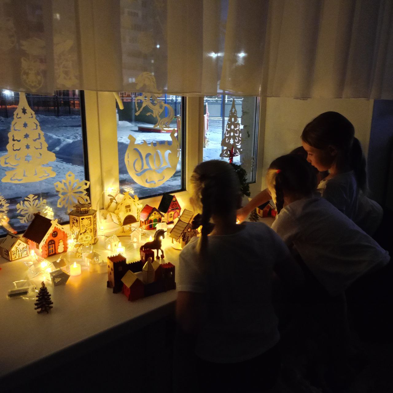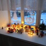 С приходом зимы, мы все - взрослые и дети ждем чудес, радуемся каждому снежному дню и готовимся к любимому празднику- Новый год! В группе «Аленький цветочек», всю неделю работала настоящая мастерская, родители и дети выбирали постройки, для создания городка в нашей группе. Мы с детьми обсуждали, раскрашивали, любовались и много фантазировали. На окне группы, благодаря совместным усилиям нашей дружной команды, вырос сказочный, яркий городок! Каждый вечер наш городок зажигает свои огоньки и радует нас всех! Мы всех поздравляем с наступающим Новым годом, желаем всем чудесного, яркого и сказочного настроения!