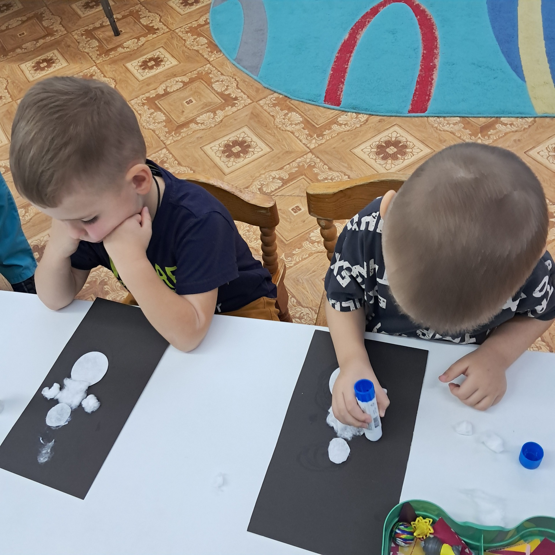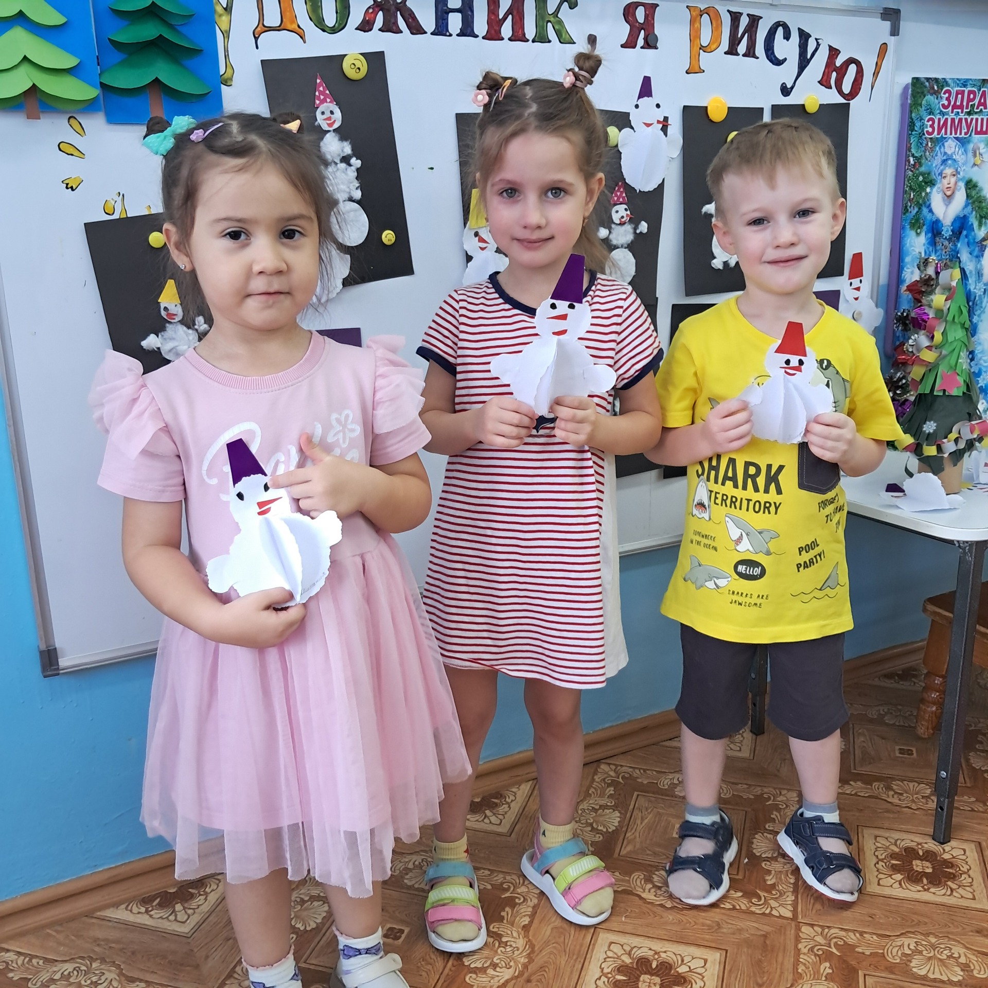 Наконец-то пришла зима, всё вокруг похоже на белую сказку. А какая сказка без сказочного героя! Конечно, и в нашей жизни есть сказочный герой-это добрый, весёлый снеговичок. Он встречает нас в начале зимы, помогает провести новогодние праздники, его можно встретить в каждом дворе. Наверное, поэтому его так легко воплотить в своем творчестве: нарисовать, слепить, вырезать и склеить. Аппликация развивает в ребенке много положительных качеств, таких как усидчивость и терпение, внимательность, развивает мелкую моторику, воображение. Все эти качества очень пригодятся в дальнейшей жизни. Каждая работа выполнена с любовью и старанием. Вот такие яркие и милые снеговики получились у ребят. Эти снеговики точно не будут скучать. Посмотрите, какая снежная гвардия у нас!