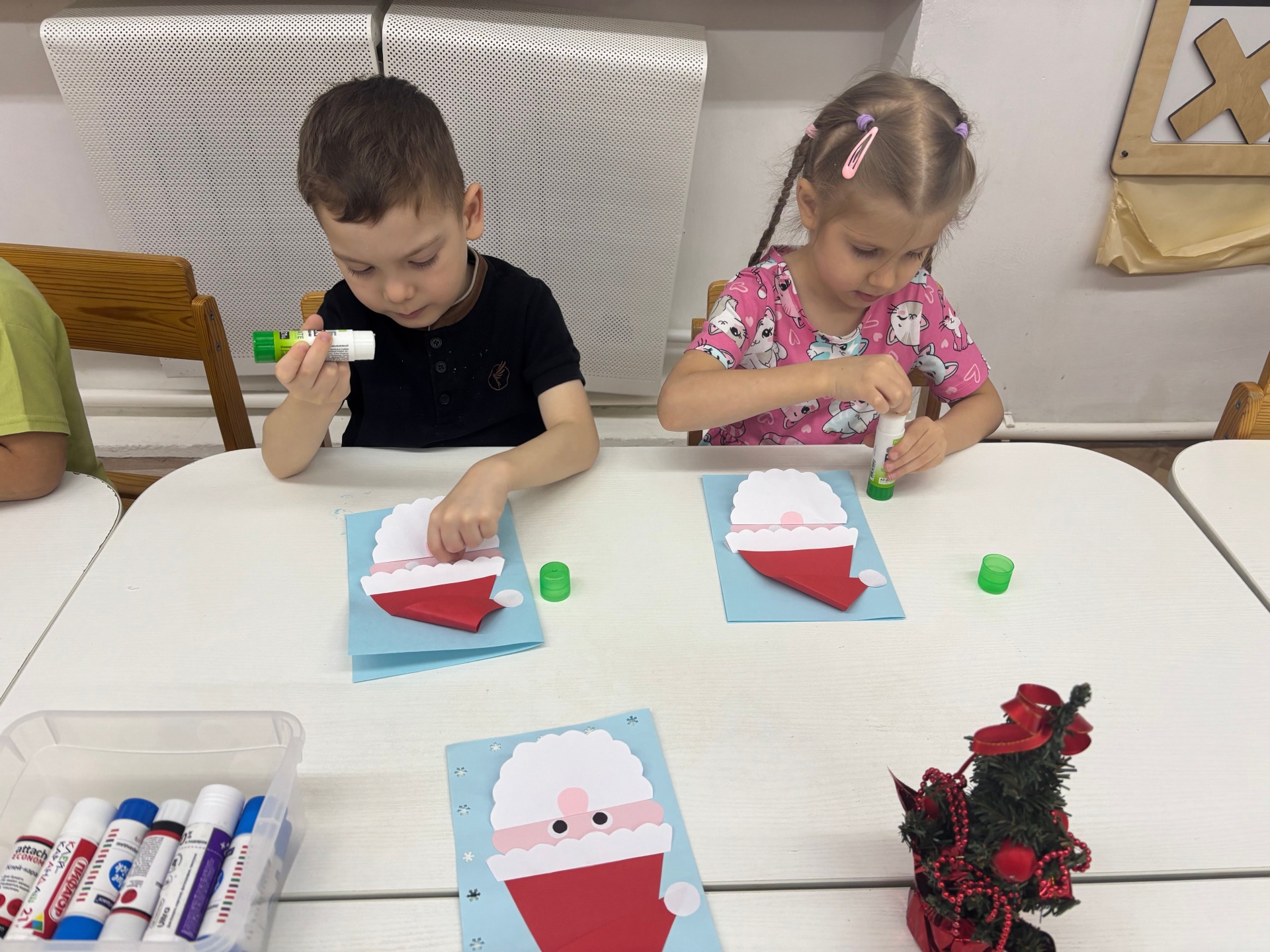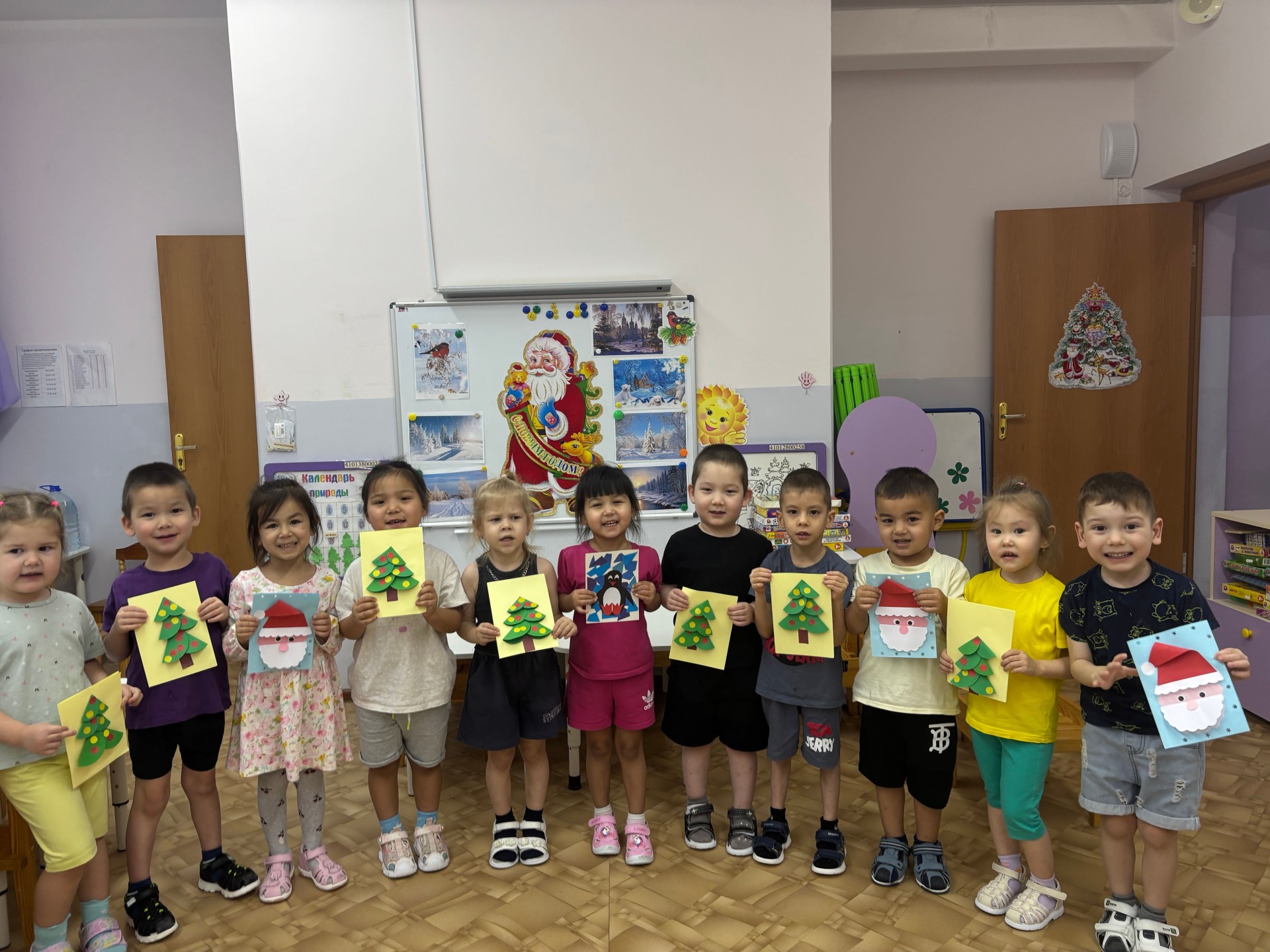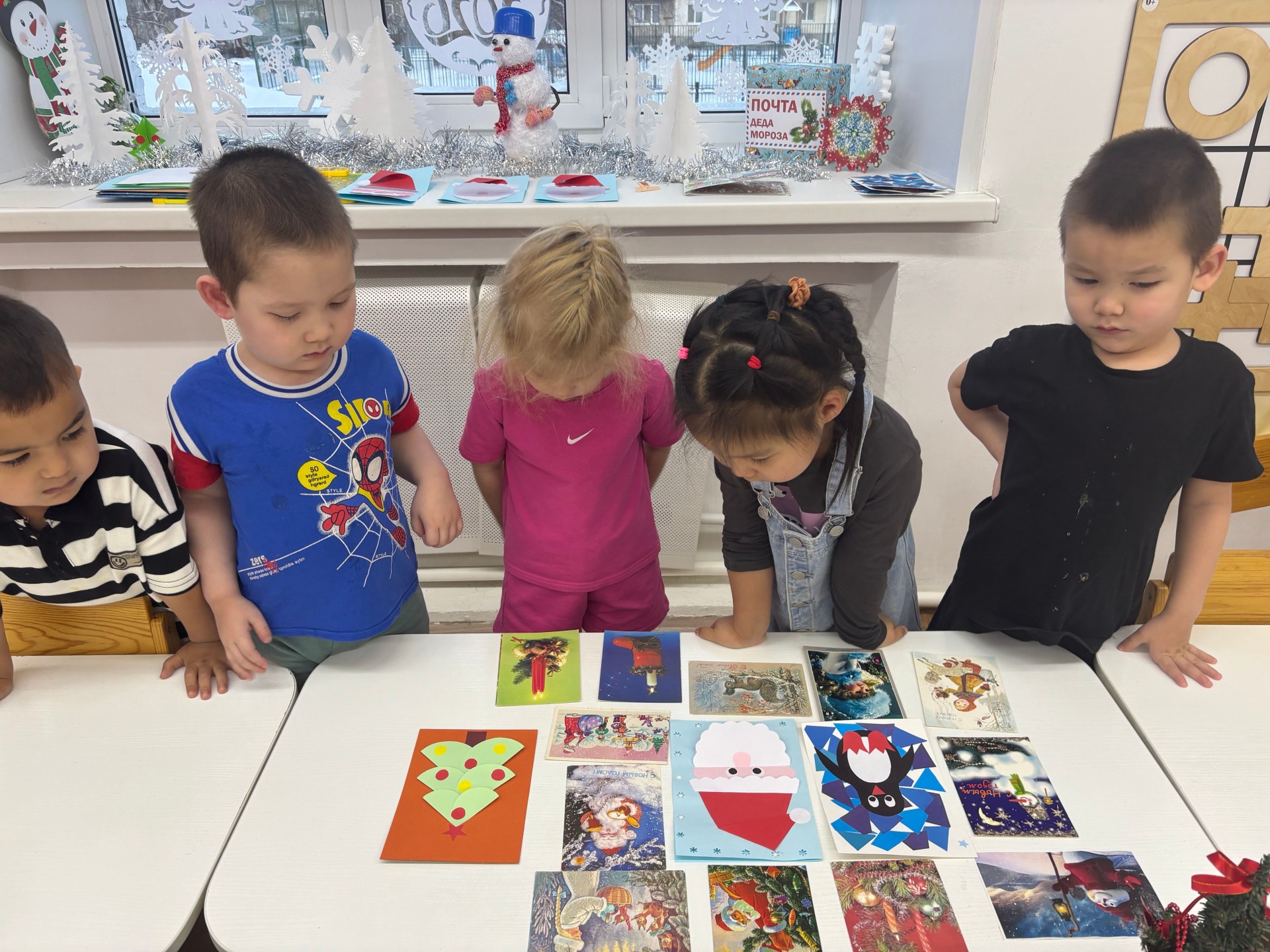 В преддверии Нового года в нашей группе «Сказка» продолжает работу мастерская Деда Мороза. На этот раз мы с детьми отправились в новое увлекательное путешествие по новогодним традициям и познакомились с историей открытки. Именно новогодняя открытка способна передать каждому, кто получил ее, чудесное ощущение сказки, чуда и детства. Оказывается, старые новогодние открытки могут многое рассказать о нашей стране. Дети с интересом рассматривали старые и современные новогодние открытки, просмотрели презентацию «История Новогодней открытки». Из презентации дети узнали, что в первые новогодние открытки в России появились очень давно. На самых первых старых открытках, обычно изображались счастливые дети, наряжающие ёлку, готовящиеся к празднику. Оказывается Деда Мороза на первых открытках художники ещё не изображали, его можно было встретить разве что в виде игрушки. Через несколько лет художники начинают рисовать сюжетные картинки, на которых появляются всеми нами любимые образы Дед Мороз и Снегурочка. Мне думается, что по открыткам можно было знакомить маленьких ребятишек с природой и жизнью в России: заснеженные хвойные леса, занесенные снегом избушки, дети, играющие в снежки и лепящие снеговика, добродушные зверушки, прямо как из русских сказок: зайчики, лисички, медвежата, белочки... .Так же ребята узнали, что когда наша страна готовилась к Олимпиаде 1980 года было выпущено около семидесяти миллионов открыток с медвежонком - символом Олимпиады. Он играл в хоккей, шел рядом с Дедом Морозом, ехал на автомобиле или просто стоял возле елки. Над открытками часто трудились художники - мультипликаторы. Поэтому они часто рисовали героев, очень похожих на тех, что дети видели по телевизору. Дети очень внимательно слушали рассказ. Участвовали в викторине, составляли небольшие рассказы по понравившимся сюжетам. А затем каждый день дети с интересом и любовью посвящали изготовлению разного вида поздравительных Новогодних открыток для своих пап, мам, дедушек и бабушек.