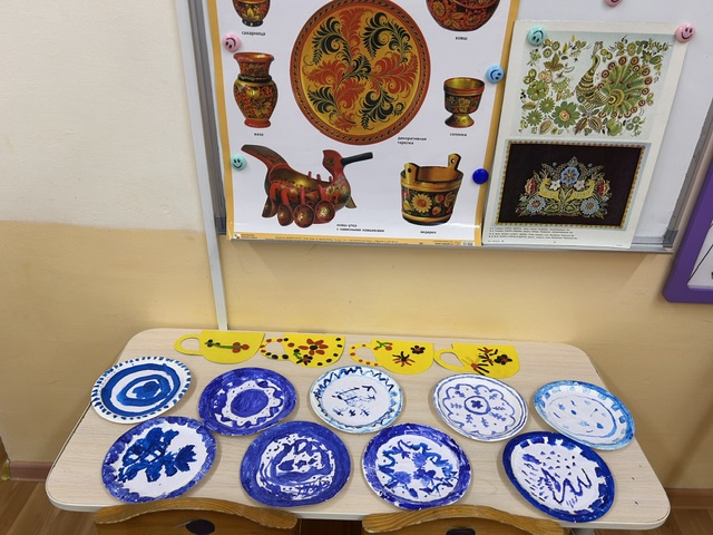Посетили музей народного промысла в группе « Конёк -Горбунок» « Гжель» где дети погрузились в мир русской культуры. Внимательно рассматривали образцы сказочной росписи. Ребята настолько вдохновились красотой удивительного промысла, что перевоплотились в настоящих умельцев. Расписывали бумажные тарелочки в стиле «Гжель», а кружочки в стиле « Хохлома» в нетрадиционной технике пластилинография. Такие занятия - это не просто про творчество. Это связь поколений, про любовь к родной природе и культуре. Материал подготовила воспитатель: Роповка Е.А